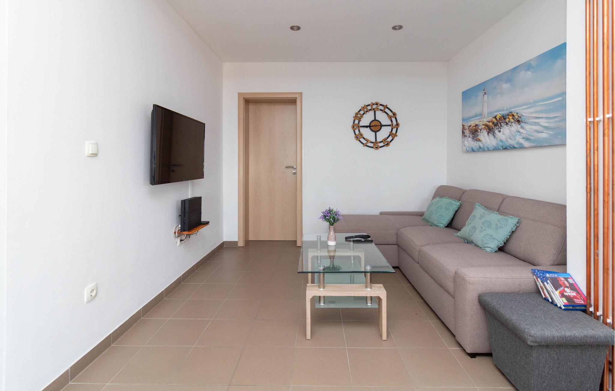 Willkommen in dieser hellen und luftigen Ferienwohnung, die Sie nur einen kurzen Spaziergang vom Meer entfernt zu sonnigen Strandtagen mit Ihren Liebsten einlädt. Genießen Sie mediterrane Gerichte und wohltuende Siestas, während die angenehme Brise durch die Räume zieht, und nutzen Sie das gemütliche Sofa für entspannte Fernsehabende oder ruhige Lesestunden.