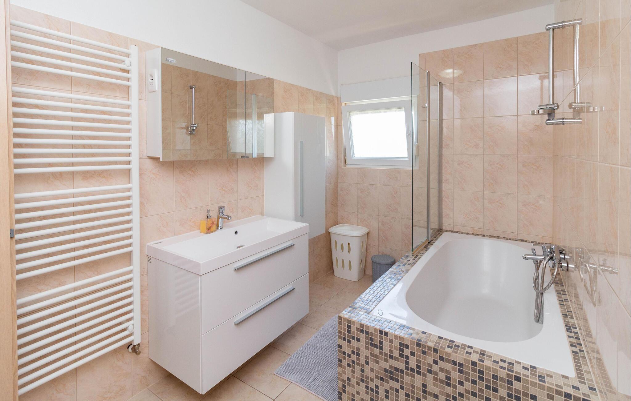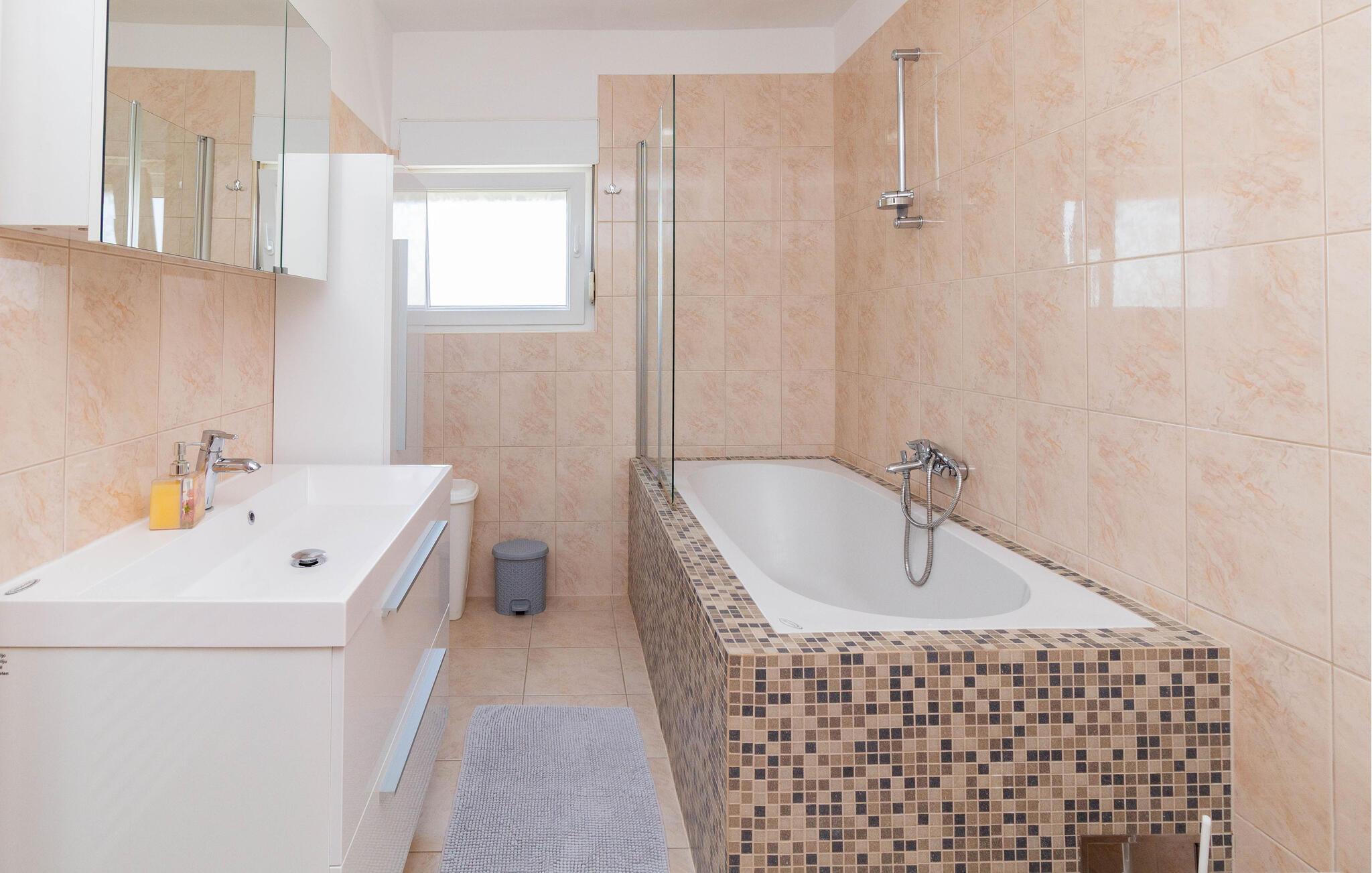 - WC mit warmem und kaltem Wasser, Badewanne