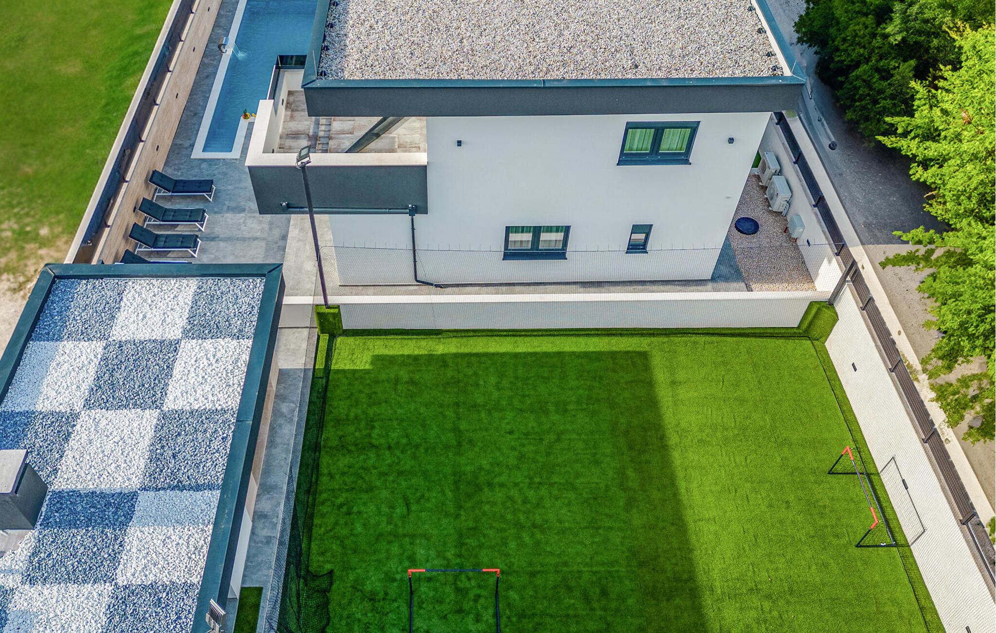 Mit eigenem Pool und Sportplatz sorgt dieses Familien-Ferienhaus für einzigartige Urlaubserlebnisse.