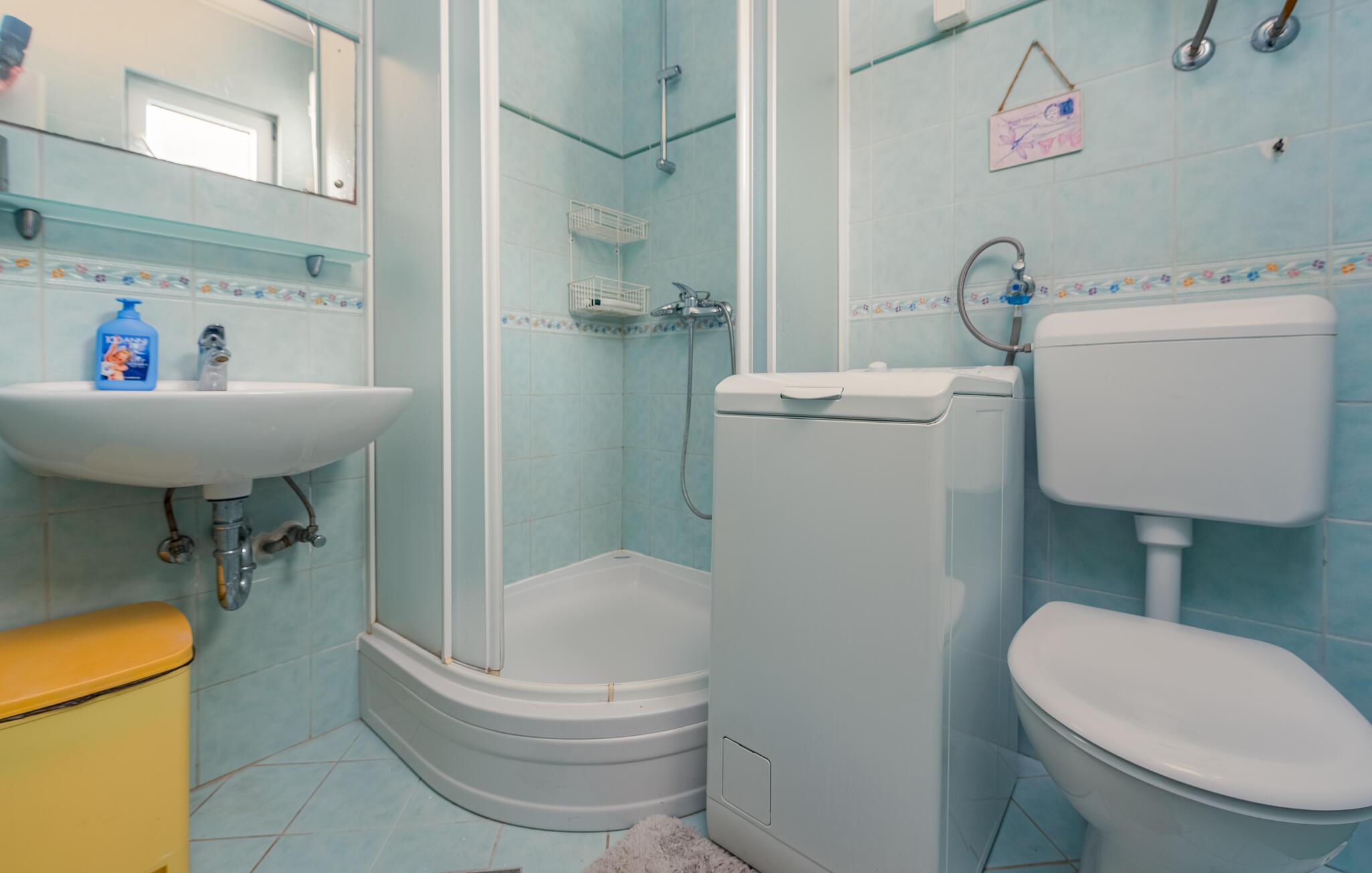 - WC mit warmem und kaltem Wasser, Dusche