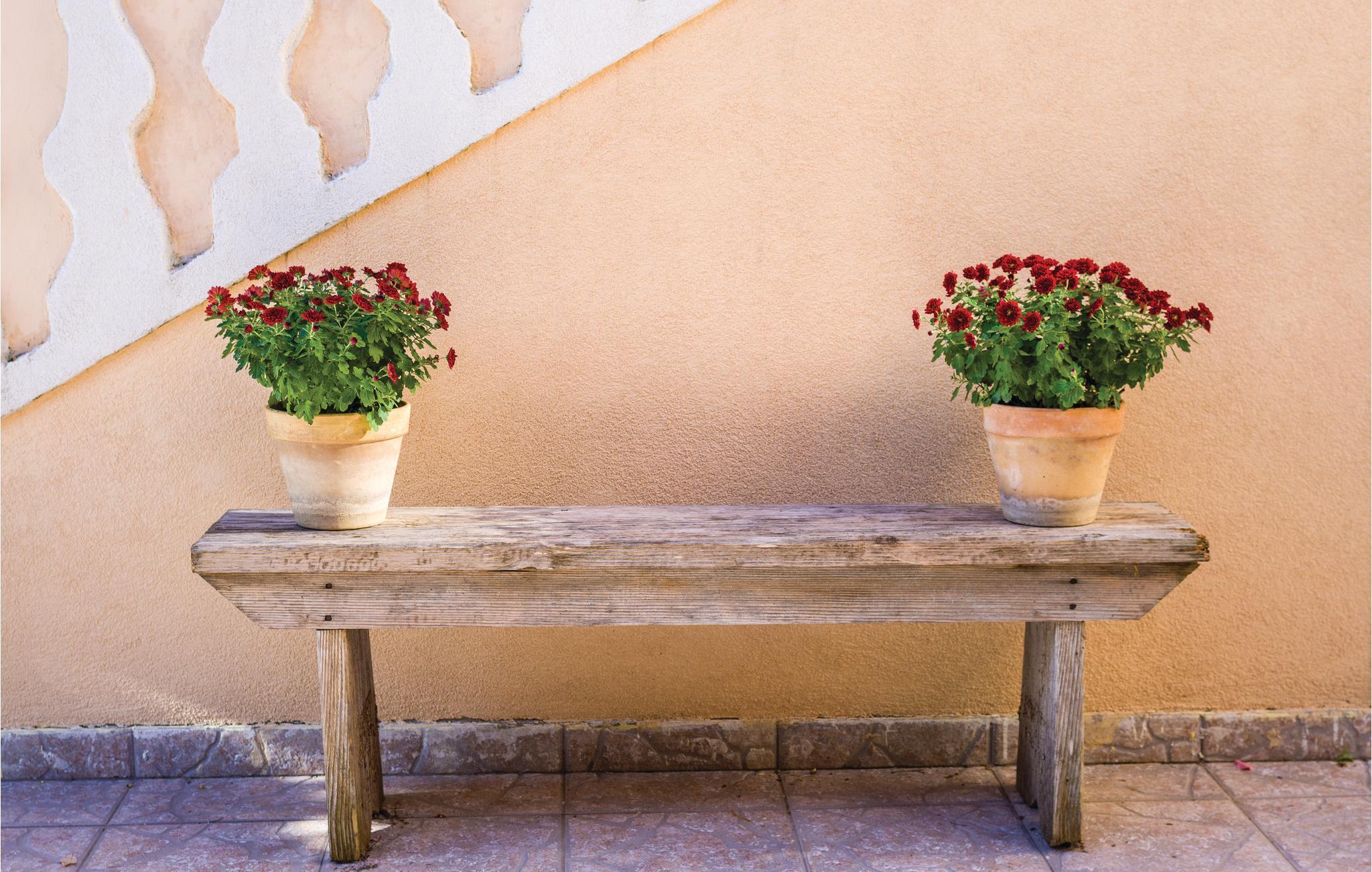 Dieses Ferienhaus besteht aus zwei durch Außentreppen verbundene Wohneinheiten. Die Wohnungen sind einfach, geschmackvoll und sehr funktionell eingerichtet. Es bietet Platz für 6 Personen und hat eine Wohnfläche von 79 m². Neben der Terrasse im Erdgeschoss gibt es eine offene Terrasse im Obergeschoss.