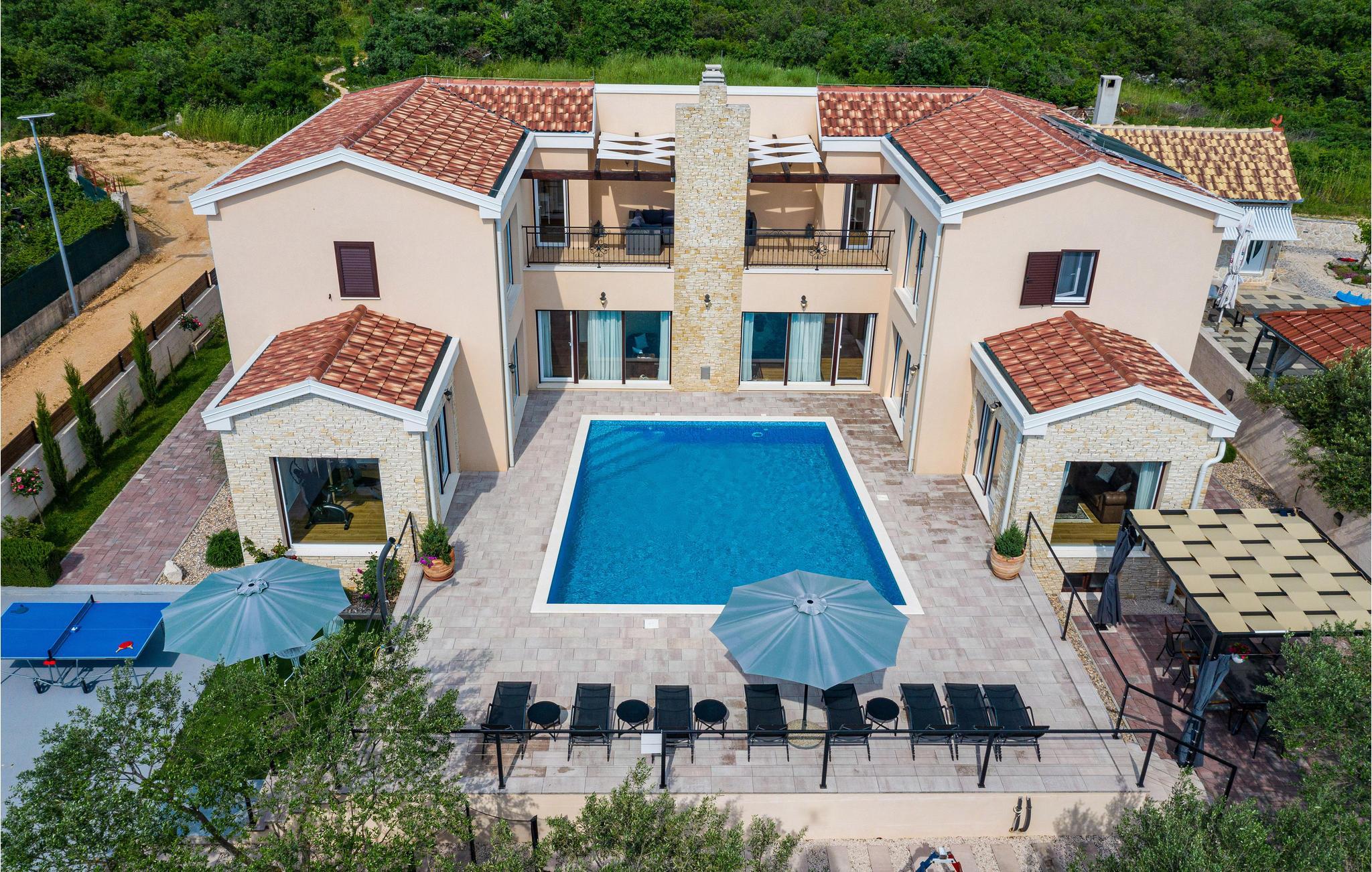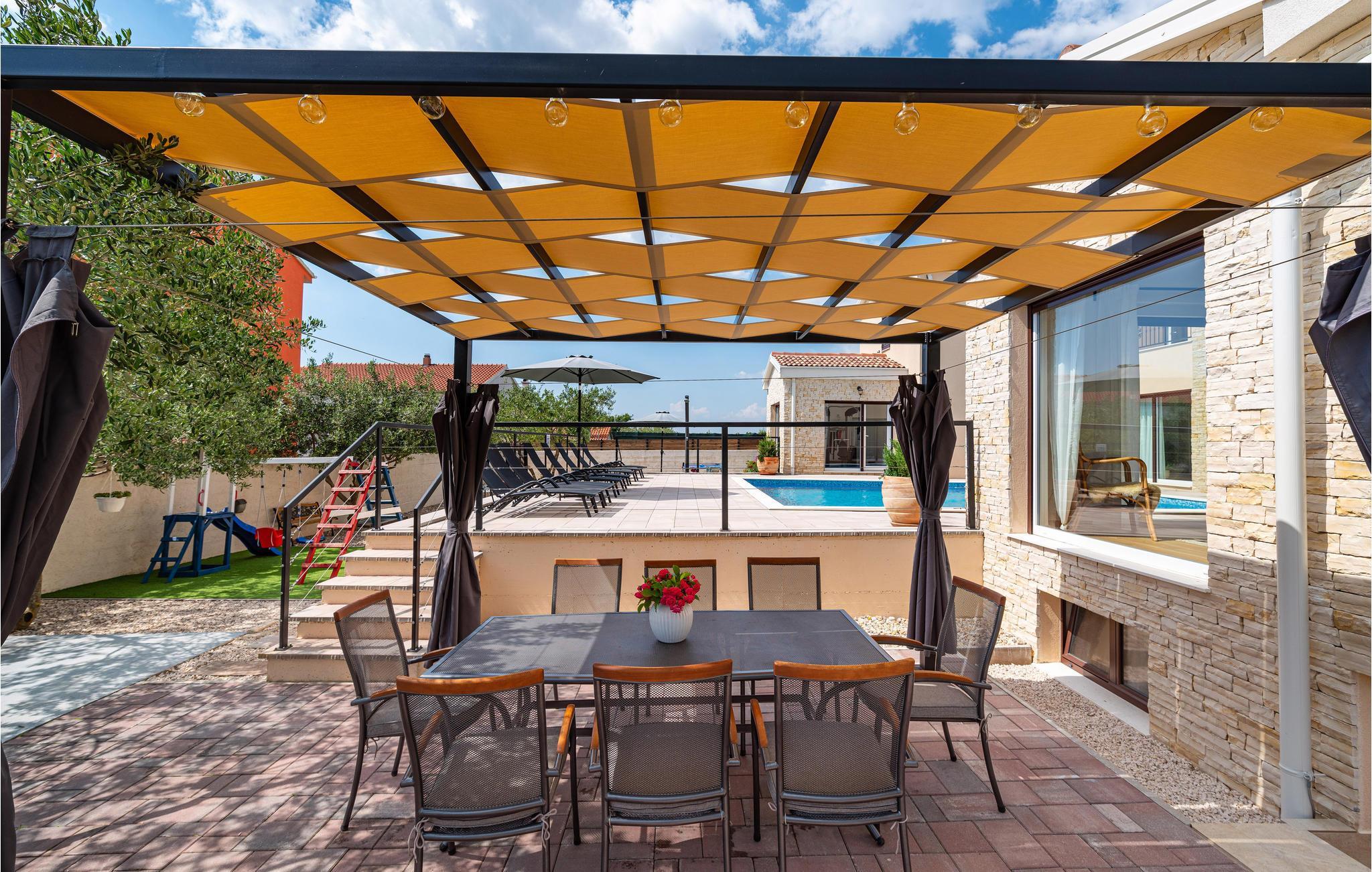 Verbringen Sie einen angenehmen Urlaub in diesem schönen und komfortablen Ferienhaus mit eigenem Pool. Die Wohnfläche verteilt sich auf das Erdgeschoss und den ersten Stock. Von der Terrasse blickt man auf den schönen Garten und den Pool mit von 48 m². In verglasten Räumen sind Whirlpool, Sauna, Fitness untergebracht, sowie Billardraum. Im Freien gibt es Spielgeräte für Kinder. Auf Anfrage und unverbindlich kann der Eigentümer gegen Aufpreis für Sie traditionelle dalmatinische Küche zubereiten, sowie lokalen Wein und Schnaps anbieten.