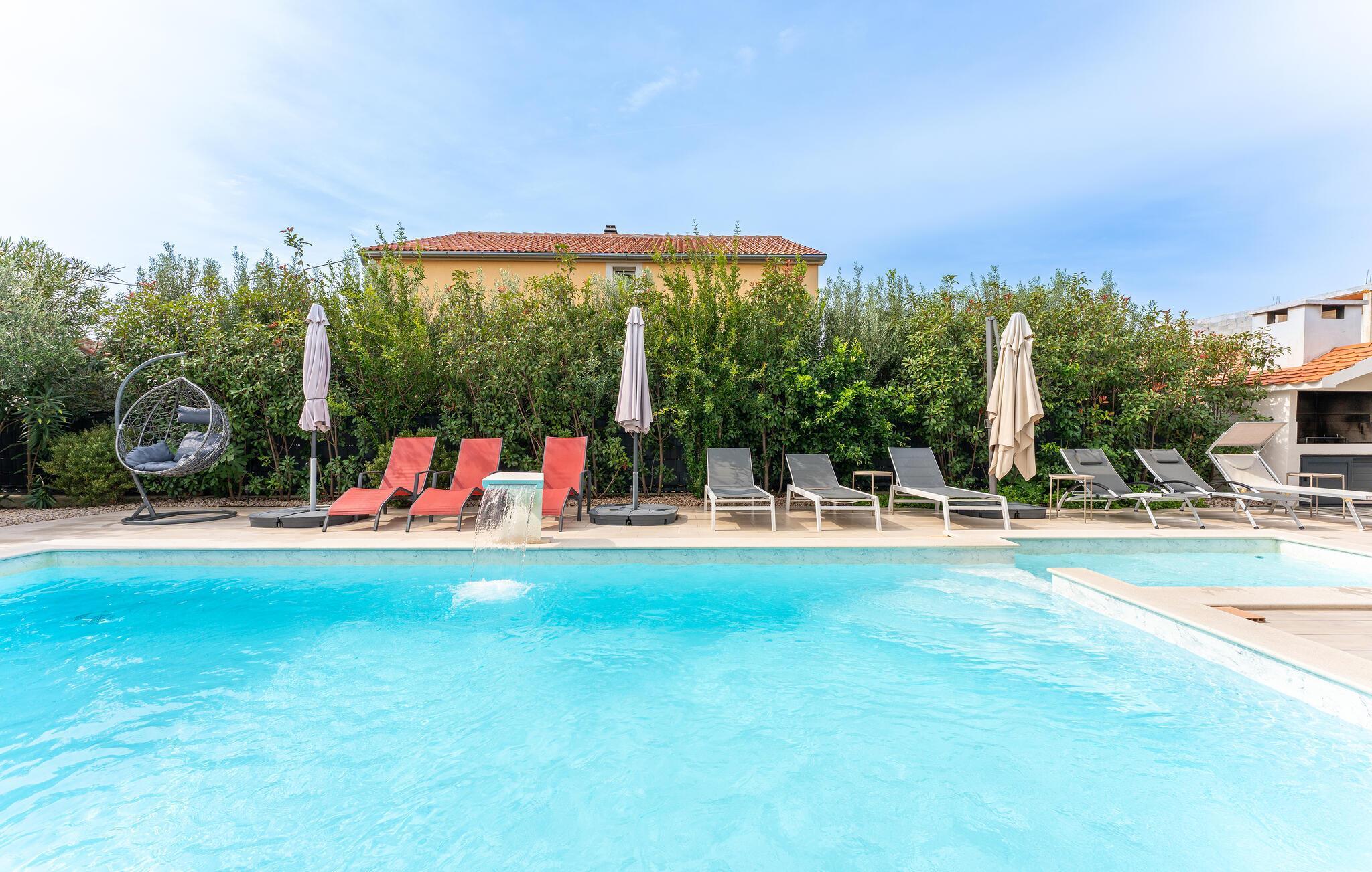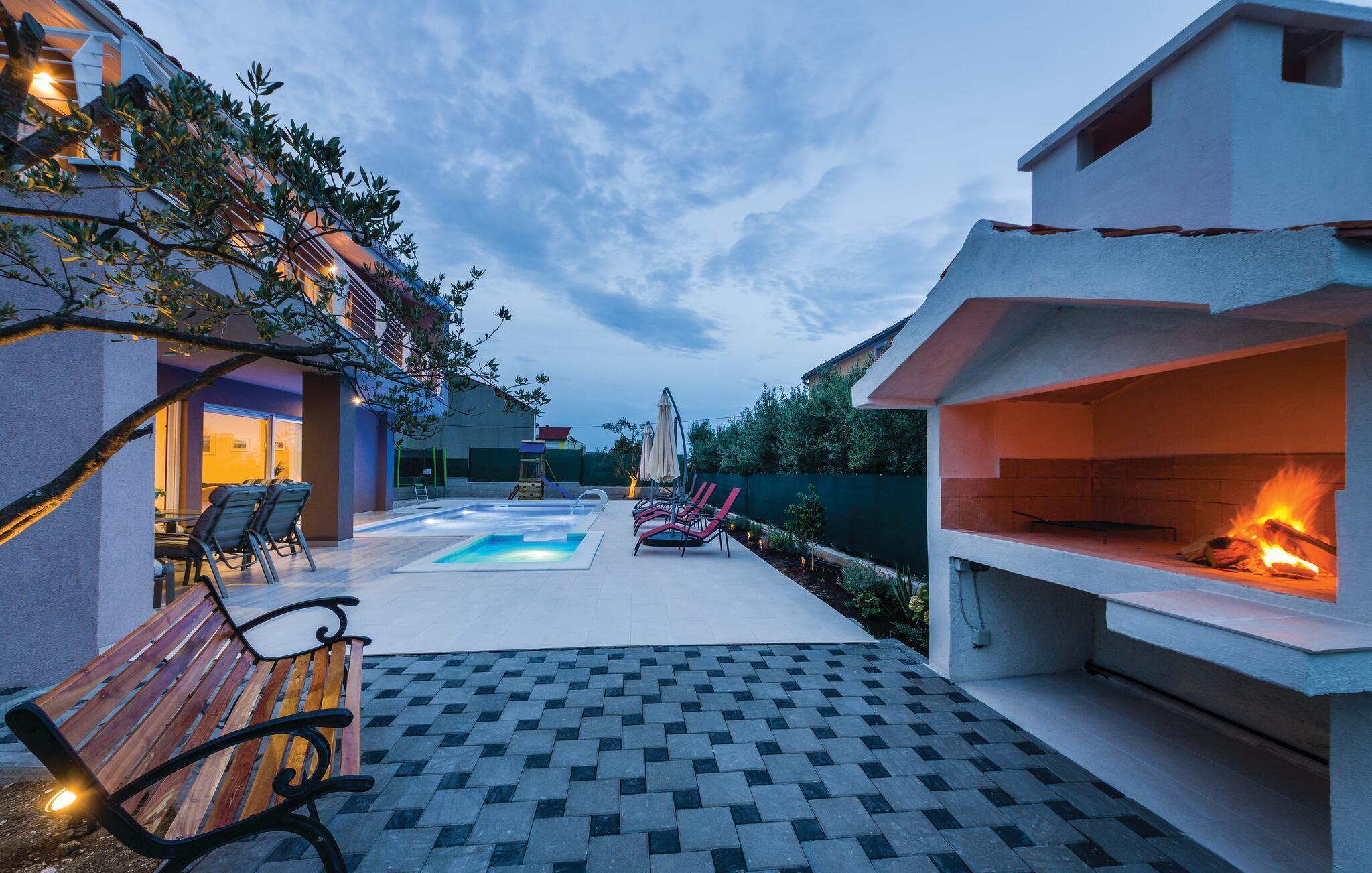 Dieses stilvoll eingerichtete Ferienhaus bietet eine gute Ausstattung für einen komfortablen Aufenthalt. Es ist ideal für die größere Familie oder Freundes-Gruppen, die das offene Interieur auf einer Etage und den Außenbereich mit Pool, Whirlpool und Grill genießen möchten. Die Terrasse im erste Stock bietet teilweise Blick auf Vransko Jezero, den Naturpark mit Vogelschutzgebiet und Reitmöglichkeiten. In nahegelegen Biograd, nur 6 km entfernt, befindet sich der erste kroatische Familien-Fun-Park Mirnovec. Die Stadt Zadar liegt 40 km entfernt und bietet einen der schönsten Sonnenuntergänge der Welt.
