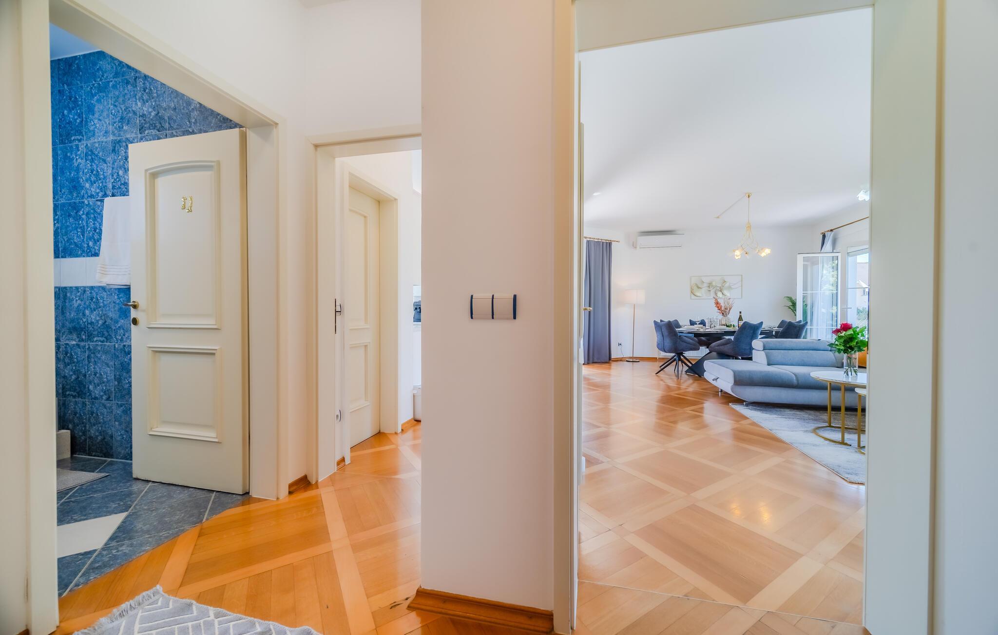 In diesem schönen Haus fühlen Sie sich sofort wie zu Hause: Wunderschönes Parkett, freundliche Farben und eine gemütliche Sofaecke schaffen eine behagliche Atmosphäre, in der Sie neue Energie tanken können. Vertiefen Sie sich in ein gutes Buch oder hören Sie Ihre Lieblingsmusik, bevor Sie sich schmackhafte Gerichte in der modernen Küche zubereiten.