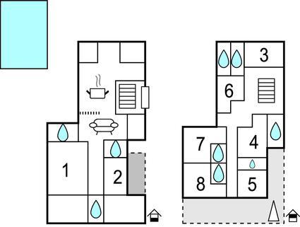 Badezimmer 8m2 (nr. 2) - WC. Warmes und kaltes Wasser. Dusche