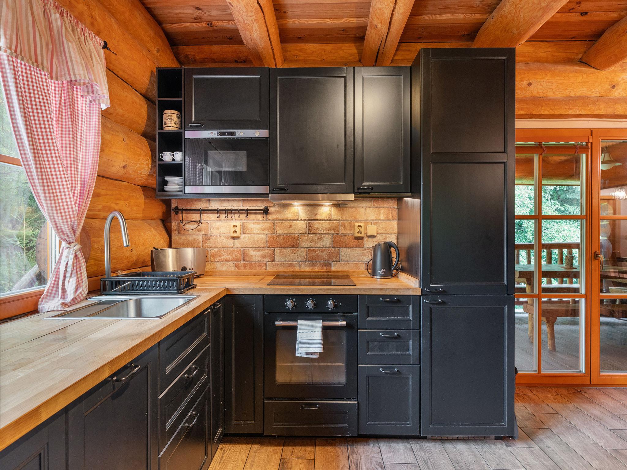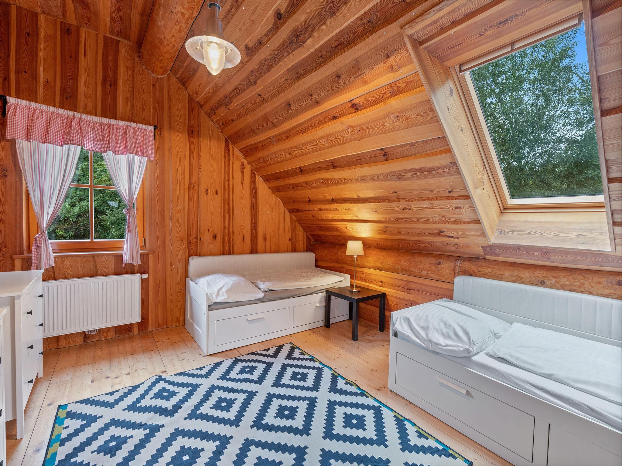 Lazny 3 km from Nezdice na Šumave: Large, modern, comfortable chalet "Lazny", built in 2016, surrounded by trees. On the outskirts, 50 m from the edge of the forest, 50 m from the stream. Private: property, garden 1'000 m2 (not fenced) with lawn. Terrace, garden furniture, barbecue, children's playground. In the house: storage room for bicycles, storage room for skis, central heating system. Available: sledges. Motor access to the house. In Winter: please take snow chains. Parking at the house. Grocery 2 km, restaurant 10 km, bus stop 100 m, outdoor swimming pool 250 m. Riding stable 4 km, ski lift 4 km, slopes 4 km. Nearby attractions: Národní park Šumava 15 km. Well-known ski regions can easily be reached: SKI Kašperské hory 10 km, SKI Nezdice 4 km, SKI Javorník 8 km. Please note: suitable for families, suitable for seniors.