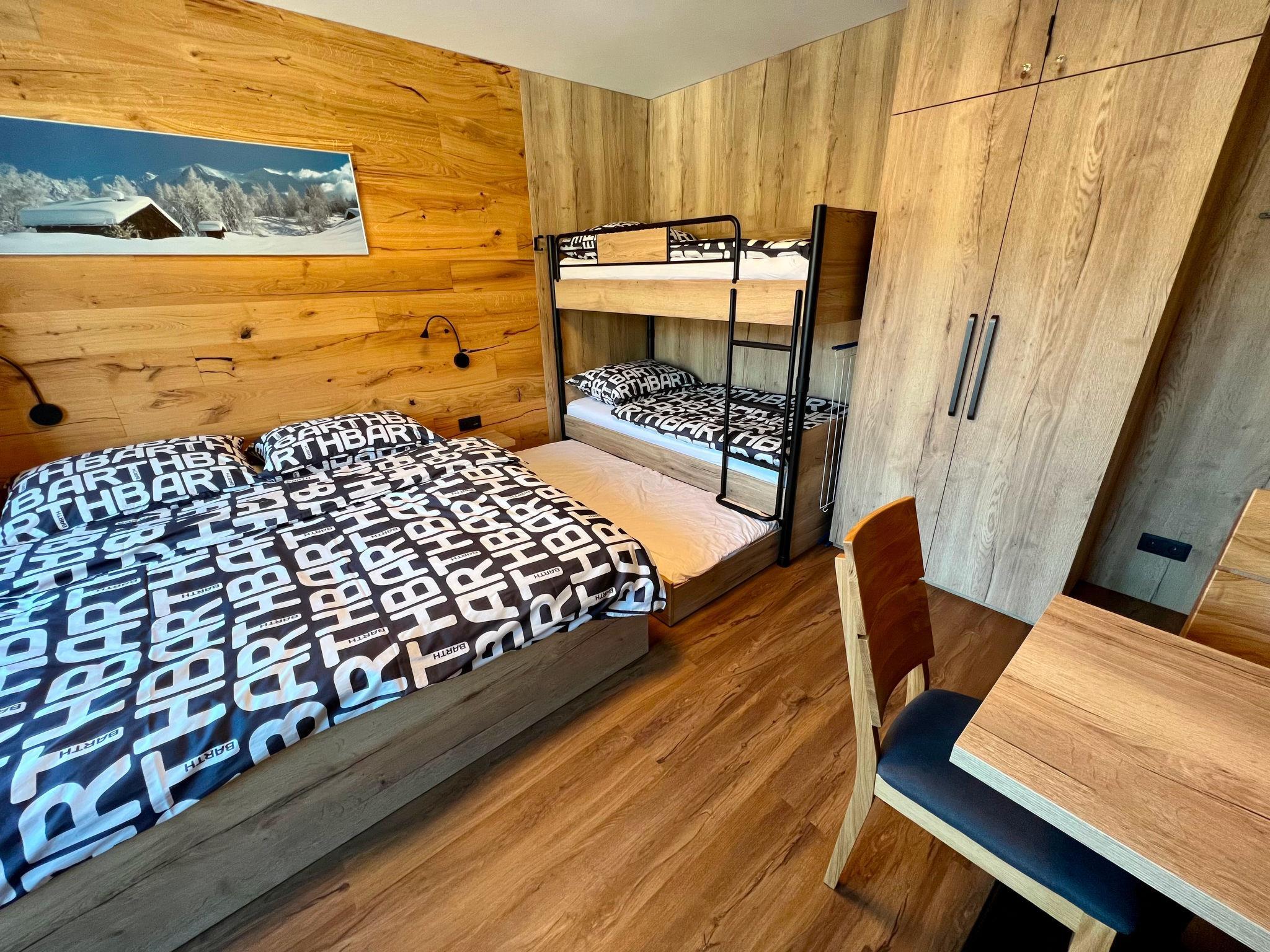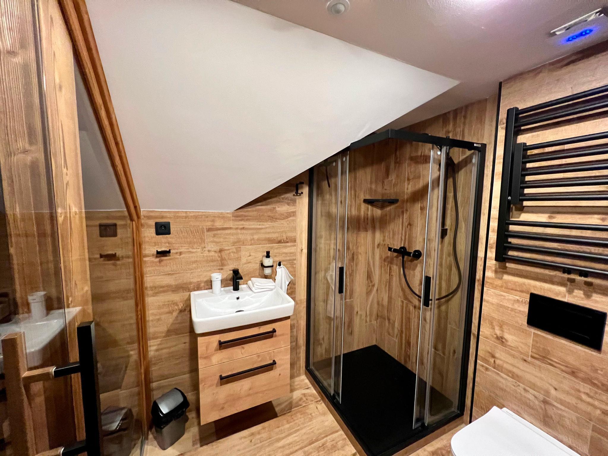 "Špindleruv Mlýn 61", 5-room maisonette 130 m2 on 2 levels, on the top floor. Renovated, luxurious furnishings: living room with sloping ceilings with dining table and TV. Exit to the balcony. 1 room with 1 x 2 bunk beds, 1 double bed and 1 pull-out bed. Kitchenette (oven, dishwasher, 4 ceramic glass hob hotplates, microwave, freezer, electric coffee machine). Shower/WC, sep. WC. Upper floor: 1 room with sloping ceilings with 1 bed and 1 double bed. 1 room with sloping ceilings with 1 bed and 1 double bed. 1 room with sloping ceilings with 2 beds. Shower/WC. Large balcony. Balcony furniture. Beautiful view of the countryside. Facilities: sauna. Internet (WiFi, free). Parking (roofed, 2 cars). Suitable for families.