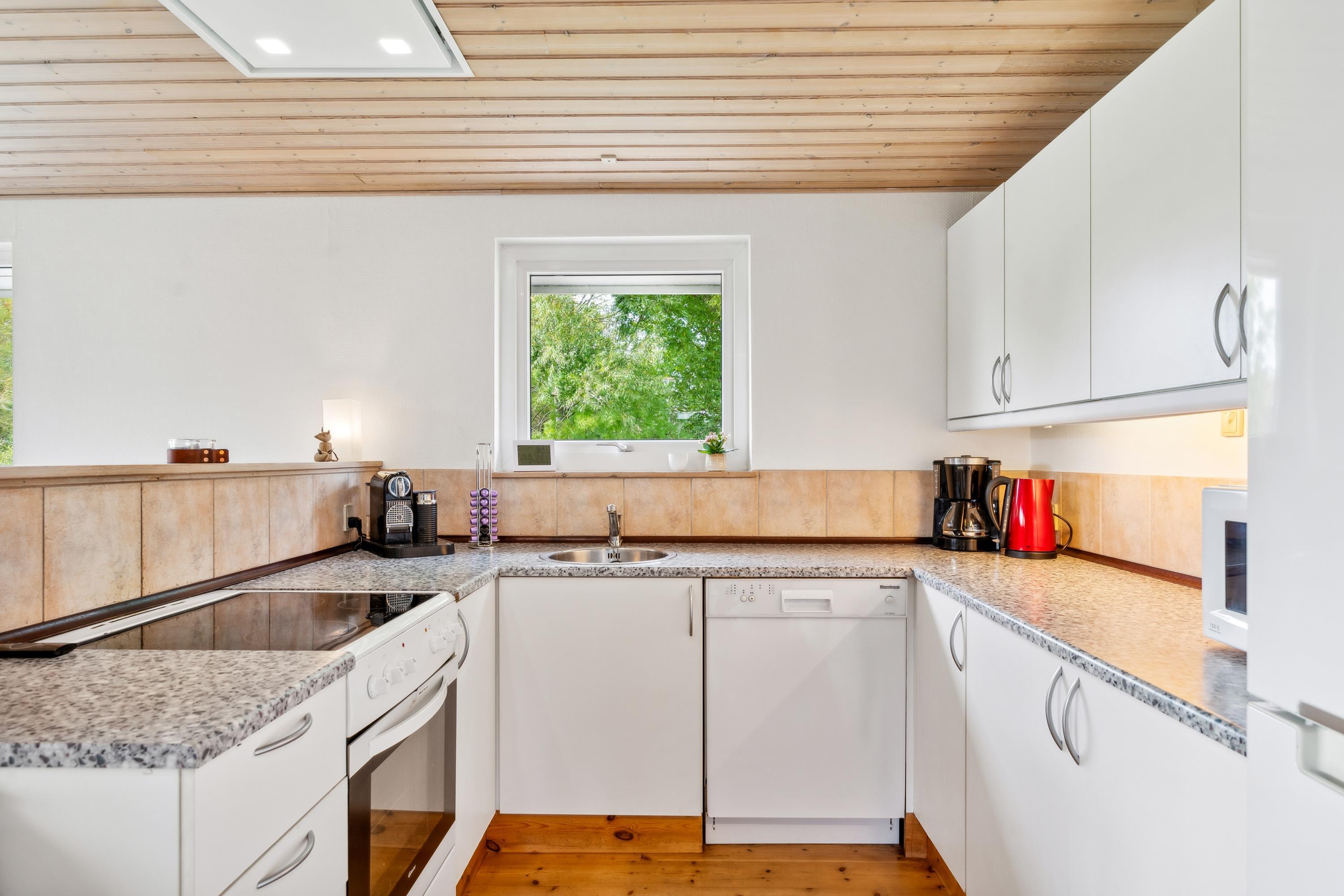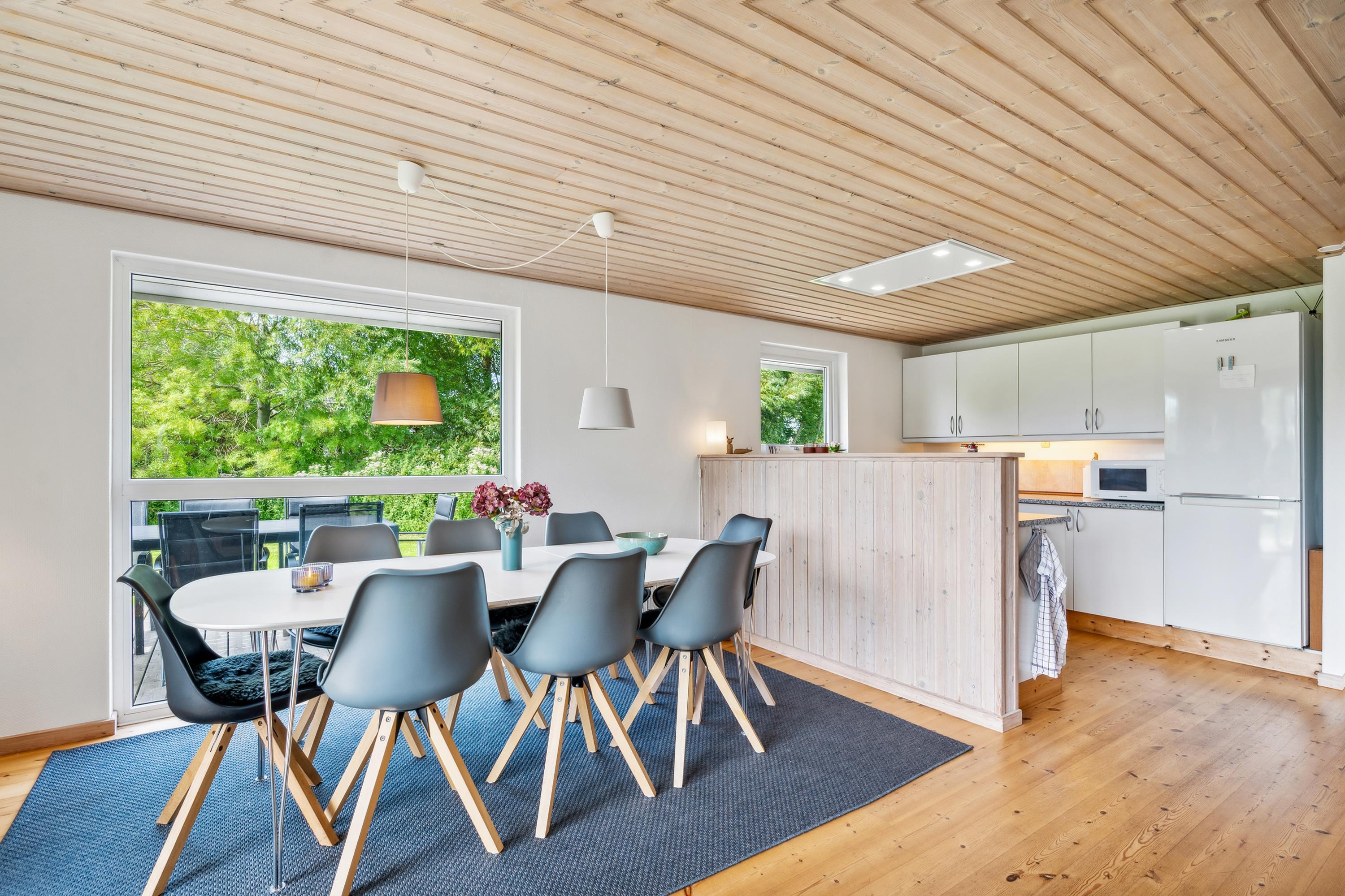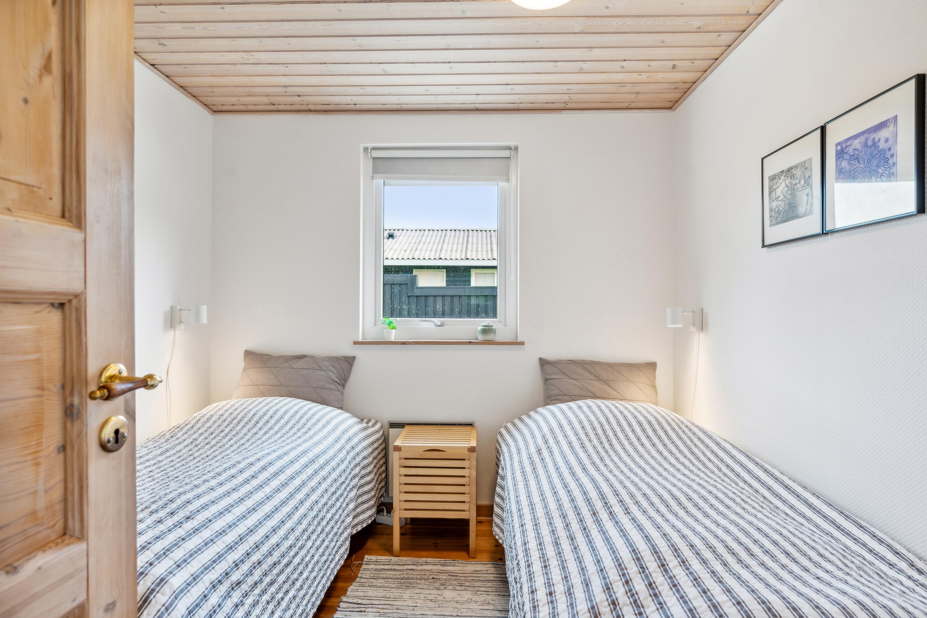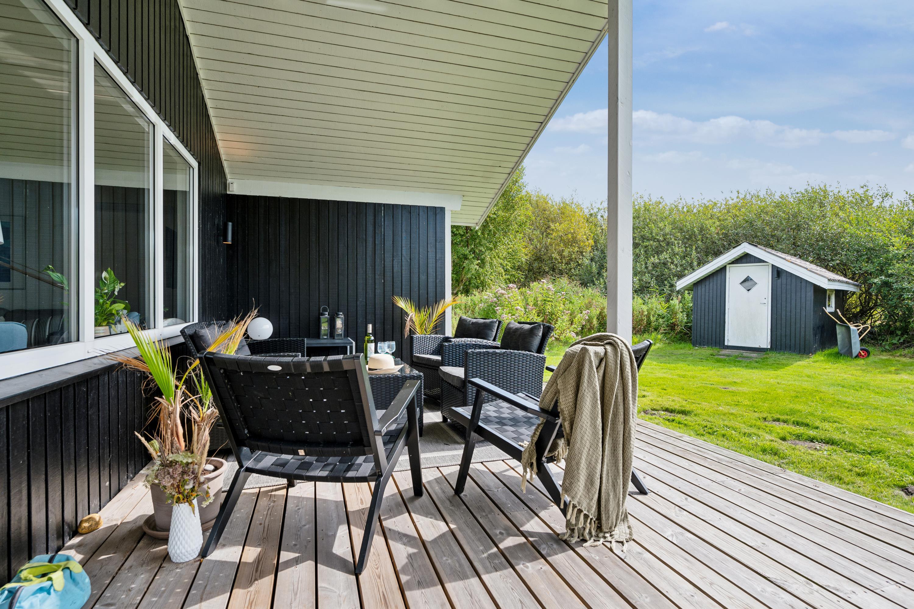 The 88 sqm. include a bright and well-furnished living room with access to a covered terrace. There is dining space for 8 people, a wood-burning stove, TV with Danish Free channels and German channels, Apple TV, CD player, and radio + USB connection for smartphones. The spacious, well-equipped kitchen is in open connection with the living room and features a ceramic stove with an oven, refrigerator/freezer, dishwasher, and microwave. Large, delightful bathroom with a shower, spa, and sauna, as well as a smaller bathroom with a shower. The large bathroom has underfloor heating. Additionally, there is a practical utility room with a washing machine and a dryer. The 6 sleeping places are distributed among a large, bright bedroom with a double bed and 2 smaller rooms with 2 single beds each. There is also a cozy little annex that accommodates two extra single beds. The house also has a cot and a high chair. Internet access/WIFI is available.