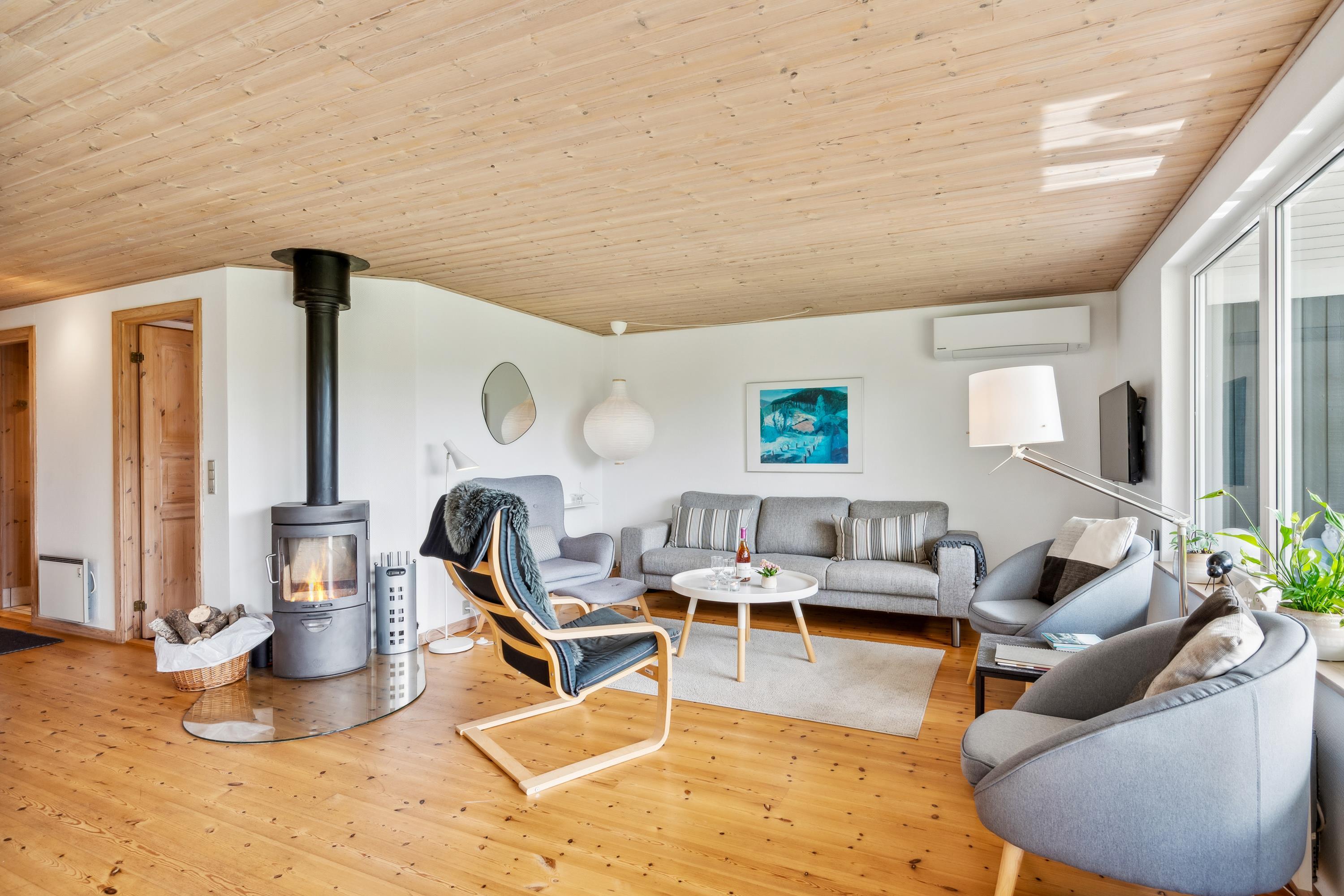 Well-maintained and well-equipped holiday house located in the beautiful landscape near Øer, just 150 meters from the child-friendly Øer Strand. Large, lovely, partially covered south- and west-facing wooden terrace with garden furniture, sun loungers, parasol, and a grill.