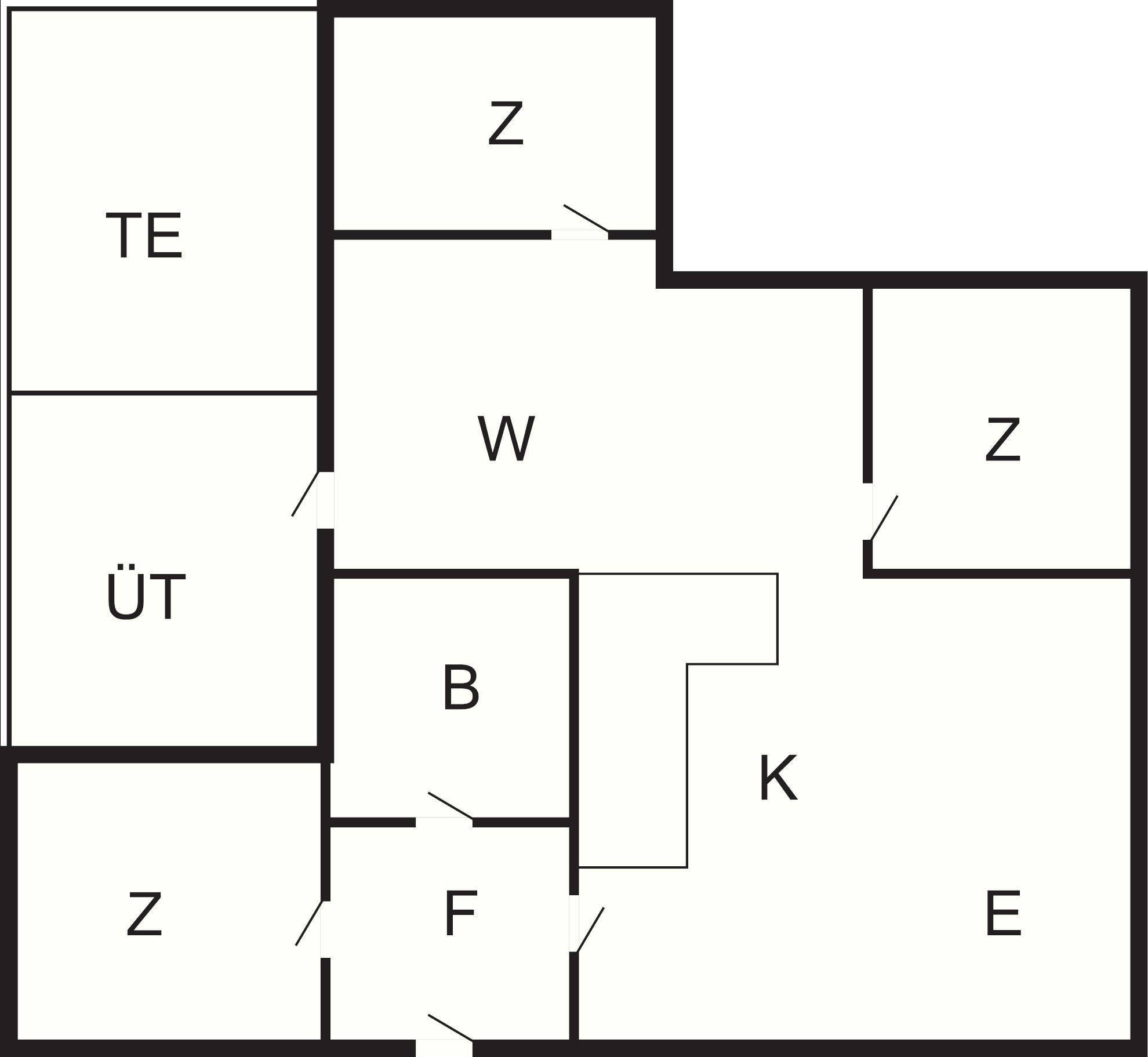 Off. Küche: E-Herd, Kühlschr. m. Gefrierfach, Mikrow., Abzugsh., Kaffeem.