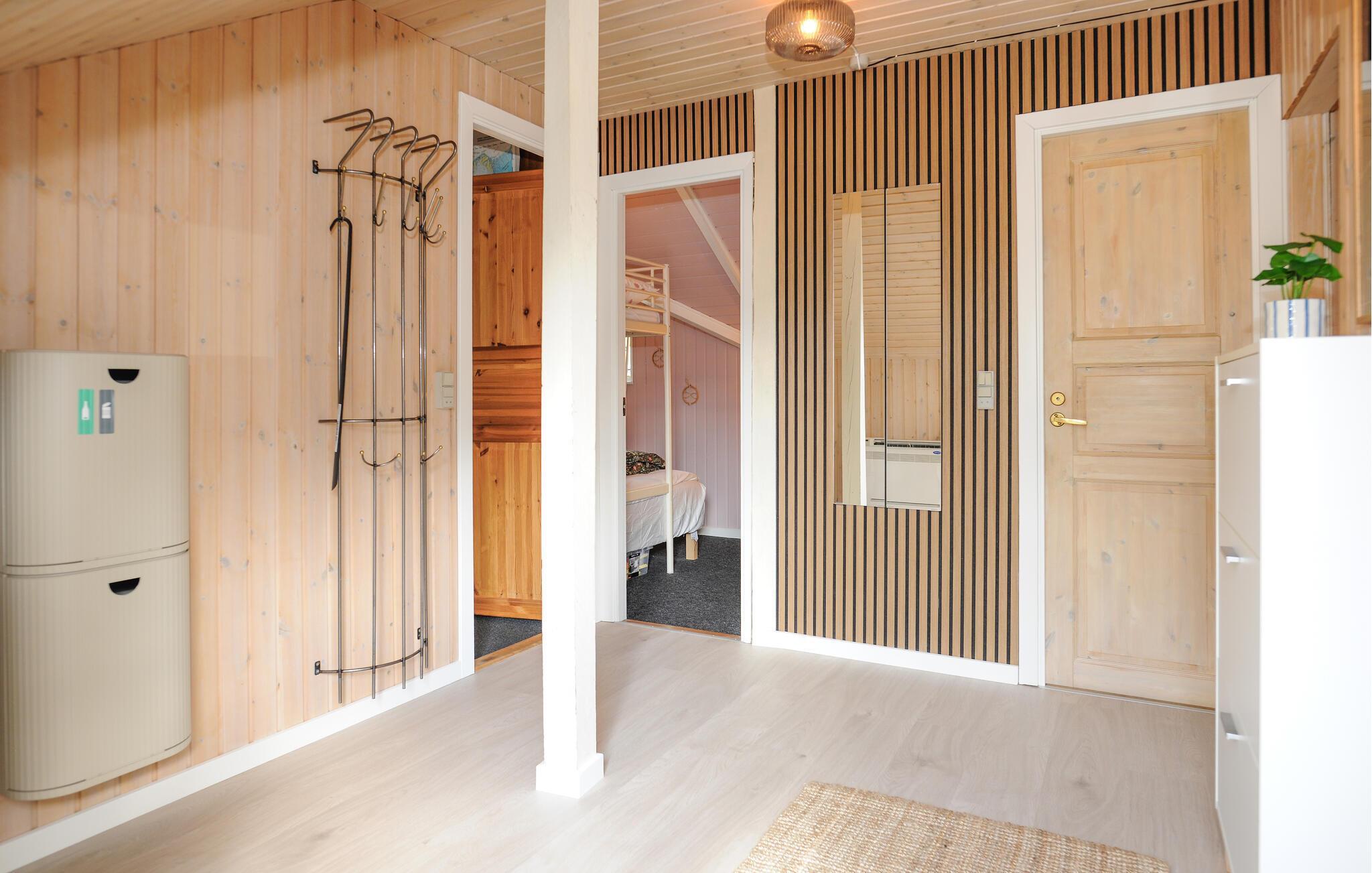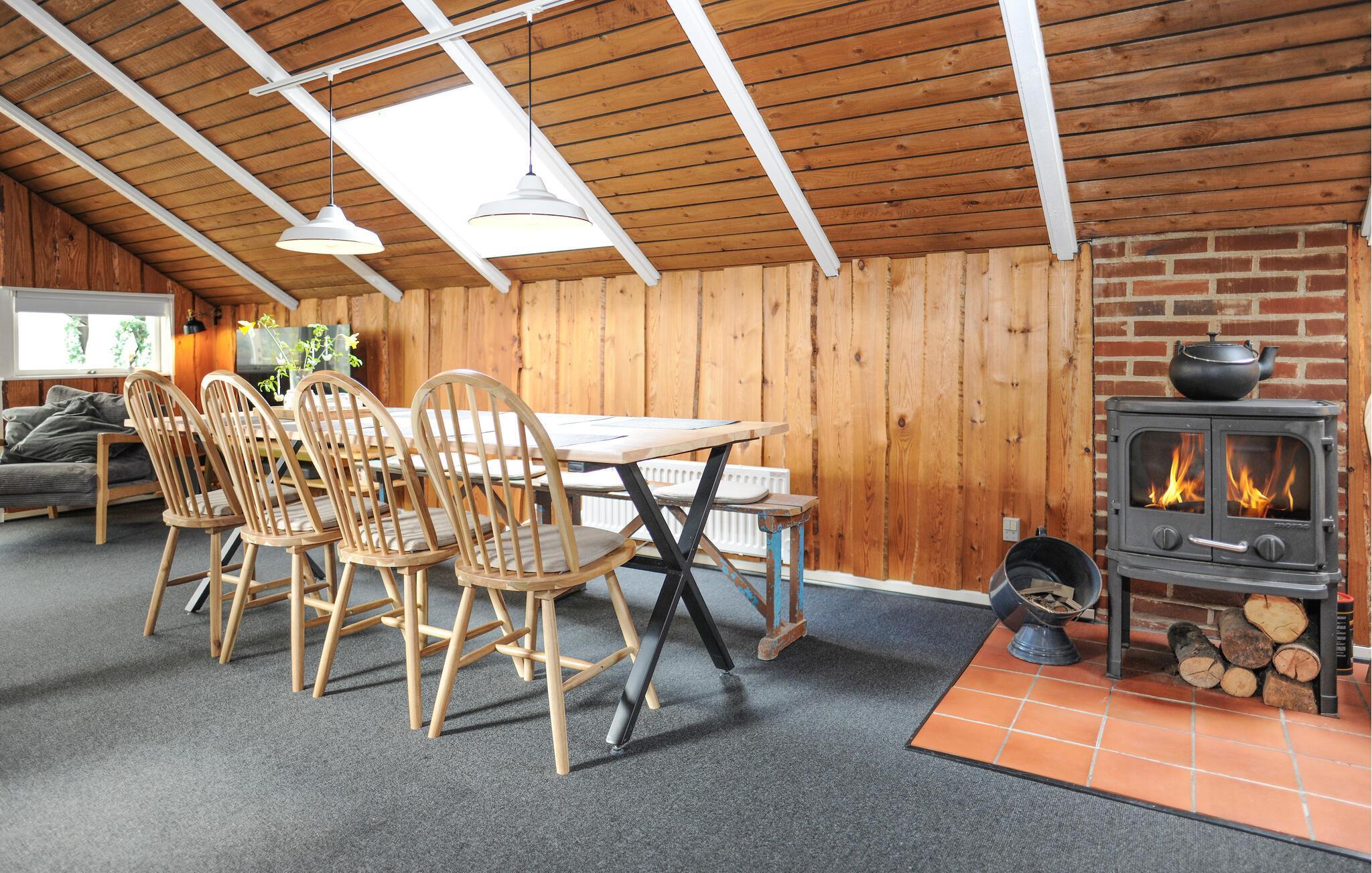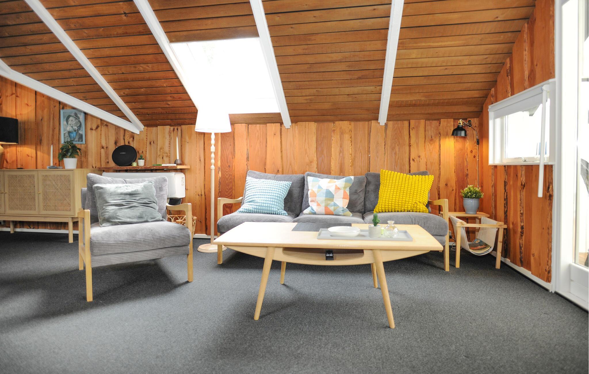 Ihr geschmackvoll eingerichtetes Ferienhaus verbindet nordisches Wohngefühl mit zeitgemäßem Komfort. Der offene Wohn- und Essbereich unter der gemütlichen Dachschräge im Holzstil bildet das Herzstück des Hauses. Bereiten Sie in der praktisch gestalteten Küche Ihre Lieblingsgerichte zu, während die gemütliche Sofaecke zum Ausruhen einlädt. Nach einem aktiven Tag sorgen ein guter Film oder ein Gesellschaftsspiel für einen gelungenen Tagesausklang. Für zusätzliche Erholung steht Ihnen ein Wintergarten zur Verfügung. Tanken Sie hier im Laufe des Tages neue Energie.