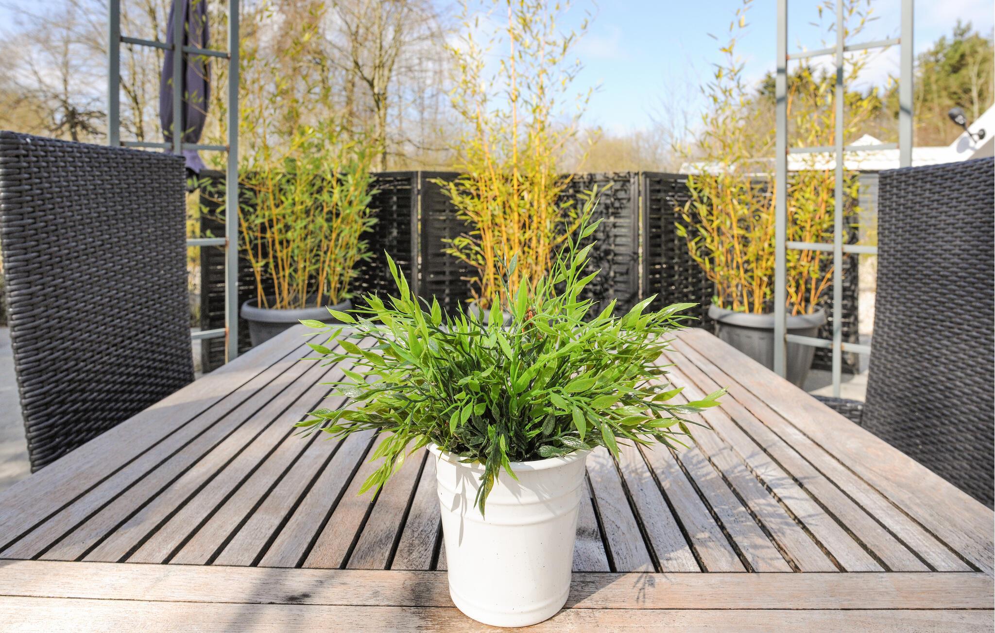 Genießen Sie den Außenbereich zu jeder Tageszeit. Auf der großzügigen Terrasse mit Gartenmöbeln lässt es sich wunderbar frühstücken, lesen oder einfach entspannen. Währenddessen haben Ihre Kinder auf der weitläufigen Rasenfläche ausreichend Platz zum Spielen und Schaukeln.