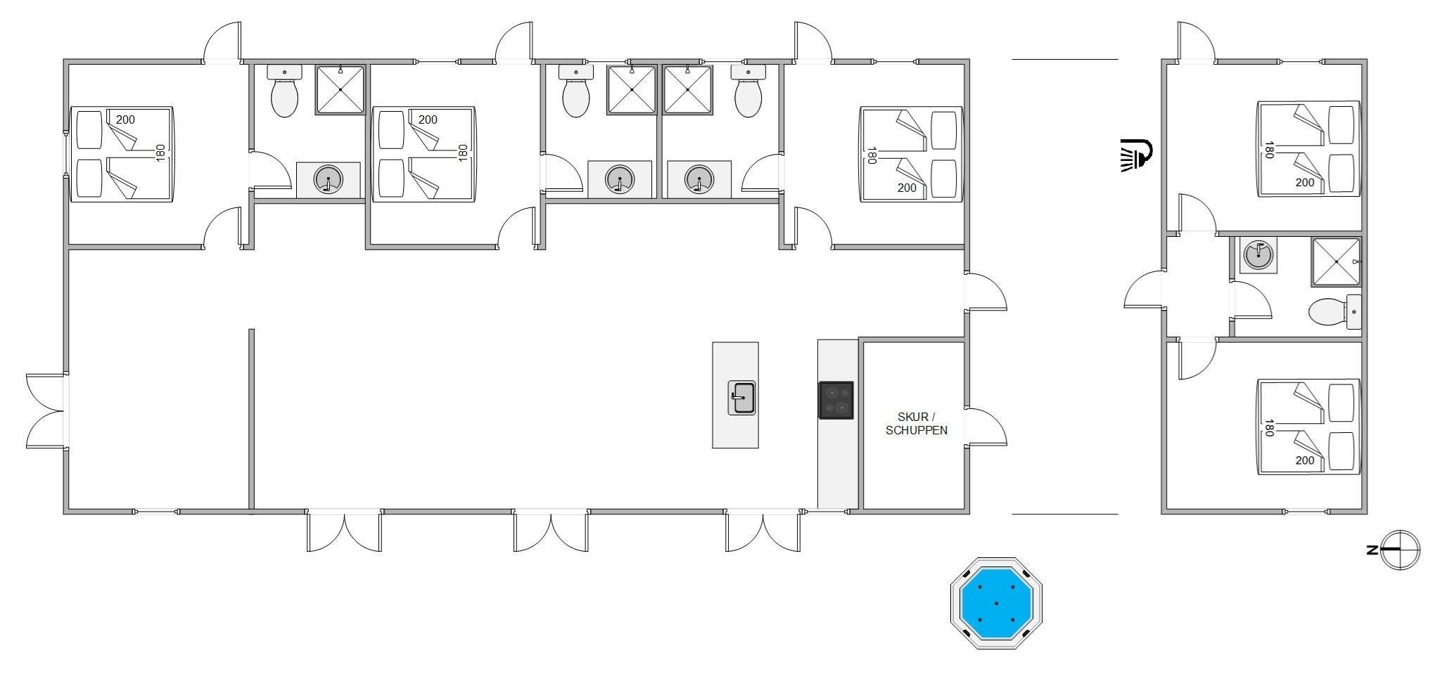 Discover this impressive holiday retreat at Midtparken 29 in Arrild, offering 179 square metres of pure comfort and an electric car charging point. Accommodating up to 10 people, with 5 bedrooms featuring 5 comfortable double beds and 4 bathrooms, you'll feel right at home. Set in beautiful natural surroundings near the island of Rømø and the charming towns of Tønder and Ribe, this modern holiday home in Arrild was built in 2025. Enjoy the soothing warmth of the wood-burning stove and benefit from the smart air-to-water heat pump maintaining pleasant temperatures. Special features include a home cinema room, outdoor hot tub, outdoor shower, and covered terrace - just some of the highlights of your stay. Unwind after an eventful day and enjoy the peace and tranquillity of your surroundings. Up to 2 dogs are also welcome here.