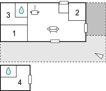 Badezimmer 4m2 (nr. 1) - WC. Warmes und kaltes Wasser. Dusche