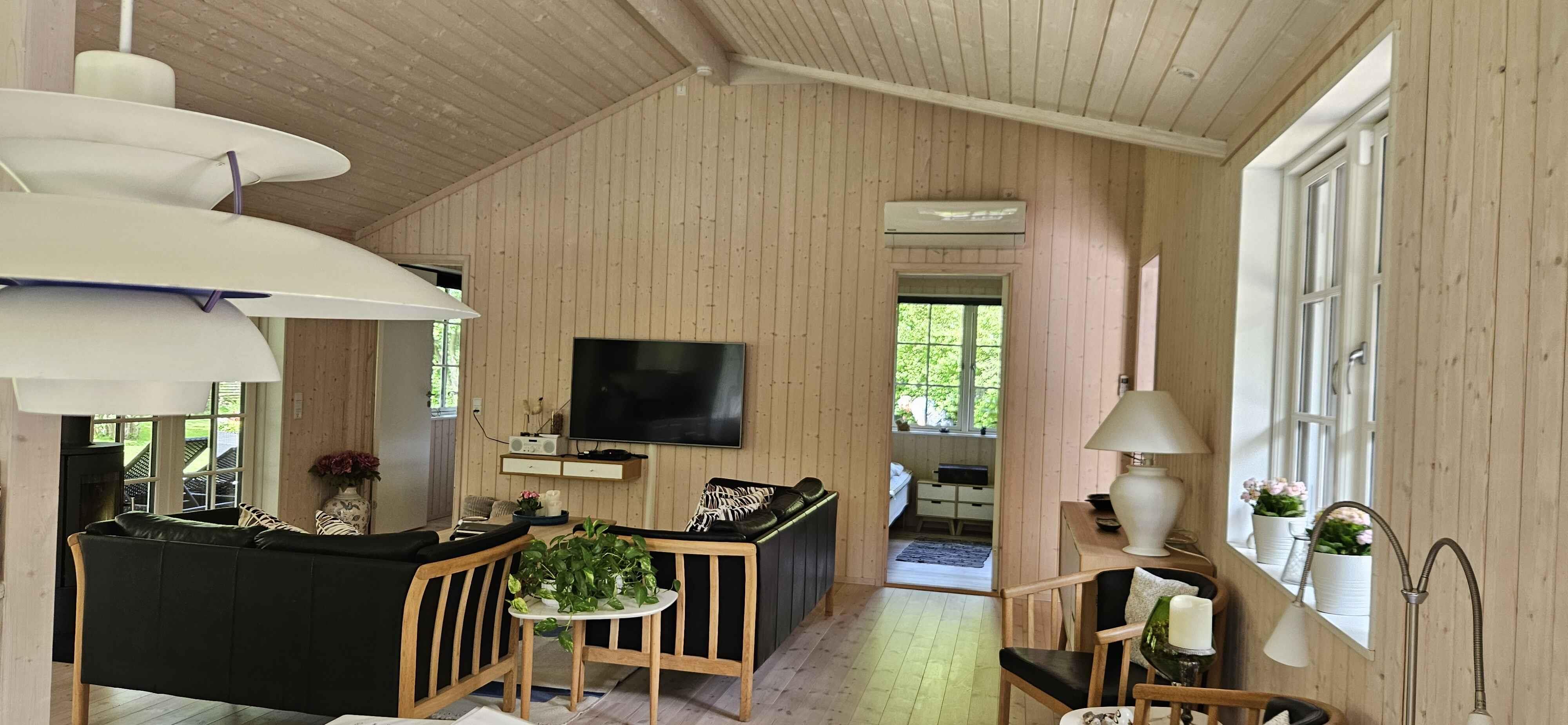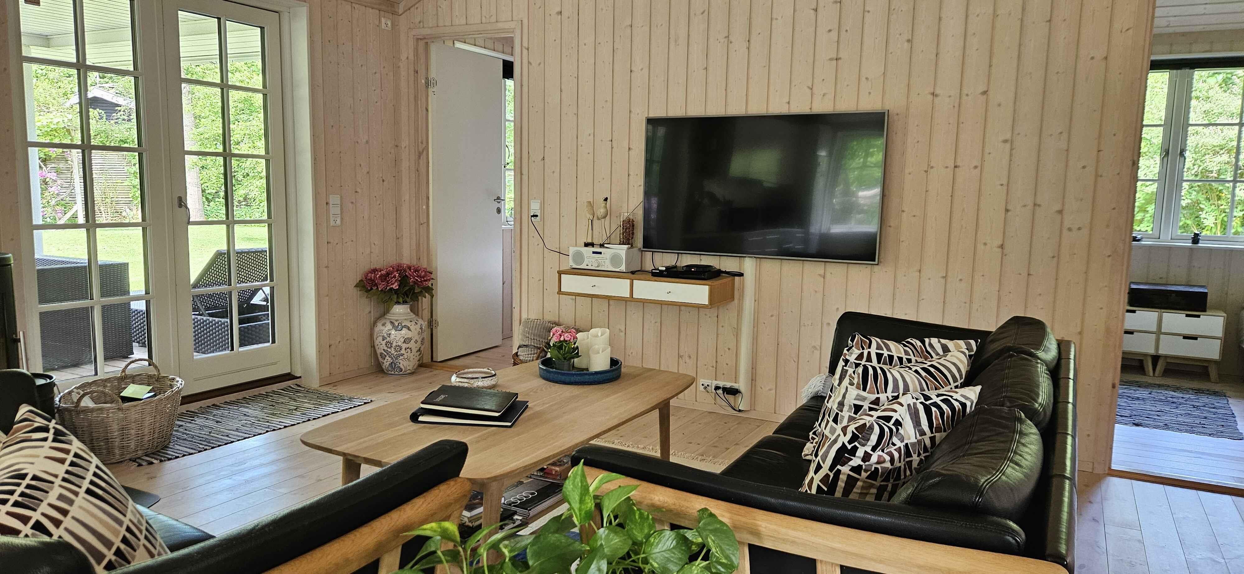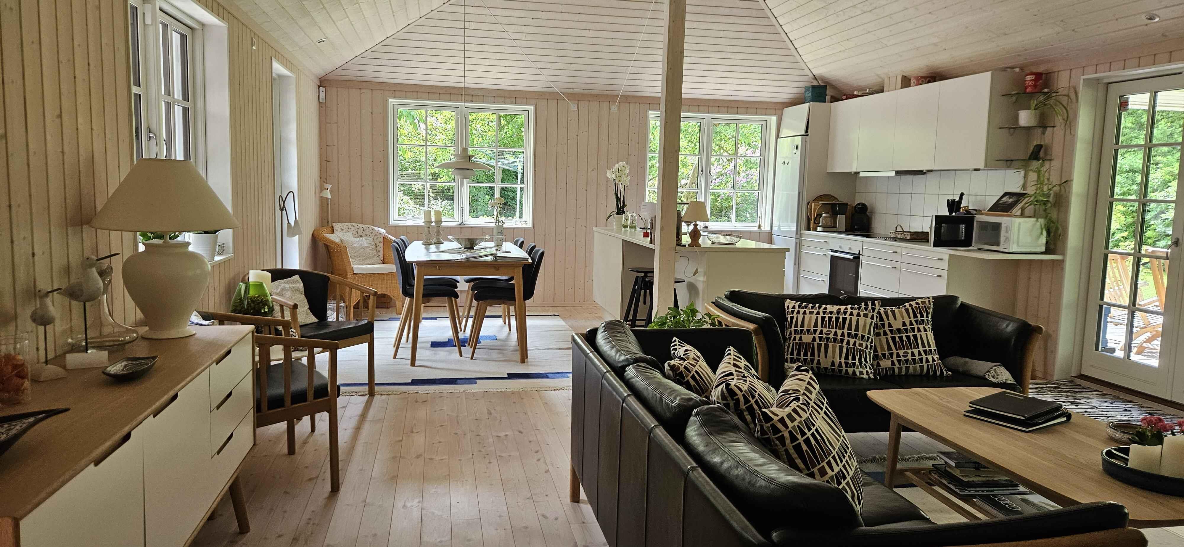 On a peaceful plot surrounded by trees lies this incredibly charming and cozy holiday home. The house offers 98 m² with three bedrooms, six beds, a bathroom, and an additional guest toilet. There’s ample space for both family and friends. The living room is the heart of the home with a wood-burning stove, heat pump, and large windows facing the garden. The open kitchen makes it easy to spend time together while cooking. Outside, the terrace invites you to relax and dine in the open air. The house is fully insulated and has internet, making it suitable for both short and long stays. Its private location makes it easy to unwind and slow down. The house is set on a 1,800 m² natural plot with mature vegetation. Peace and quiet reign here, and the area is rich in wildlife. In summer, there’s an outdoor shower with hot and cold water, and on the garage, you’ll find a 400V socket for charging electric cars. The home is secured with a burglar alarm. Just 300 meters away, the coastline awaits. Take a morning dip, walk along the shore, or simply enjoy the light and view. The coast varies from small coves to open stretches. In 2014, Odsherred was named Denmark’s first internationally recognized geopark, thanks to its unique blend of landscape, culture, art, and local ingredients. Don’t miss a visit to Vejrhøj, the third-highest point on Zealand. On a clear day, you can spot 27 churches, including Roskilde Cathedral. According to legend, a dragon sleeps at the foot of Vejrhøj, guarding three golden eggs. Odsherred offers it all – scenic landscapes, family-friendly activities, golf, tennis, great fishing spots, and Michelin-starred dining. Nearby is also Lillero Glamping and Restaurant lilleB by formel B. Note: Not for commercial rental.