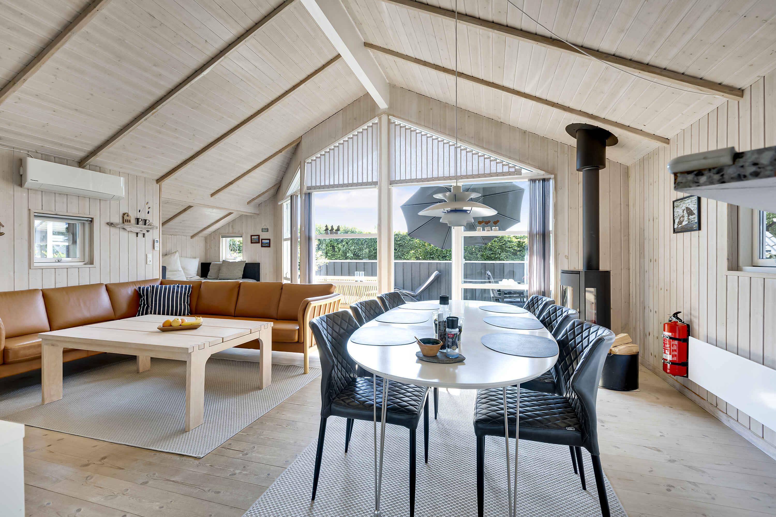 Welcome to this holiday home in Assens, an idyllic cottage located in the charming area of Sandager Næs. Here, you get a unique combination of comfort and scenic experiences. The house features three well-equipped bedrooms with six sleeping spots. Perfect for both family and friends. The kitchen is fully equipped, and with underfloor heating in both the kitchen and bathrooms, it always feels like home. The living room also has a wood-burning stove and a heat pump for optimal comfort. For technological comfort, there's lightning-fast fiber internet, a TV with ChromeCast, and a Marshall Bluetooth speaker. Entertainment is assured. The terrace invites you to grill and relax, under the pavilion with heat and LED lights. The large wilderness bath relaxes the body and invites you to enjoy time with family and friends. A sanctuary where you can listen to the sounds of nature or your favorite songs via the Bluetooth speaker. The area is a pure gem. World-class golf, mountain biking, and sea trout fishing are just the beginning. There is also a boat launch. About 500 meters from the cottage is Sandager Næs Camping, where there are shopping opportunities from April 12 to September 15. There's also a pool area at the campsite that you can use for a fee. Assens, Middelfart, and Odense are all within reach for day trips. Visit Egeskov Castle or H.C. Andersen's House for a cultural experience. For nature lovers, we recommend a bike ride to Torø Huse or a boat trip to Bågø. Æbelø is also a must-see for adventurous hikes. Looking for an adrenaline rush? A Bridgewalking tour on the Lillebælts Bridge won't disappoint. This holiday home is more than just a place to stay. It's an oasis of opportunities, comfort, and unforgettable experiences. Lasting memories are created here. Note: Not for commercial rental.