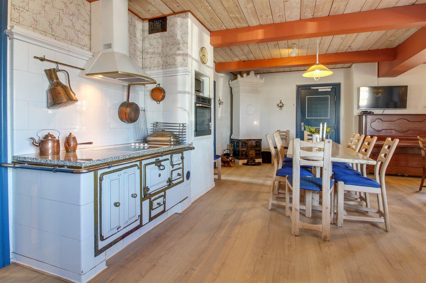 Holiday home suitable for 20 persons as well as 2 children up to 3 years. The holiday home is 350 m² and is build in 1871. In 2005 the holiday home was partial renovated. You can bring along 3 pets. There is ground heat. The holiday home has 2 washing machines. Tumble dryer. Freezer capacity of 250 litres. Further more there is 1 wood-burning stove. For the youngest ones there are 3 high chairs.