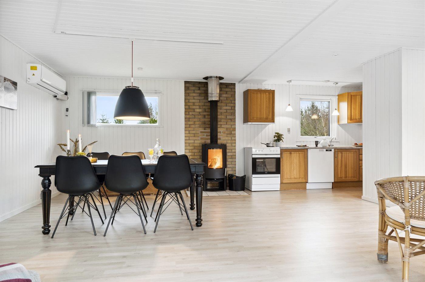 Holiday home suitable for 6 persons as well as 1 child up to 3 years. The holiday home is 91 m² and is build in 1967. In 2002 the holiday home was renovated. In 2023 the holiday home was partial renovated. No pets allowed. The holiday home is equipped with 1 energy-saving air-to-air heat pump. The holiday home has washing machine. Freezer capacity of 64 litres. Further more there is 1 wood-burning stove. For the youngest ones there is 1 high chair.