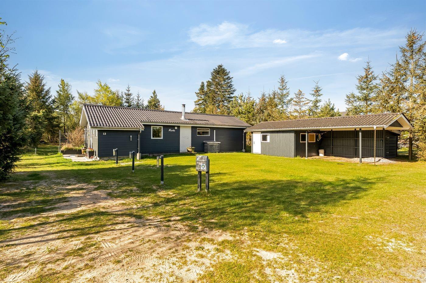 The holiday home is situated on a 1224 m² natural site. The site is fenced in. Situated 700 m from the sea. Nearest shop is 3000 m away. A terrace belong to the holiday home.Fire place. Barbecue at your disposal. Carport is at your disposal. Parking place by the holiday home.