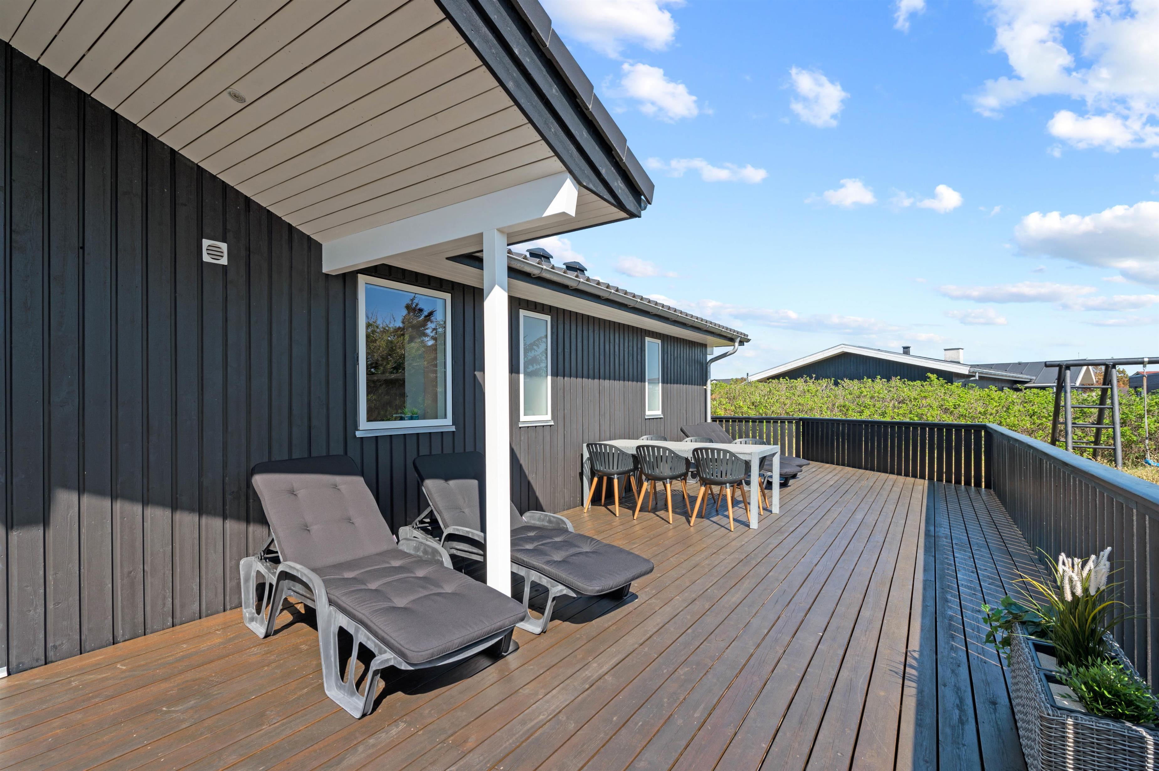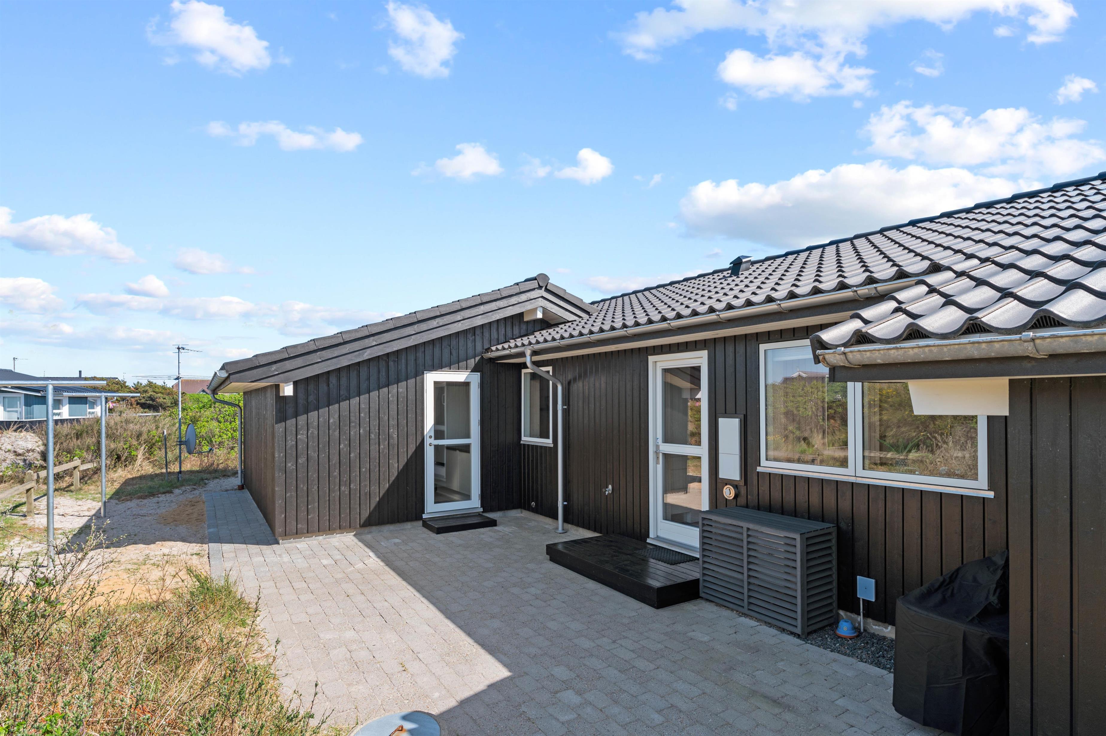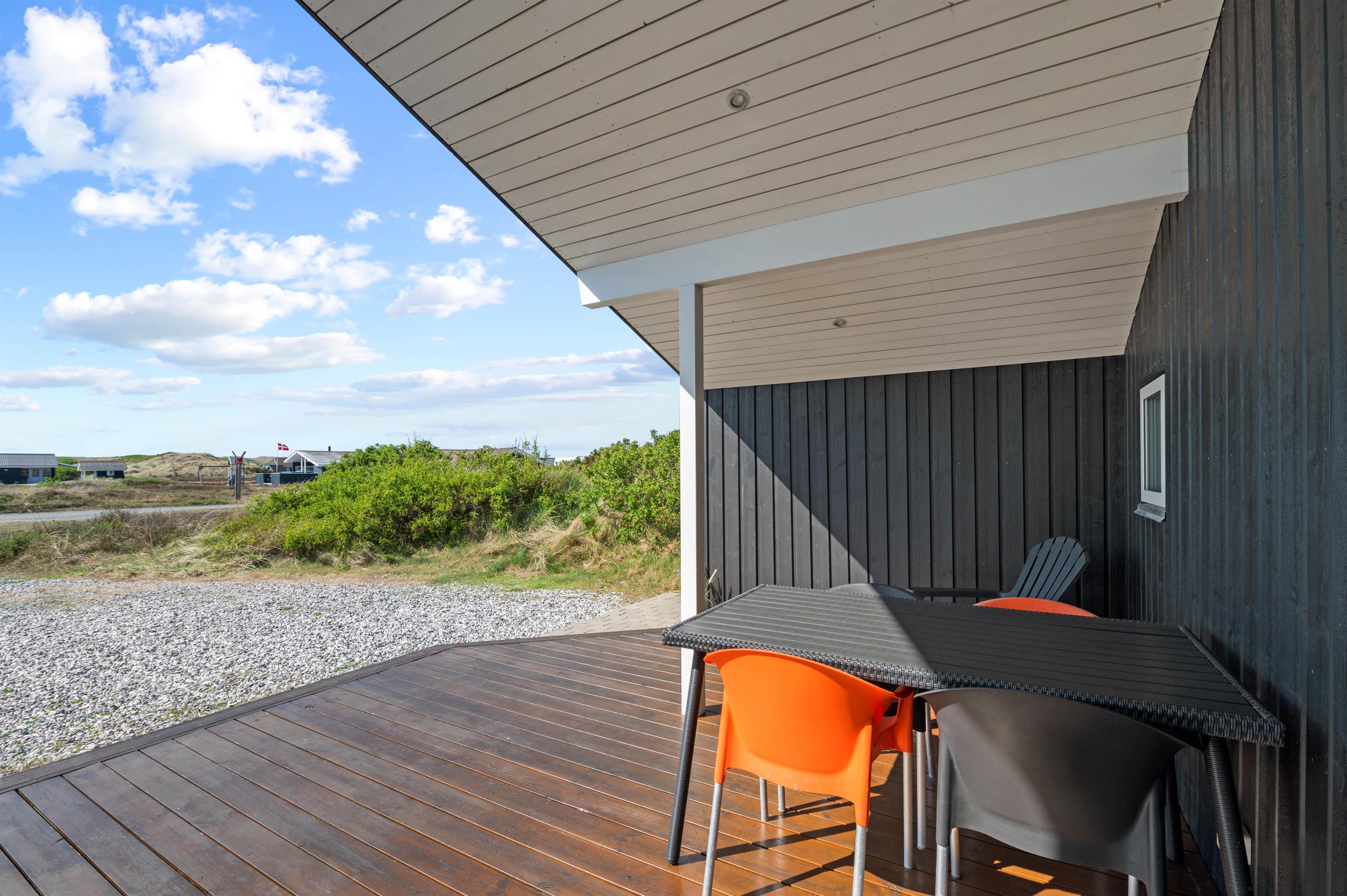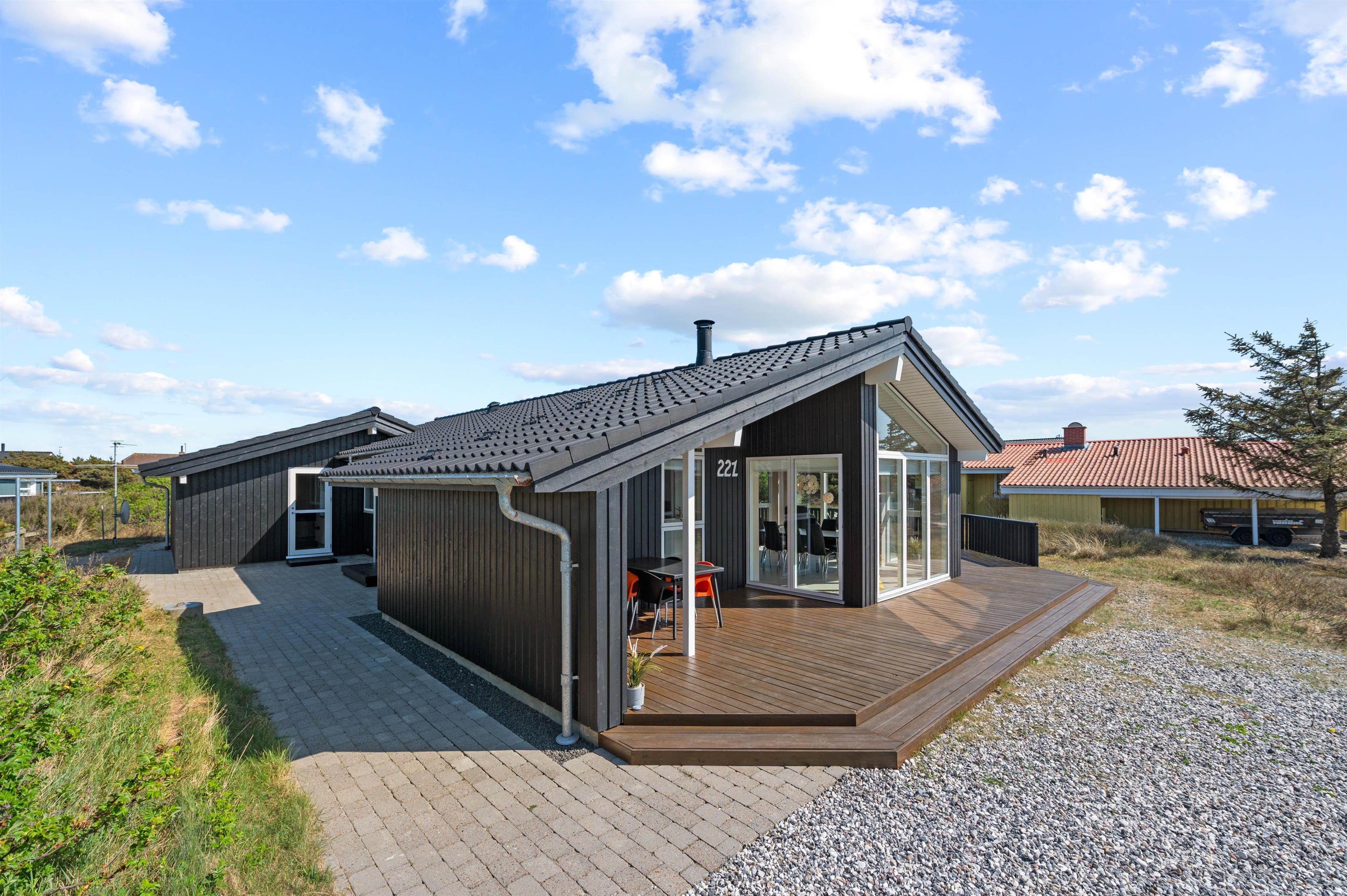 This exceptional holiday home at Bjerregårdsvej 221 offers tasteful, modern furnishings throughout. The summer house is peacefully situated on a quiet side road, just a few minutes' walk from the beach. You can enjoy a peaceful holiday on the beautiful, sheltered and partially covered terrace.
