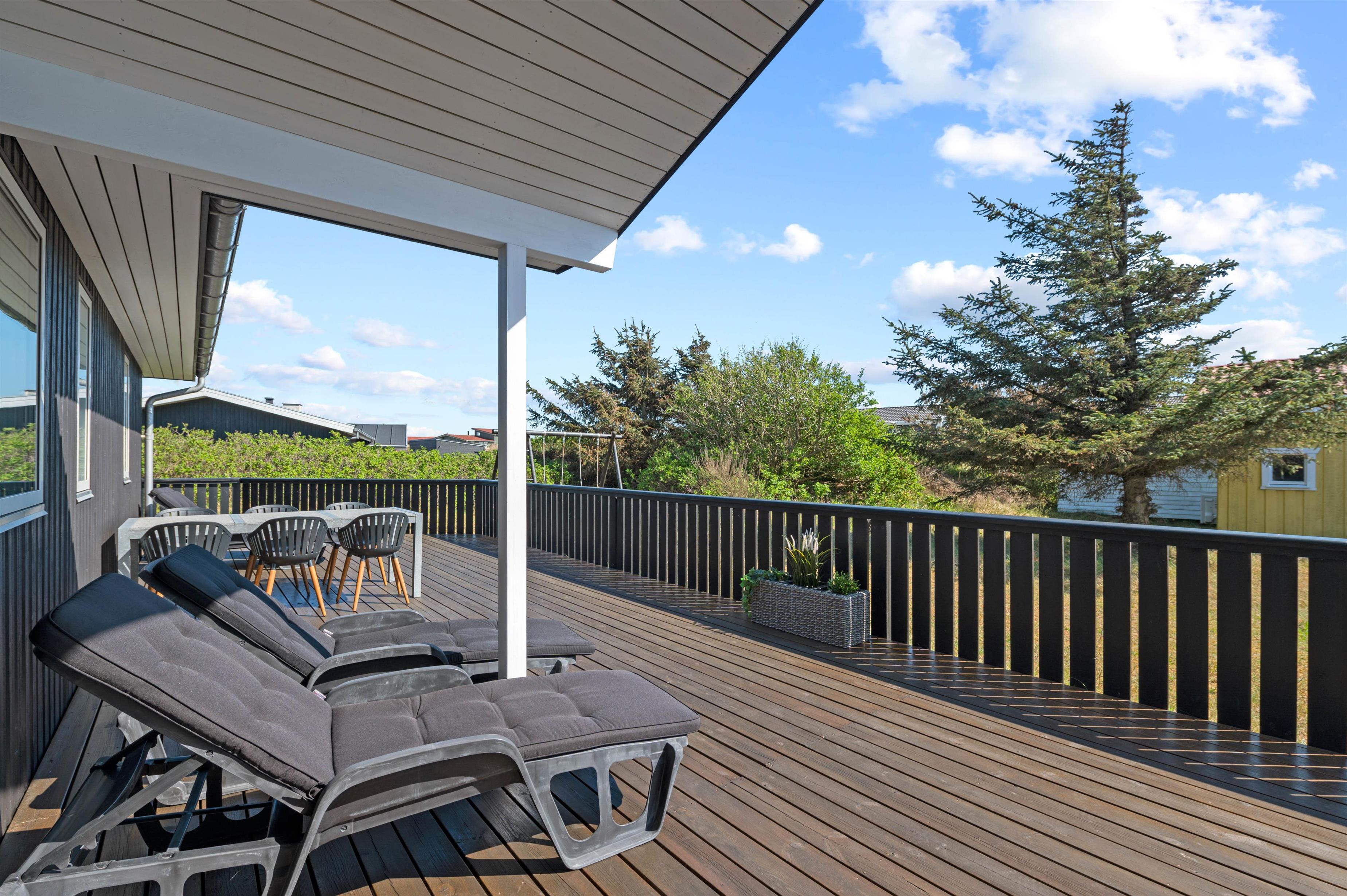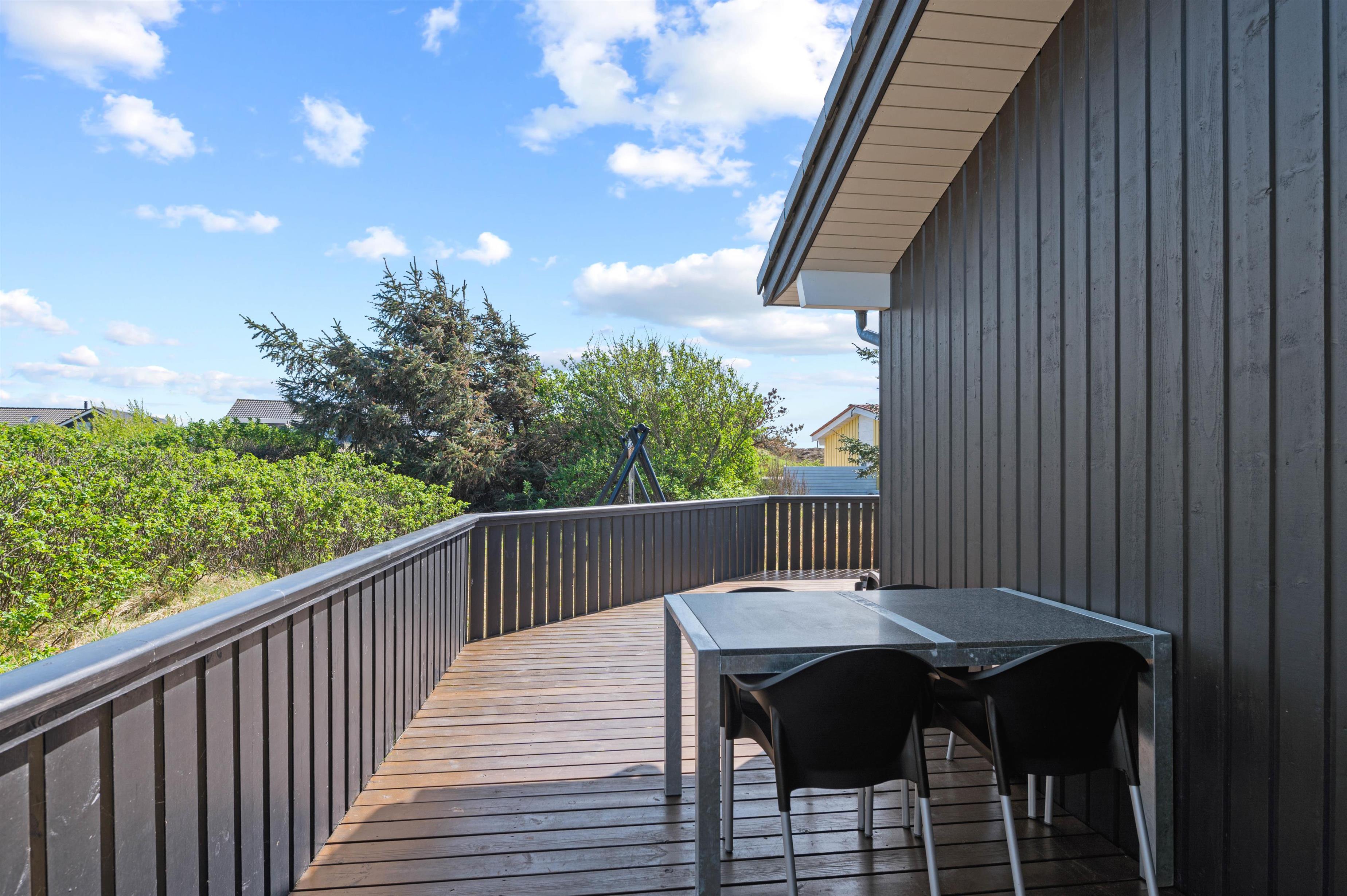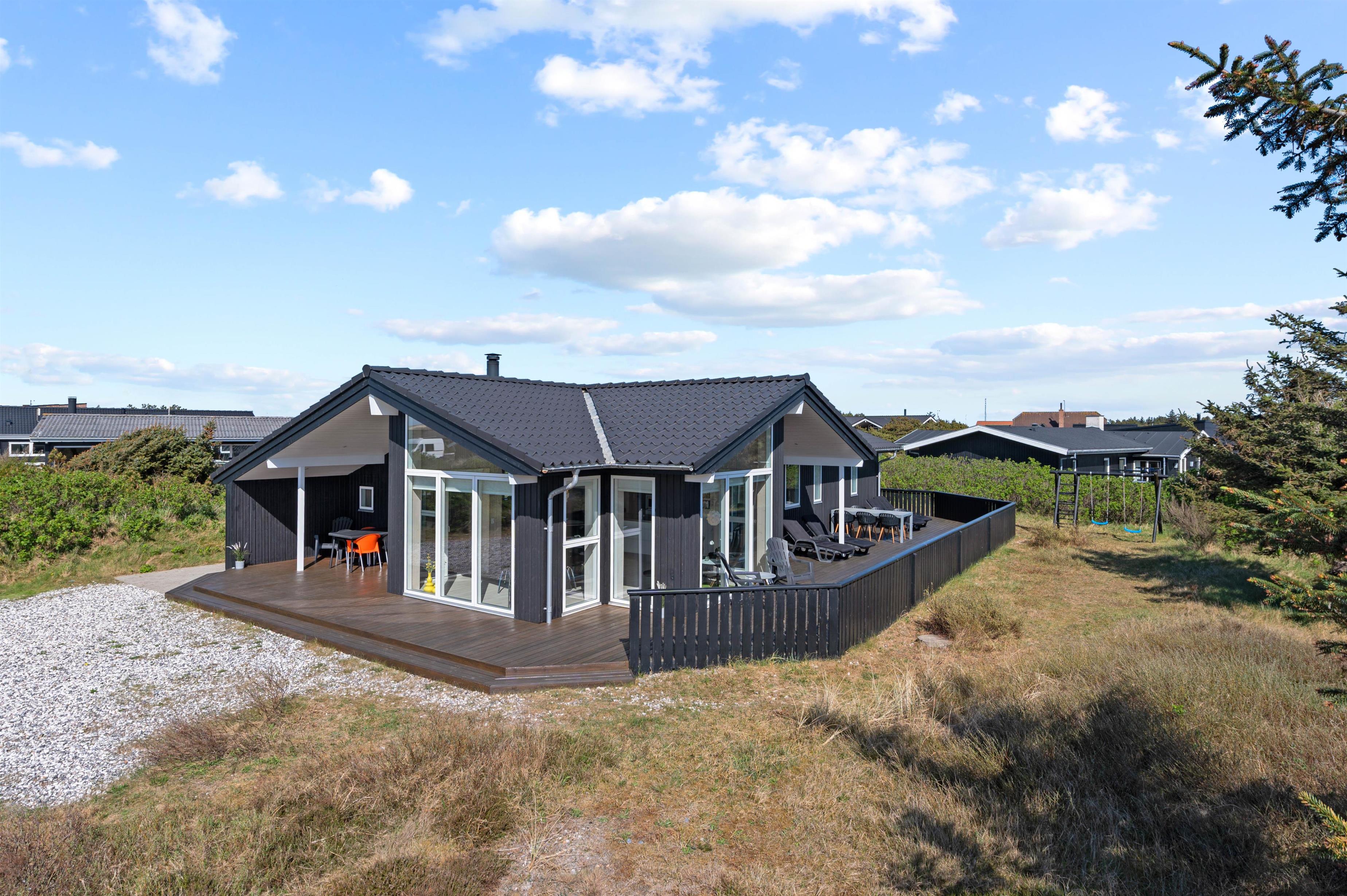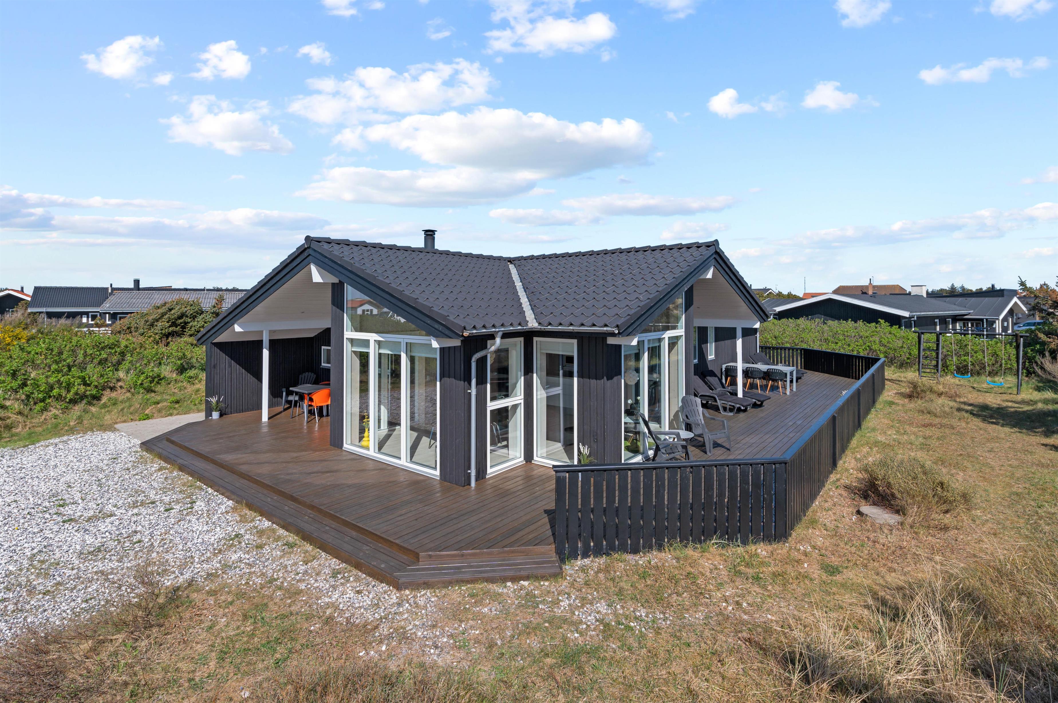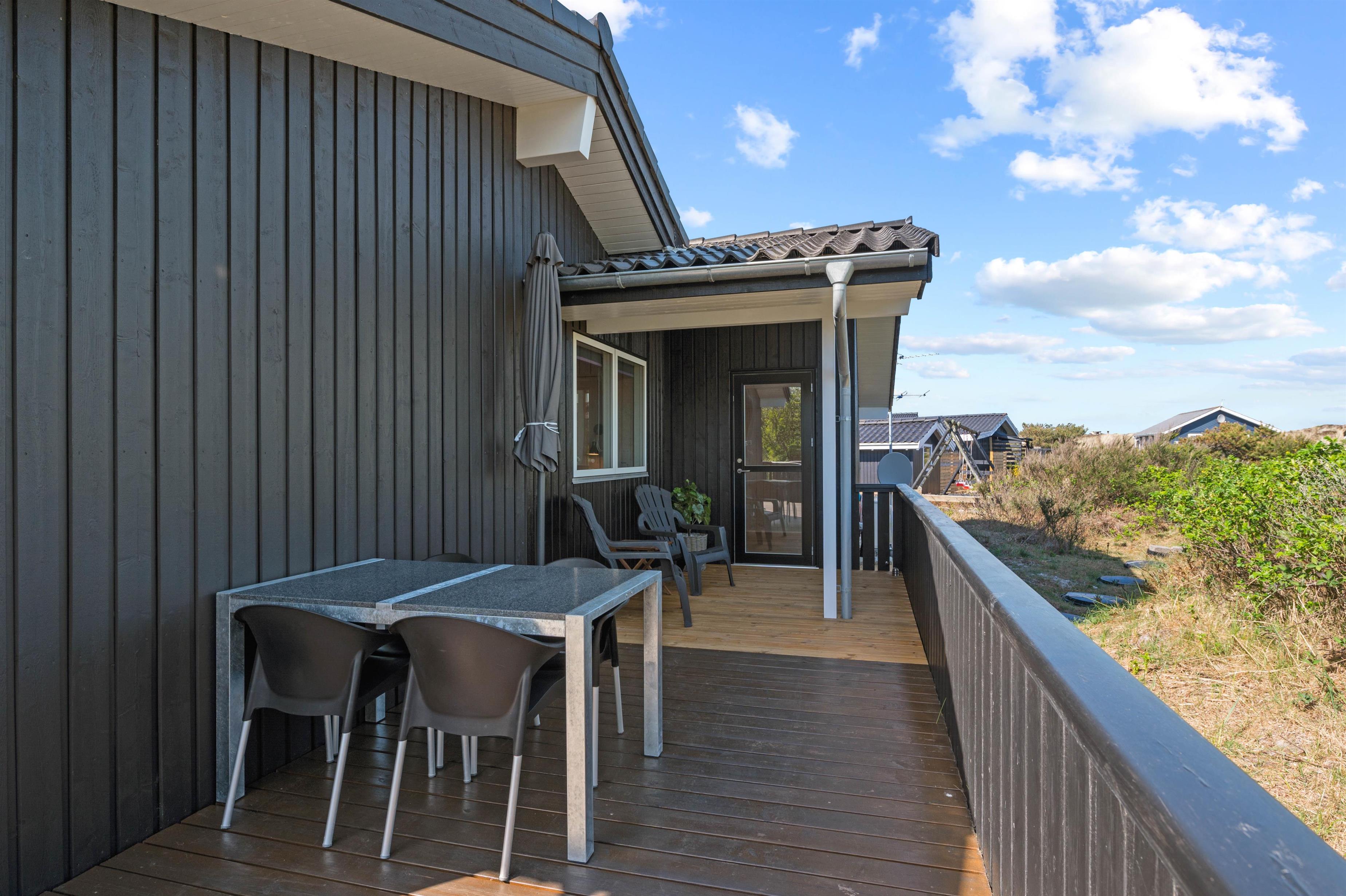 This exceptional holiday home at Bjerregårdsvej 221 offers tasteful, modern furnishings throughout. The summer house is peacefully situated on a quiet side road, just a few minutes' walk from the beach. You can enjoy a peaceful holiday on the beautiful, sheltered and partially covered terrace.