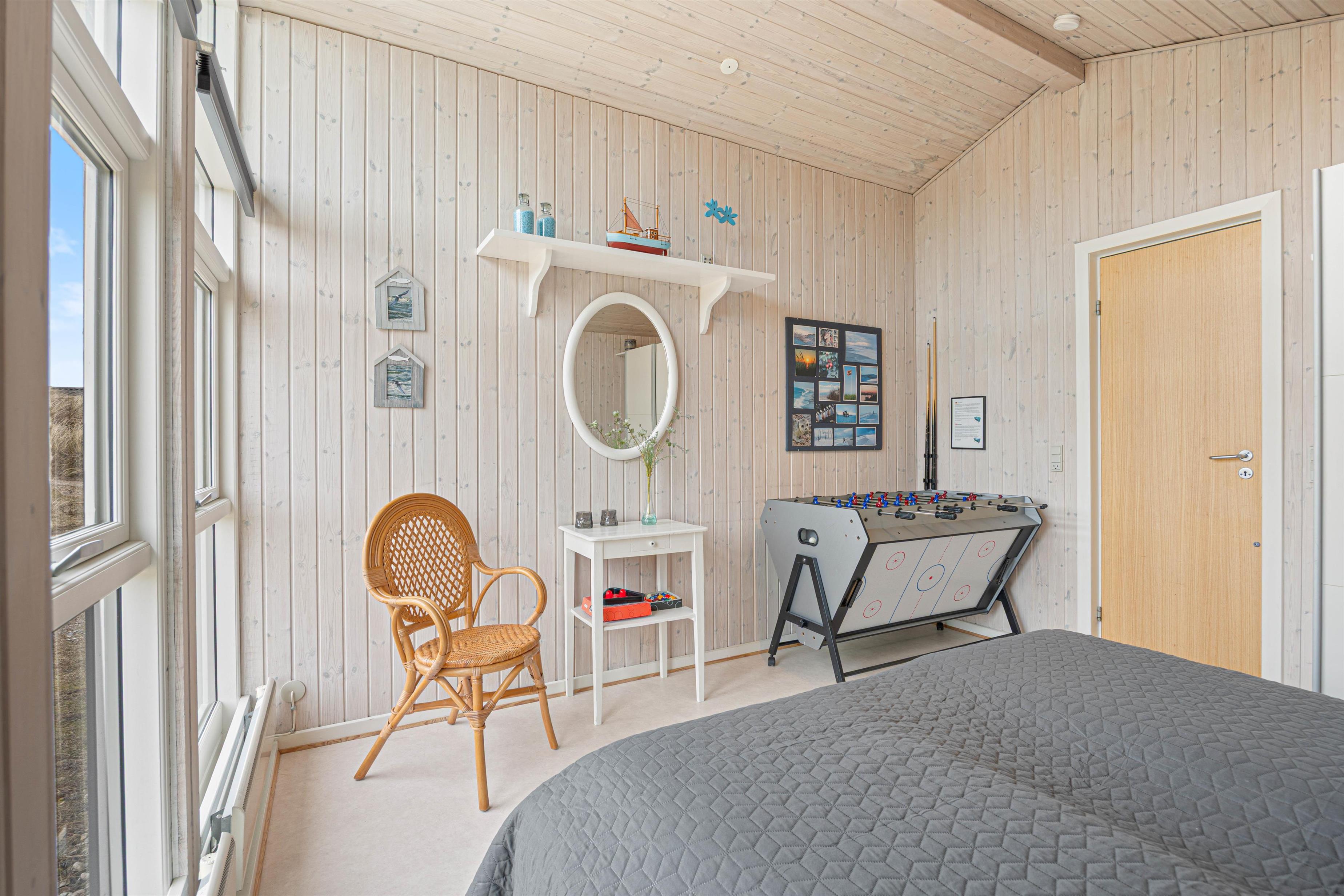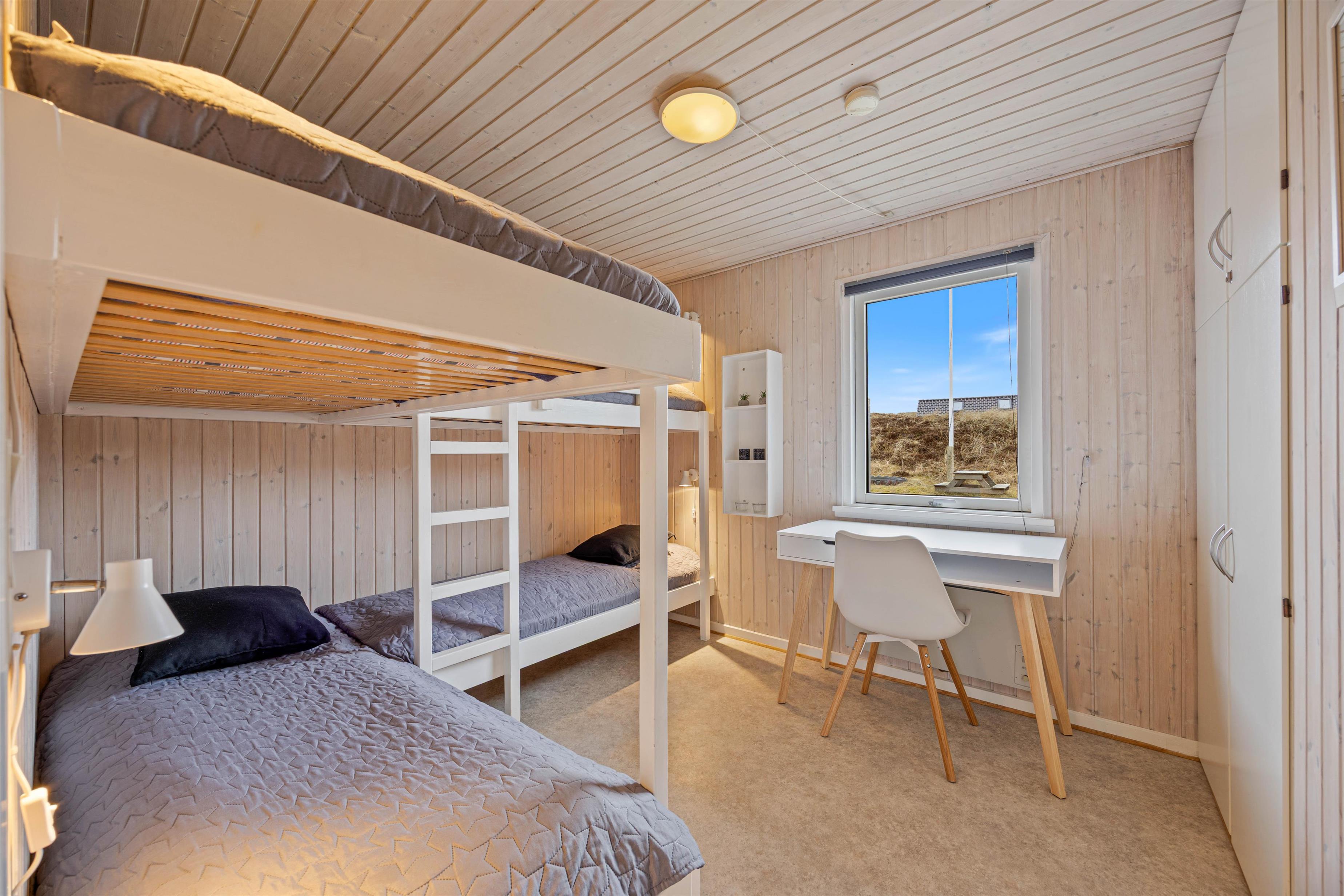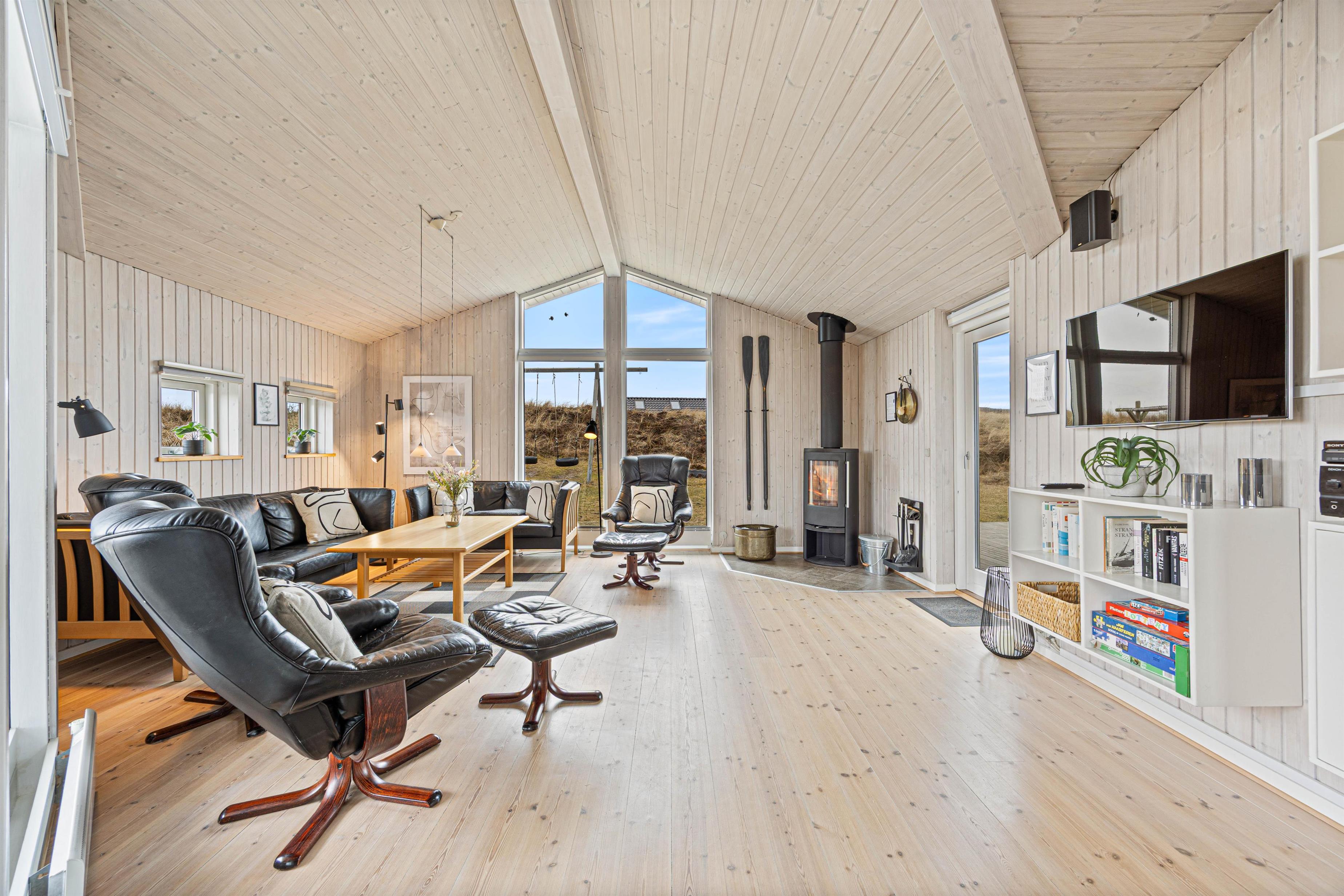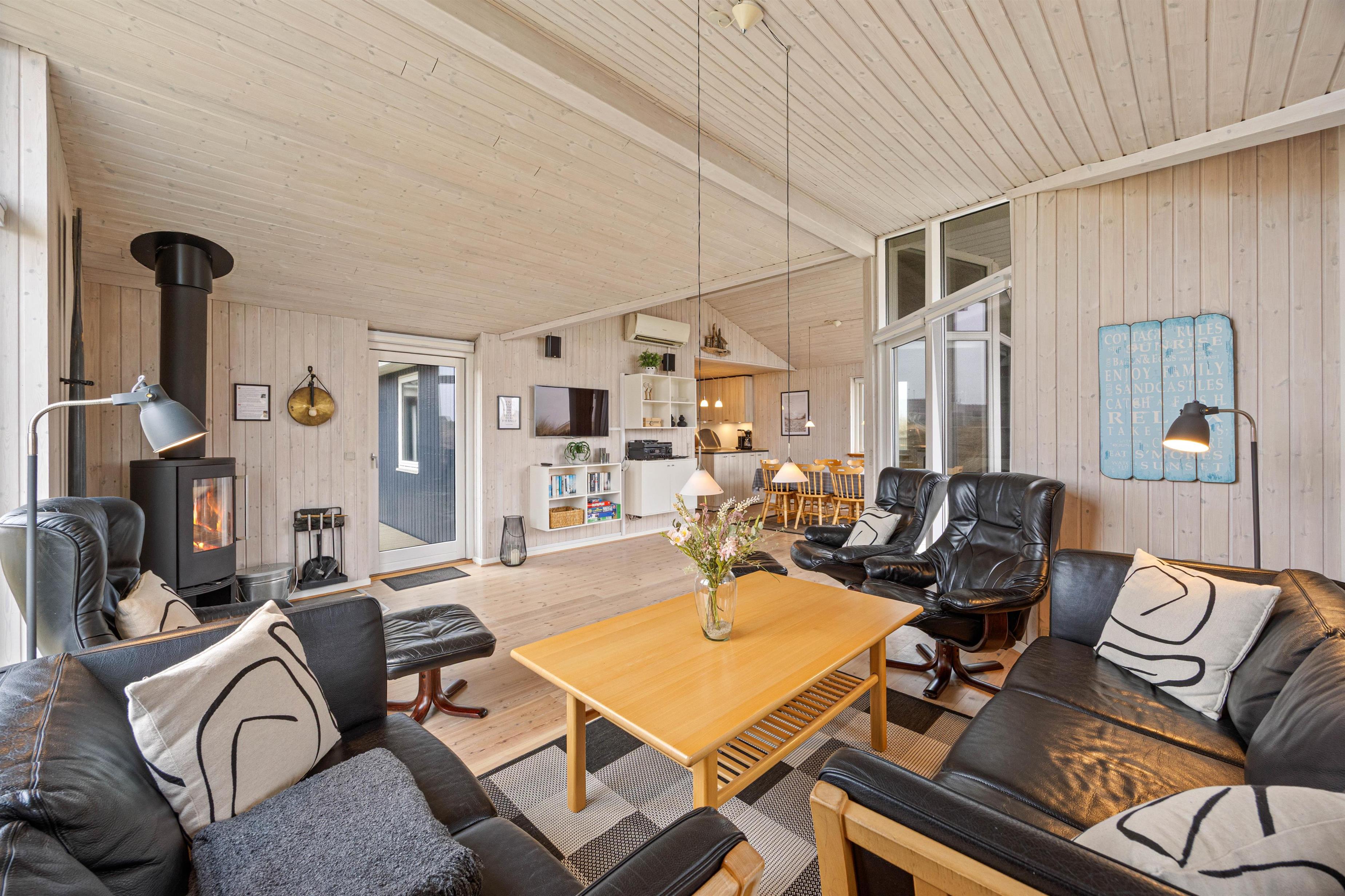 The holiday home is designed so you can spend time together while still having space to retreat. With 3 bedrooms, the sleeping arrangements are well distributed: 1 room with a double bed, another room also with a double bed, and the third room with 2 bunk beds. Indoors, you can extend the season and make your stay extra comfortable with an efficient air-to-air heat pump, while the wood-burning stove creates the perfect holiday atmosphere on cooler evenings with its cozy warmth.