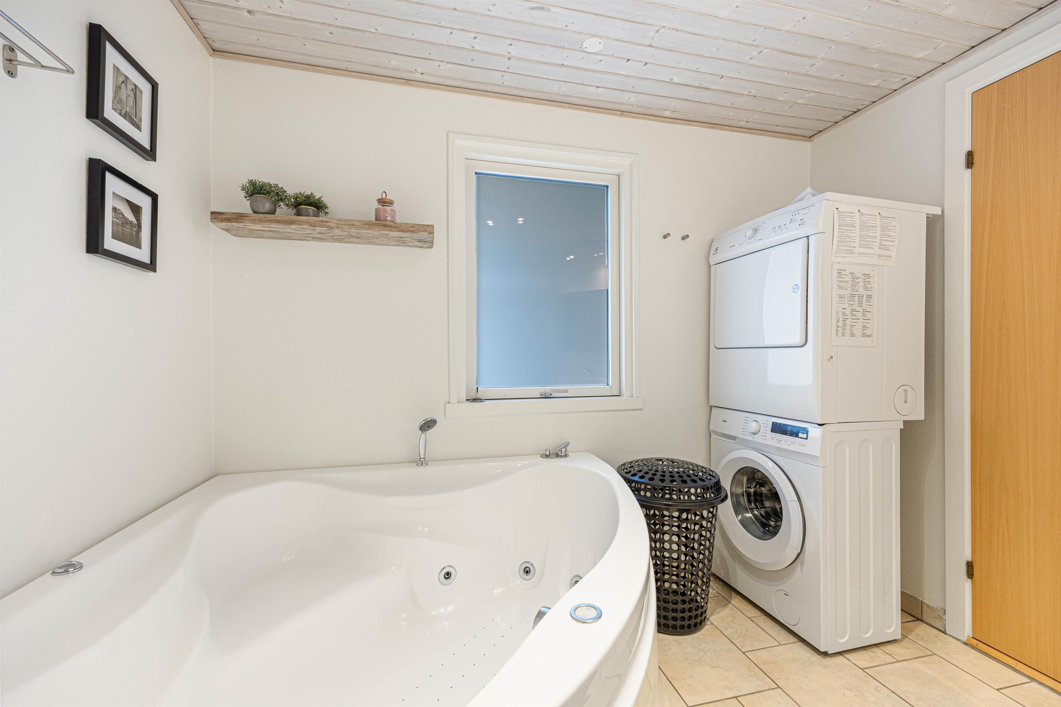 To make everyday life easier, practical facilities are at your disposal. There is both a washing machine and a tumble dryer, so wet clothes and towels are quickly ready again after a day by the water. The kitchen is equipped with a dishwasher, and the separate 93-liter freezer provides plenty of space for ice cream and other frozen treats.