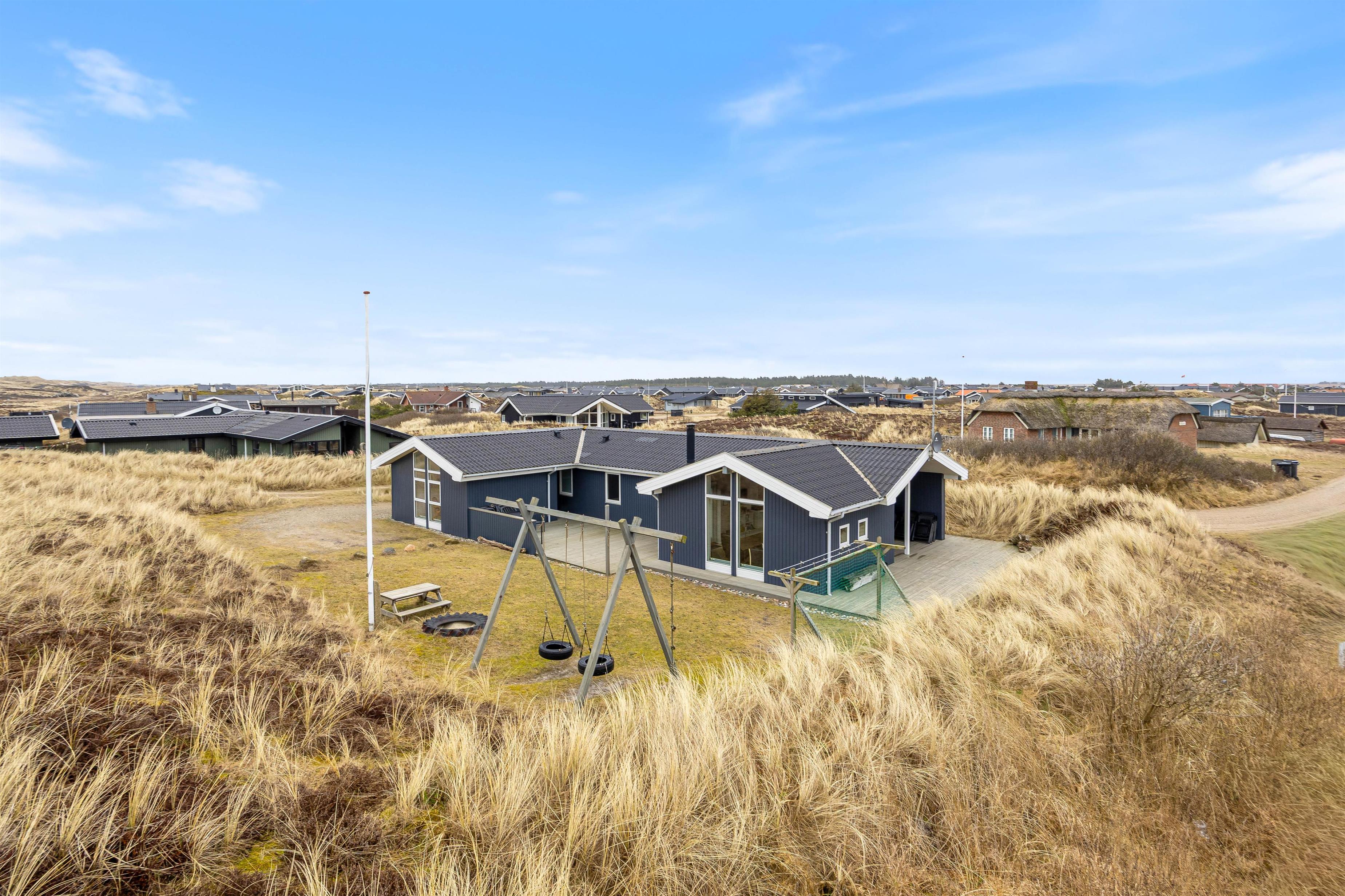 Bjerregård is a peaceful and scenic holiday area located between the North Sea and Ringkøbing Fjord, where the fresh sea air and wide sandy beaches create the perfect setting for relaxation and nature experiences. The area invites you to take long walks in the dunes, go cycling along the water, and enjoy cozy days at the beach. Nearby, you’ll find the charming harbor town of Hvide Sande, offering great restaurants, shops, and a lively harbor atmosphere, while Ringkøbing entices with its cobbled streets, small specialty shops, and authentic market town charm. At the same time, there is a short distance to a variety of exciting attractions and activities for both children and adults.