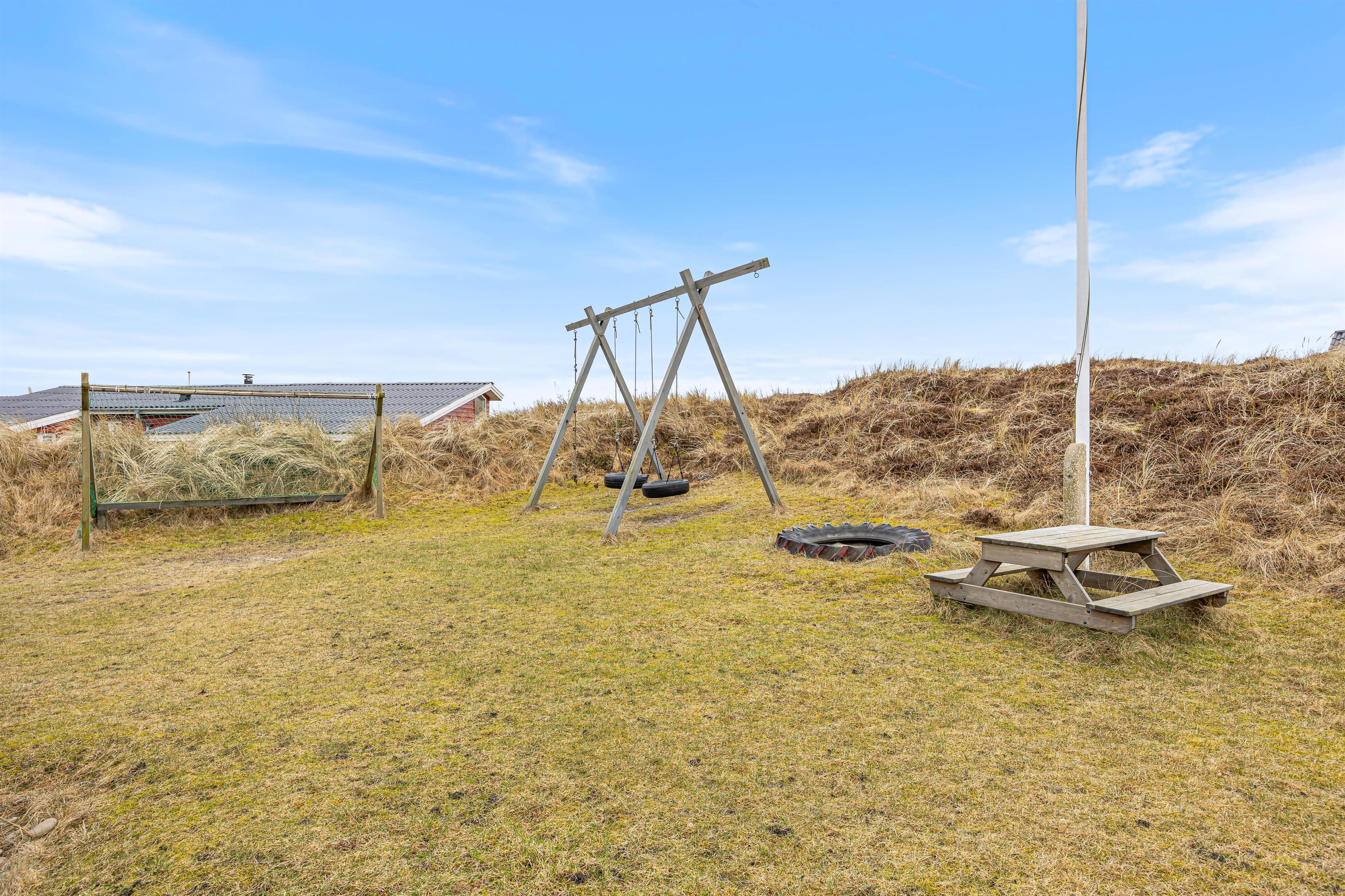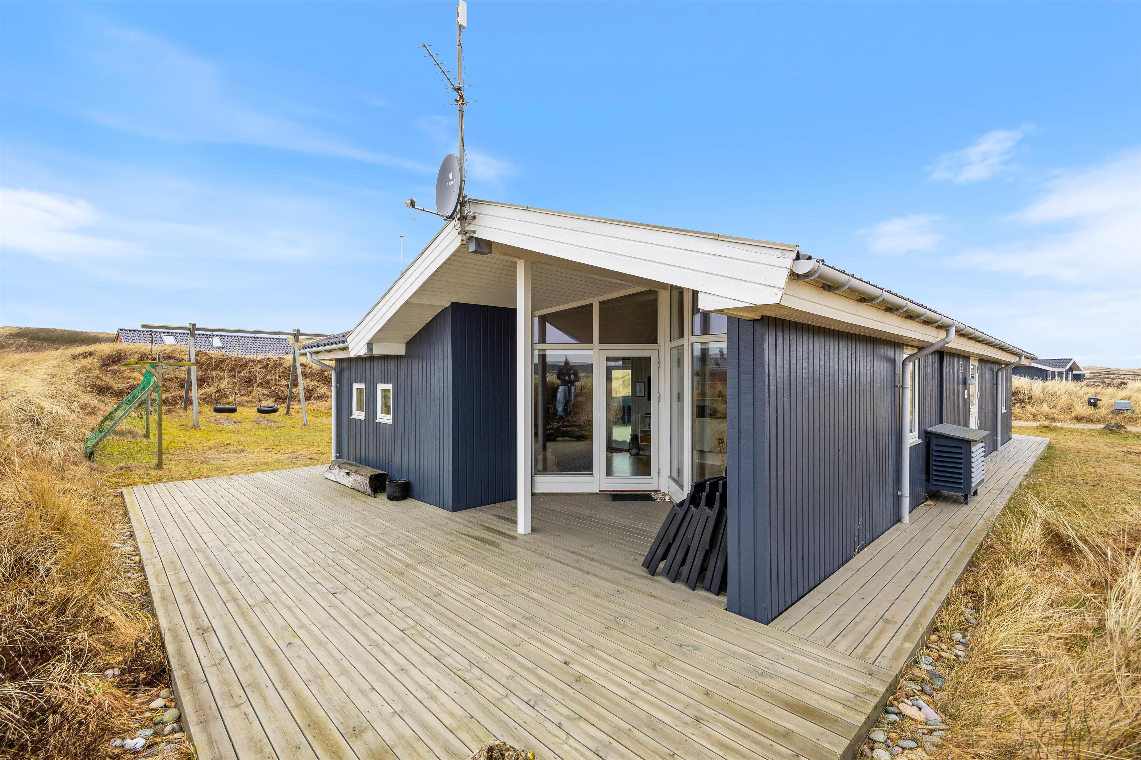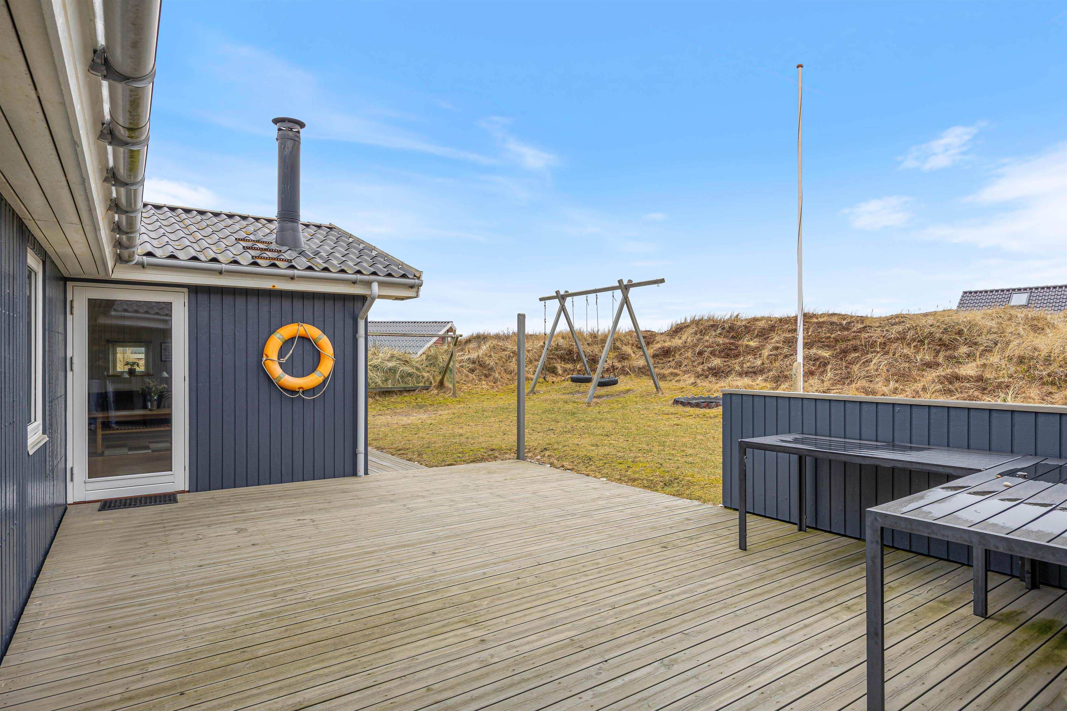Outside, you’ll find wonderful surroundings for holiday living. The sheltered terrace offers privacy and protection from the wind, while the covered terrace makes it easy to sit outside even when the weather changes. On the natural plot, children can spend hours enjoying the swing, sandbox, and a football goal, while for the adults, the grill is perfect for evenings with great food and cozy gatherings.