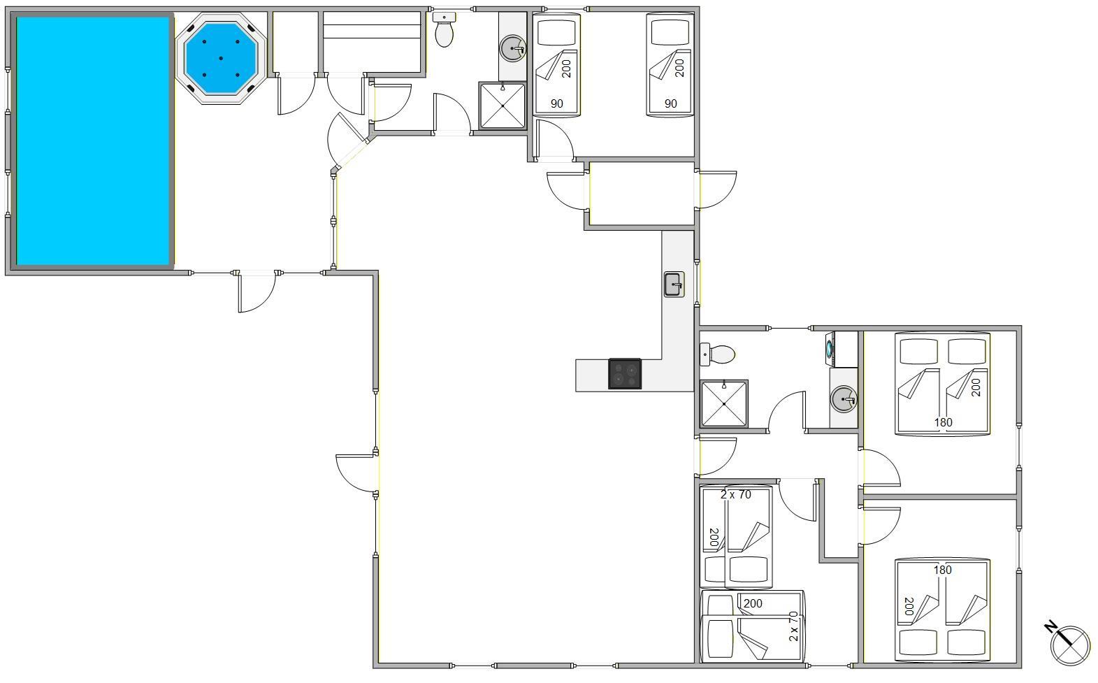 Outside, the house offers open, covered, and enclosed terrace areas, so you can always find a comfortable spot. Here you can enjoy your morning coffee, relax in sun loungers, or gather for meals from the grill as the day winds down.