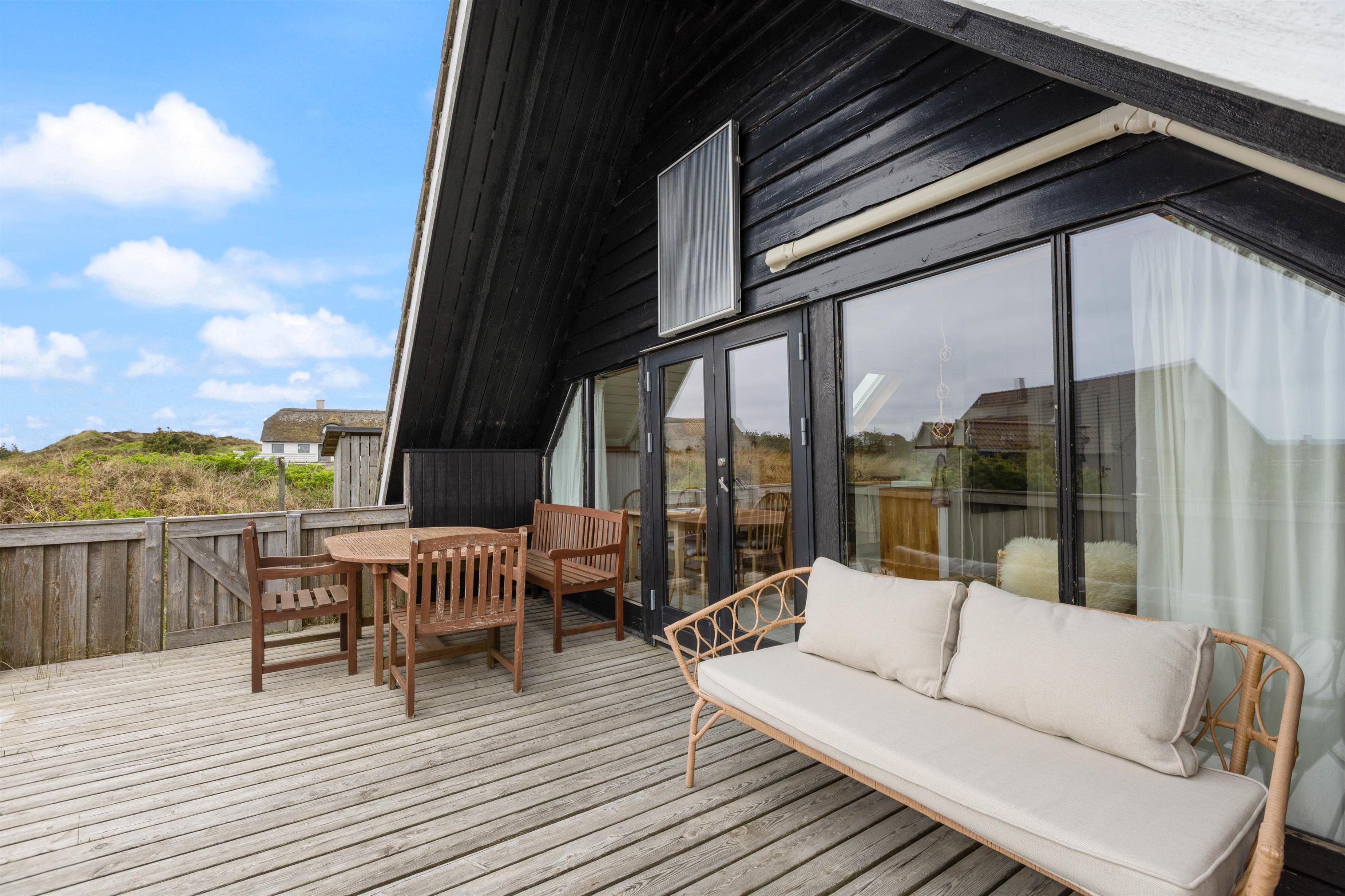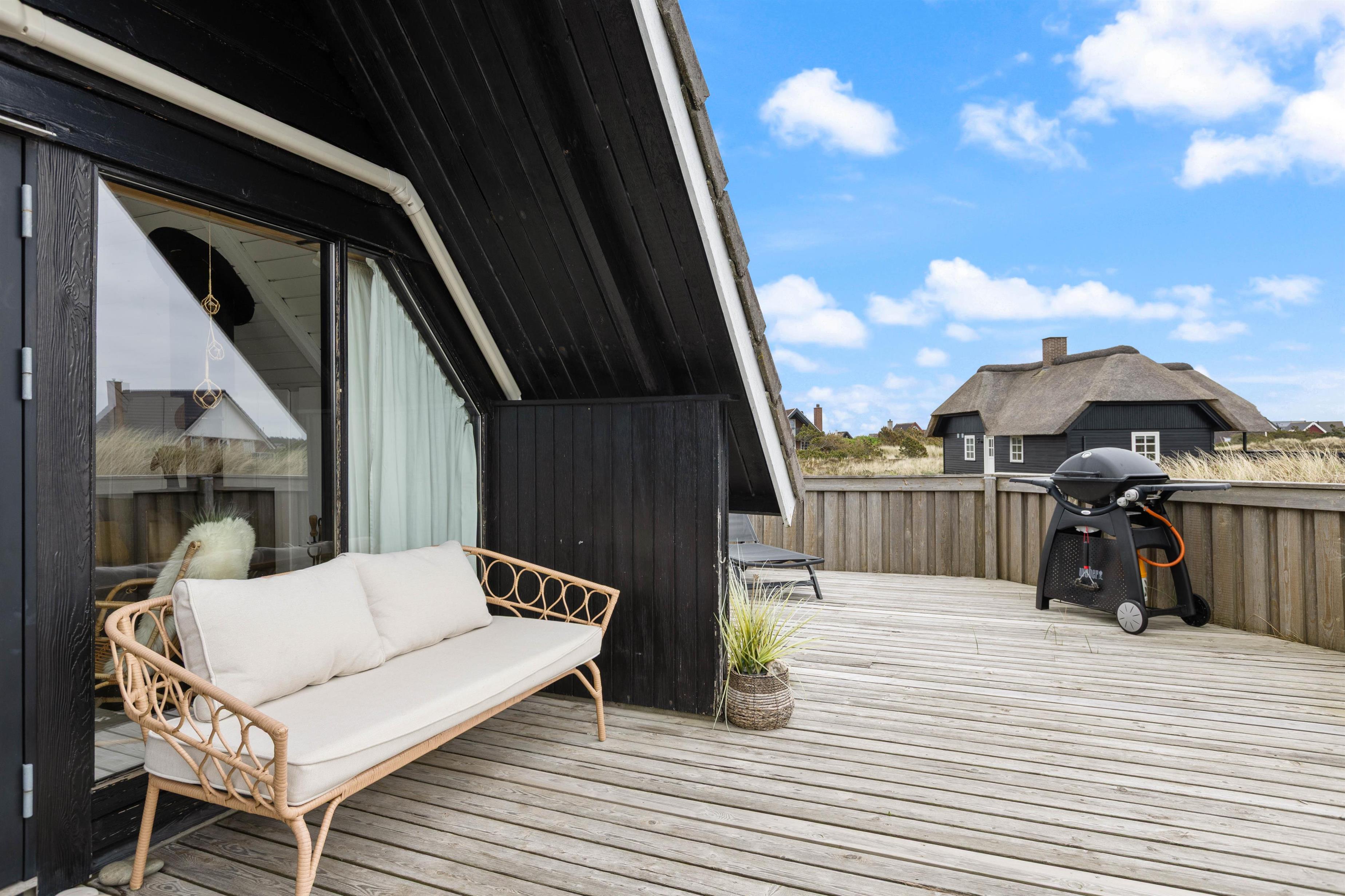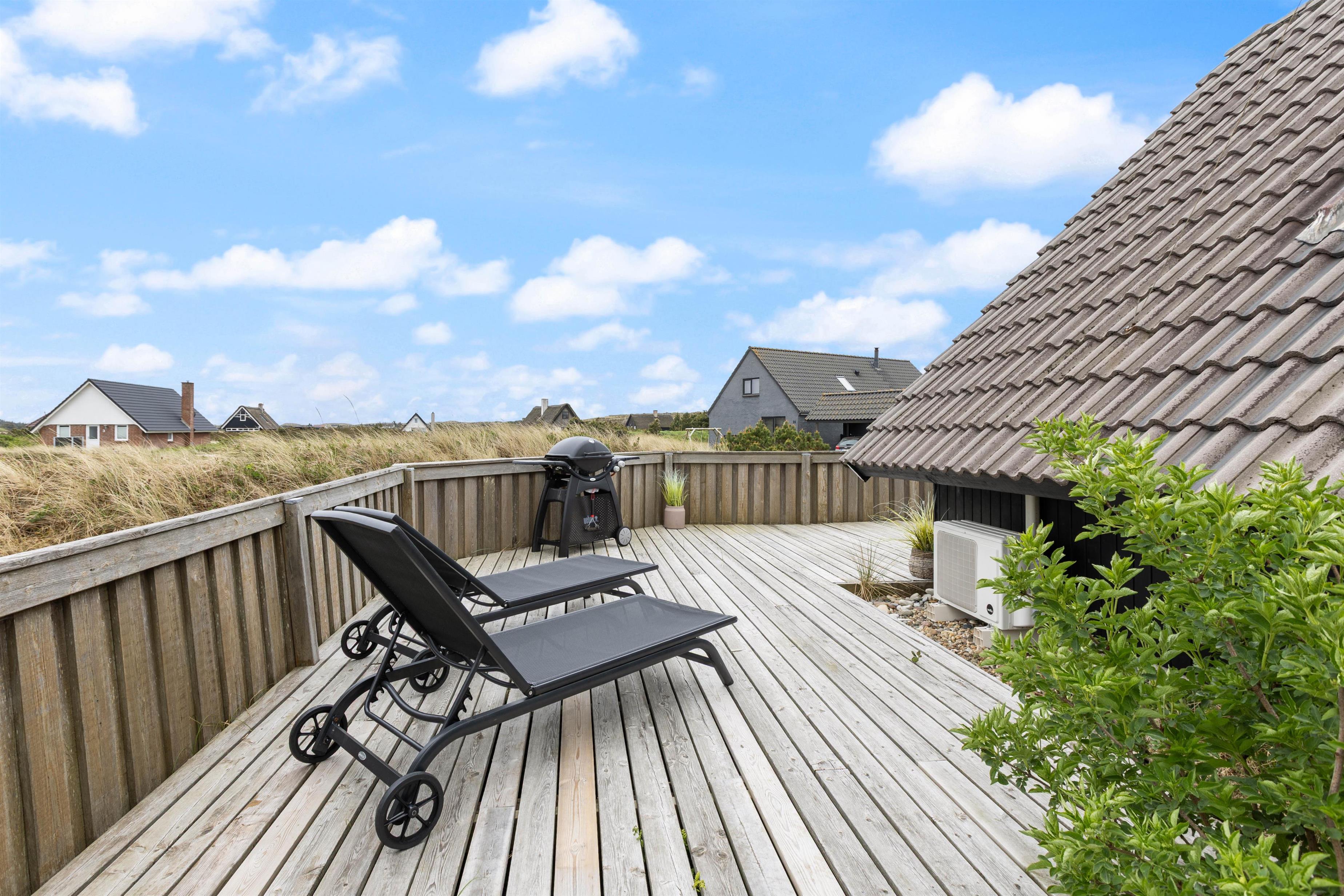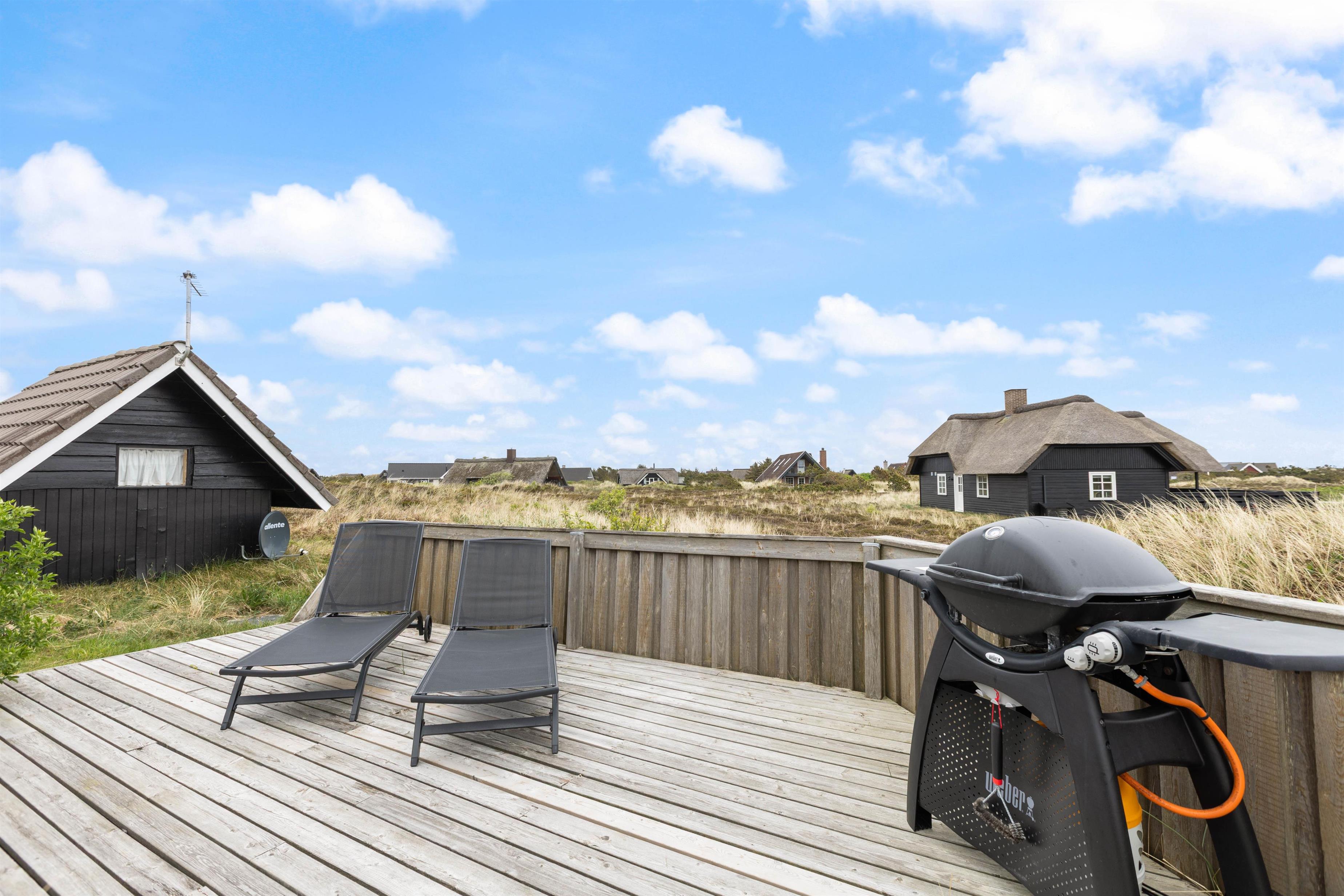 Comfortable garden furniture surrounds your holiday home for outdoor relaxation. The various terrace areas, partially covered, offer sheltered spots to enjoy the fresh sea air. From here you can look out over your dune-side plot and prepare a delicious barbecue on the gas BBQ in the evening.