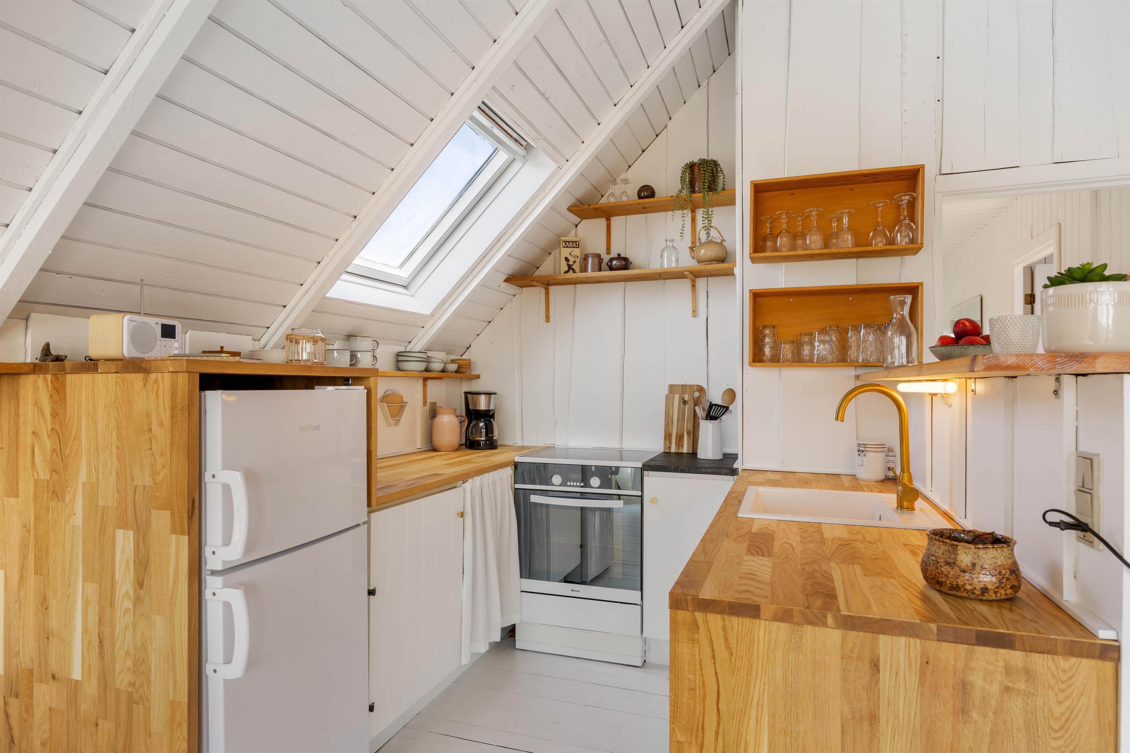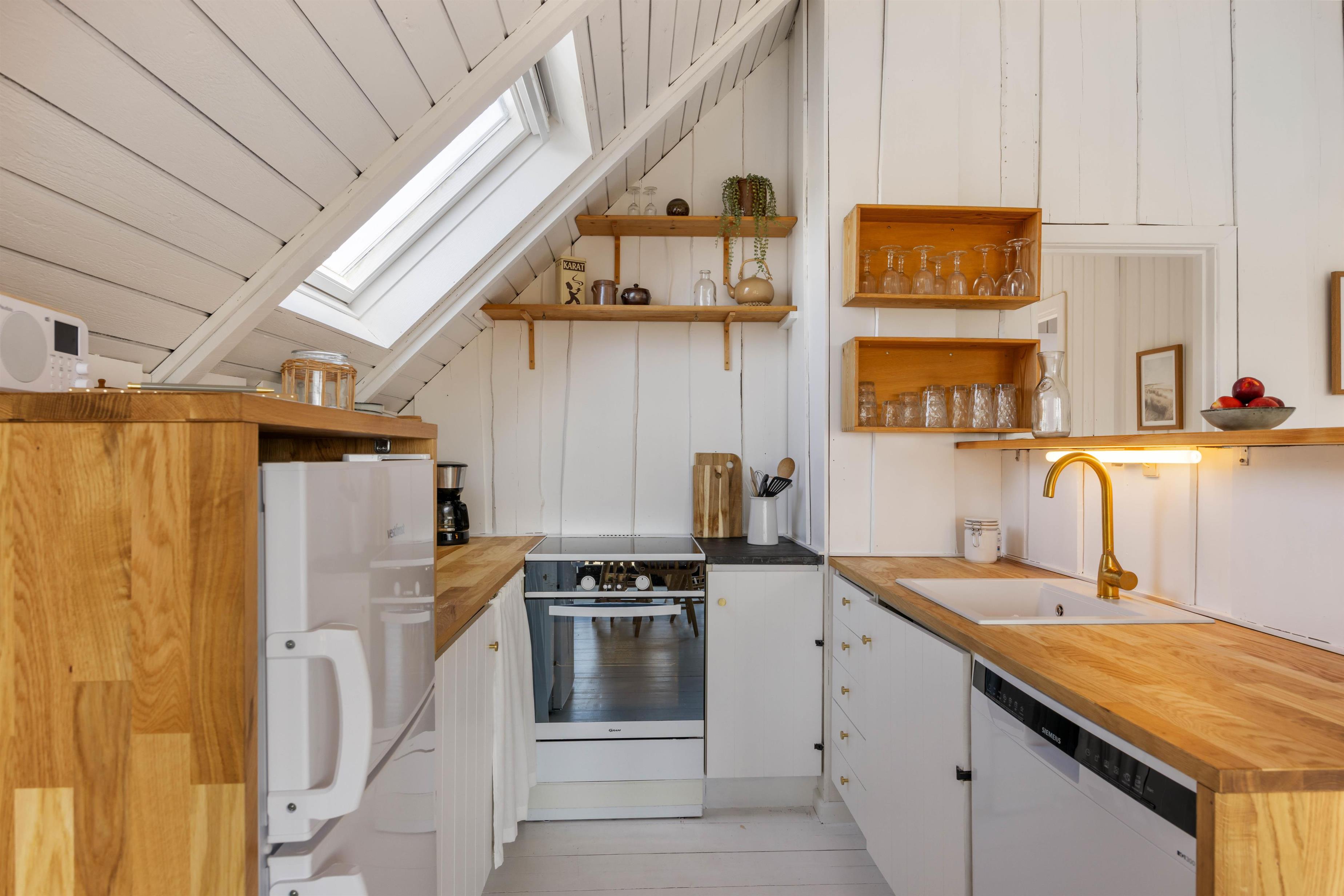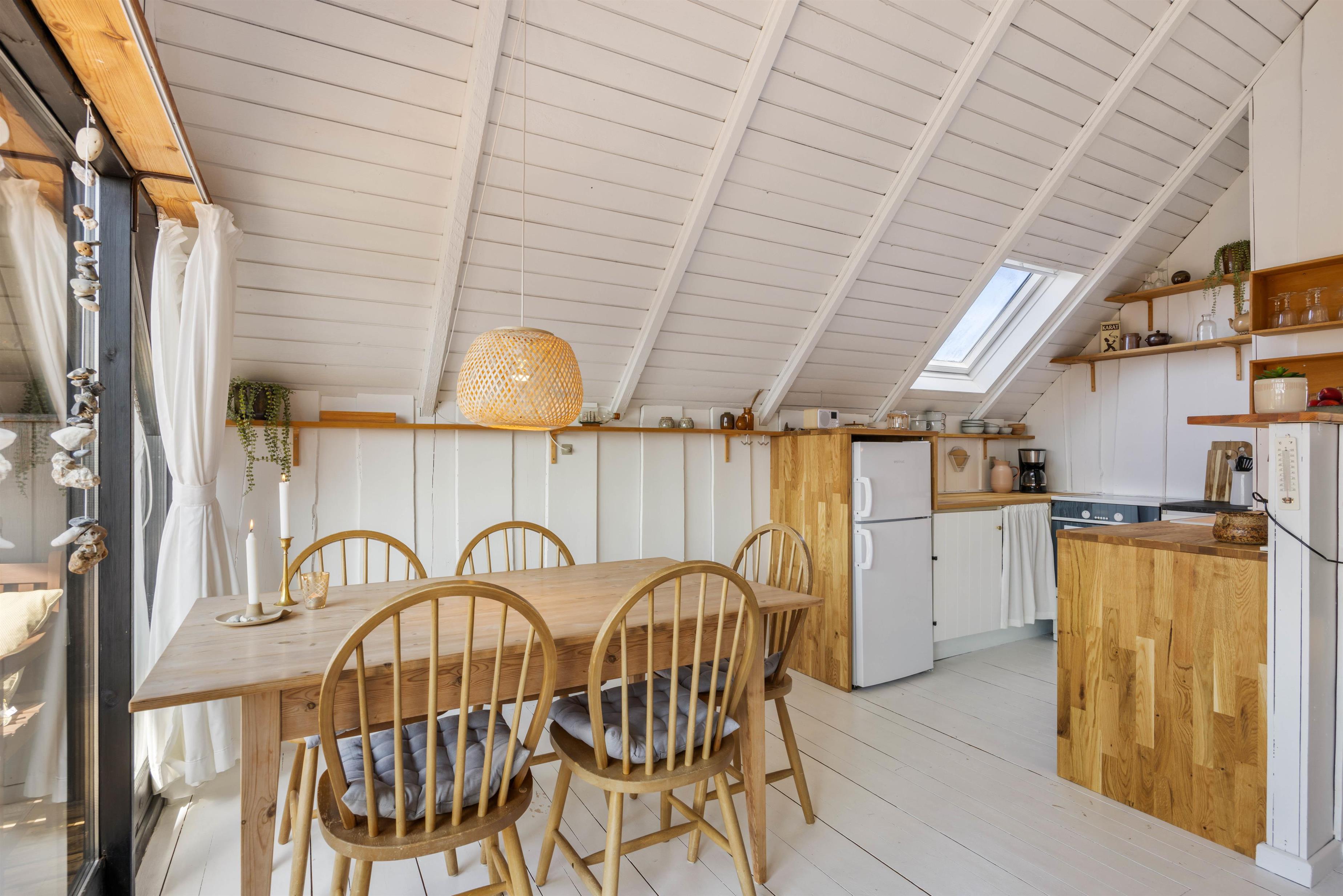This charming holiday home radiates warmth and cosiness. With its sloping ceilings, wooden floors, and carefully chosen furnishings, you'll feel at home straight away. Curl up on the comfortable sofa with your favourite book while the wood-burning stove crackles and keeps you warm. It's also perfect for a film night together.