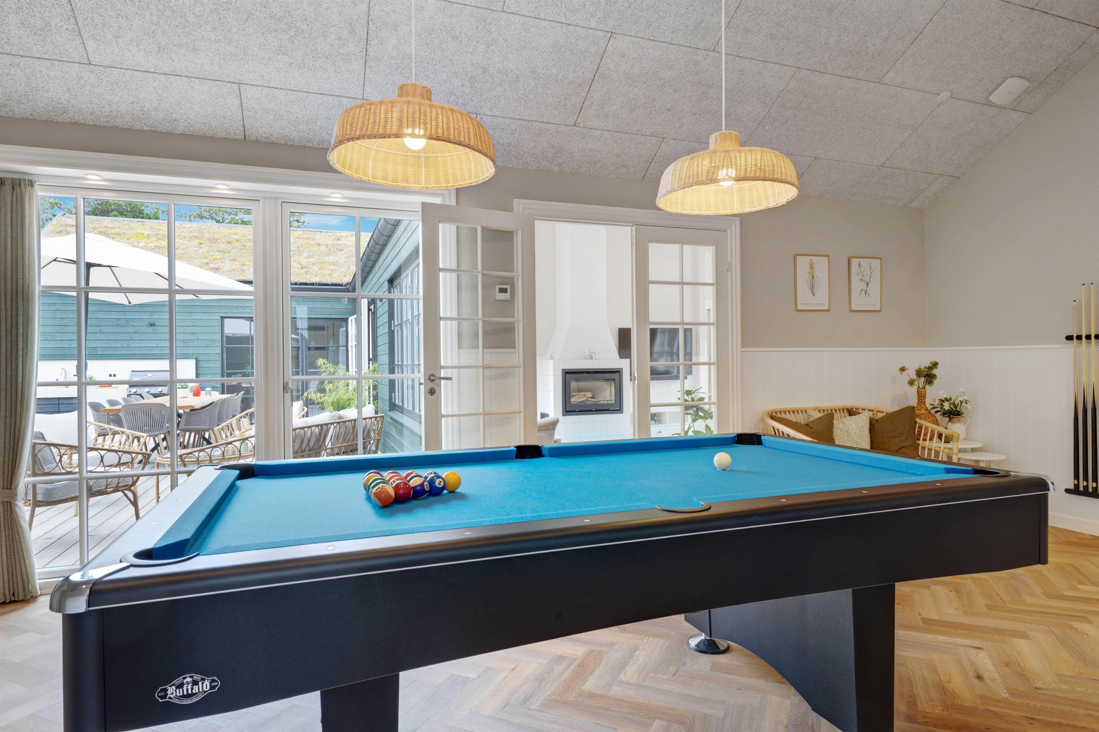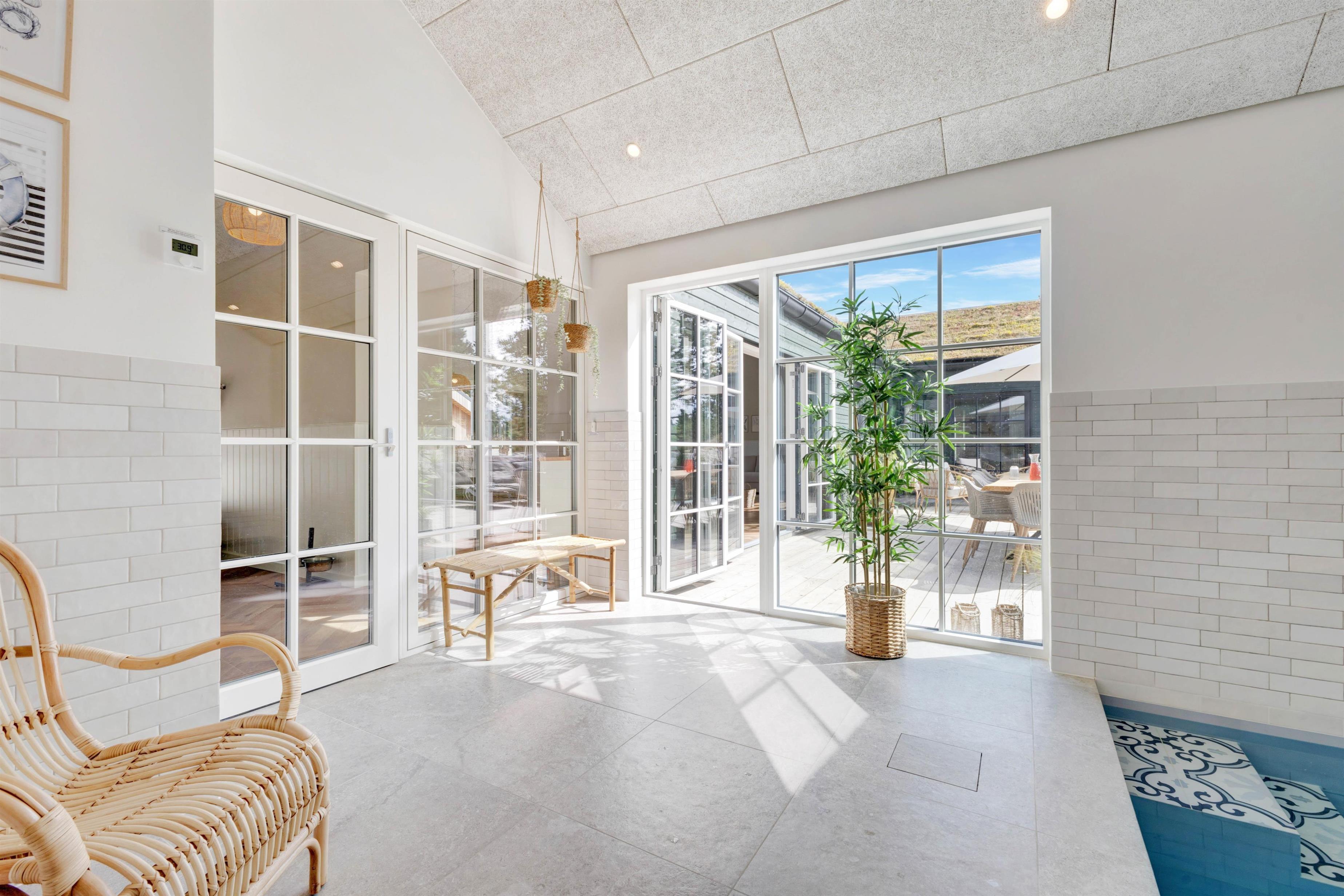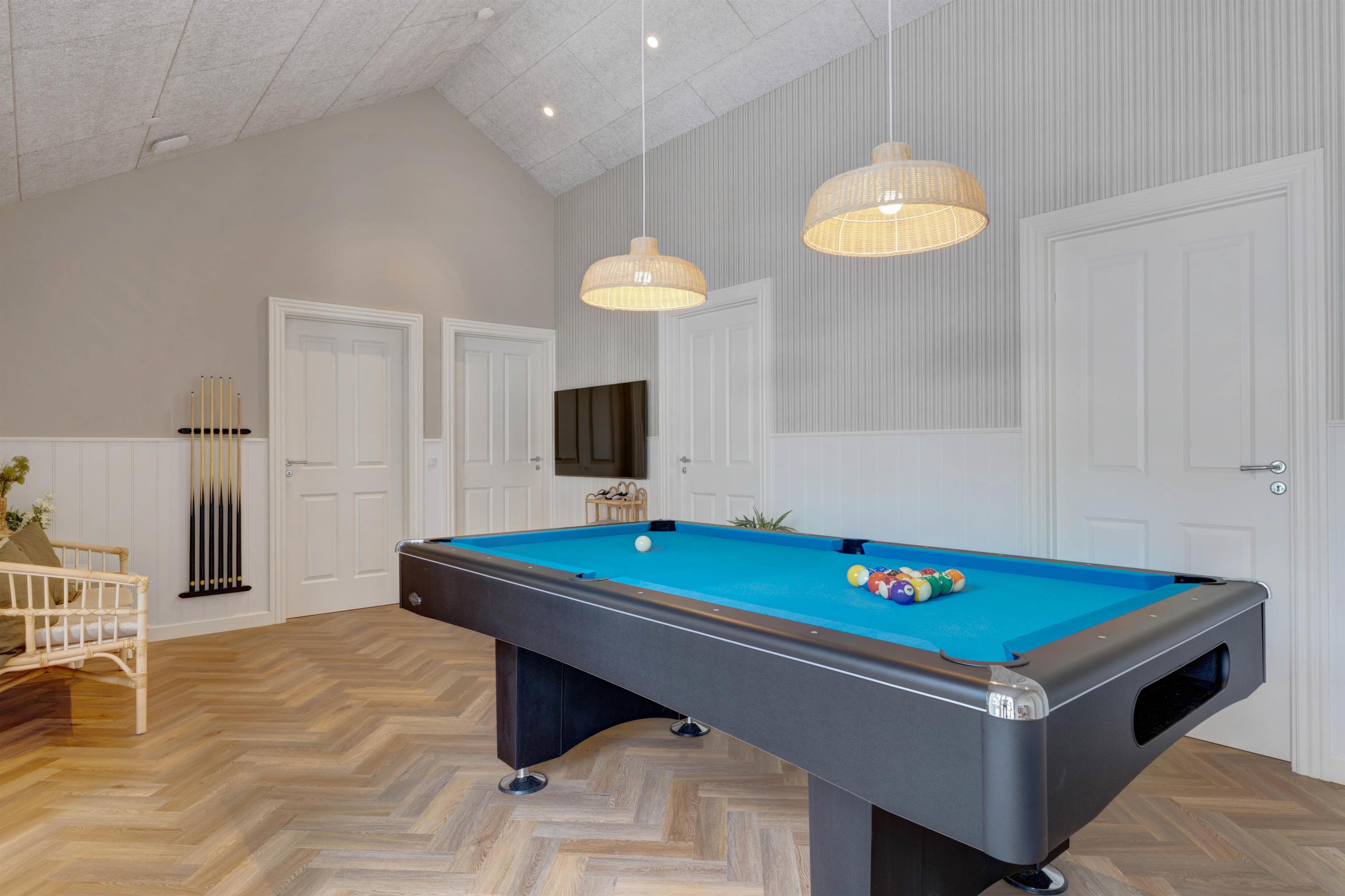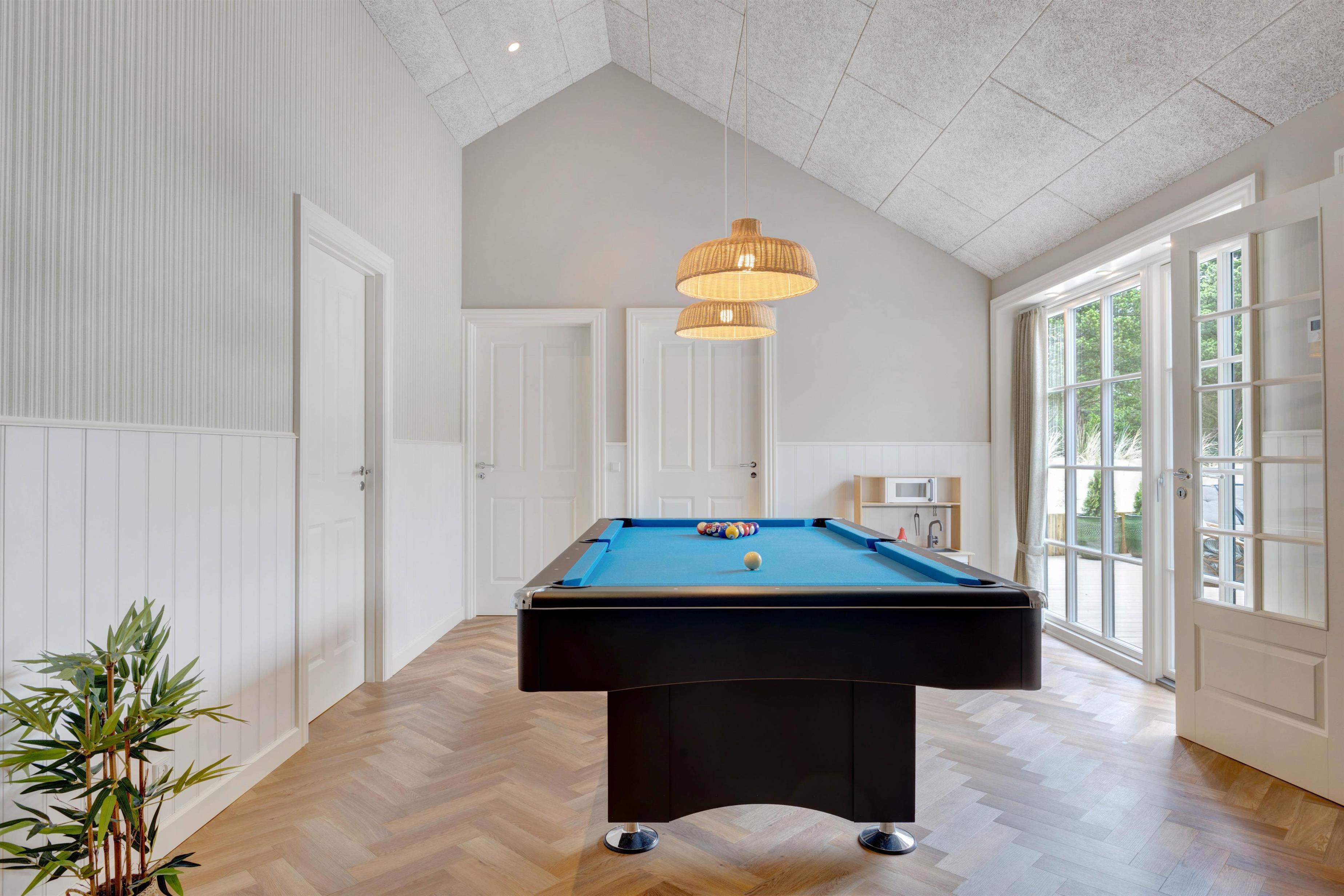 Located at Søren Gades Mark 16A, this fantastic luxury pool house accommodates up to 12 people and 2 dogs! Newly built in 2024, this stylishly furnished holiday home in Blåvand offers exceptional amenities including an indoor pool, outdoor hot tub, outdoor sauna, 3 bathrooms and a games area with pool table and table tennis. The holiday home also features a fireplace, efficient heat pump and an electric car charging point. Look forward to a truly tastefully decorated and luxurious holiday home on Denmark's west coast with 6 bedrooms!