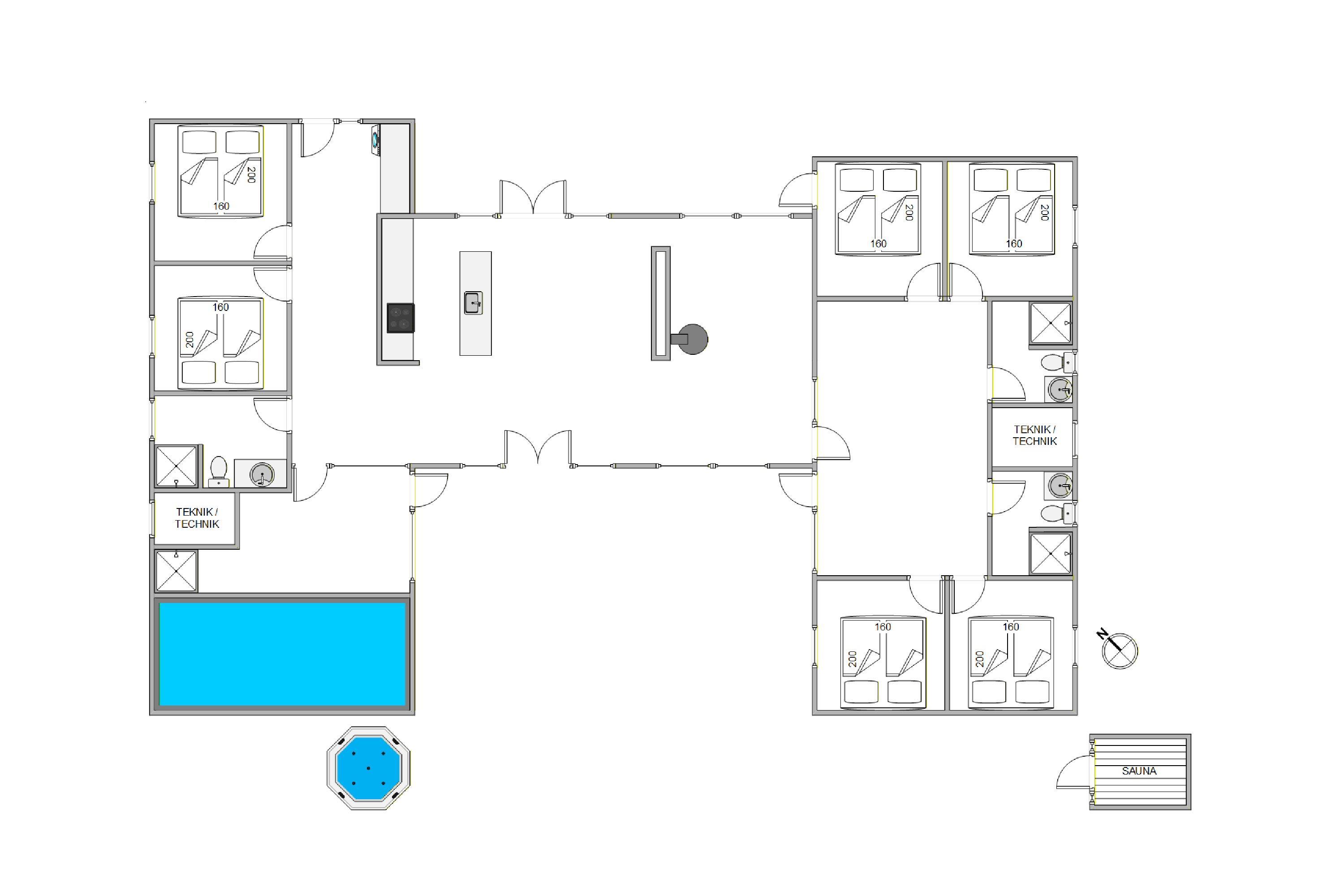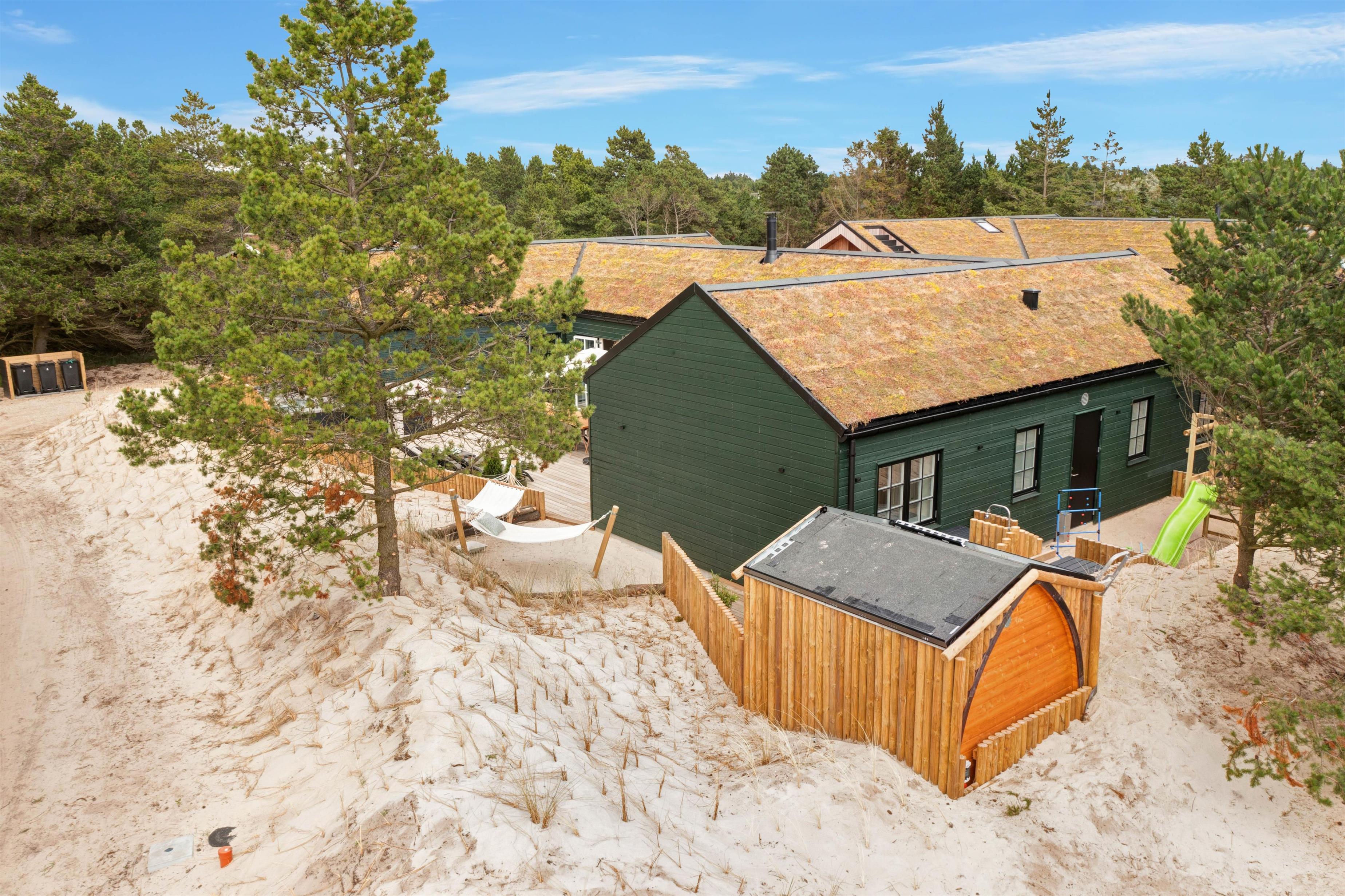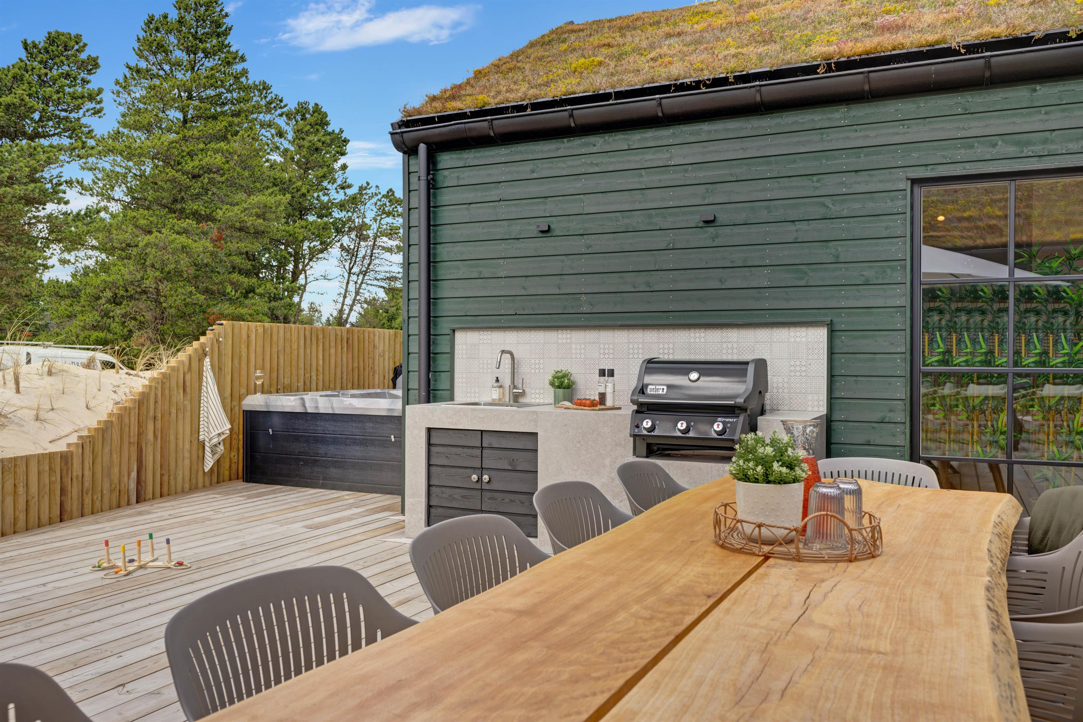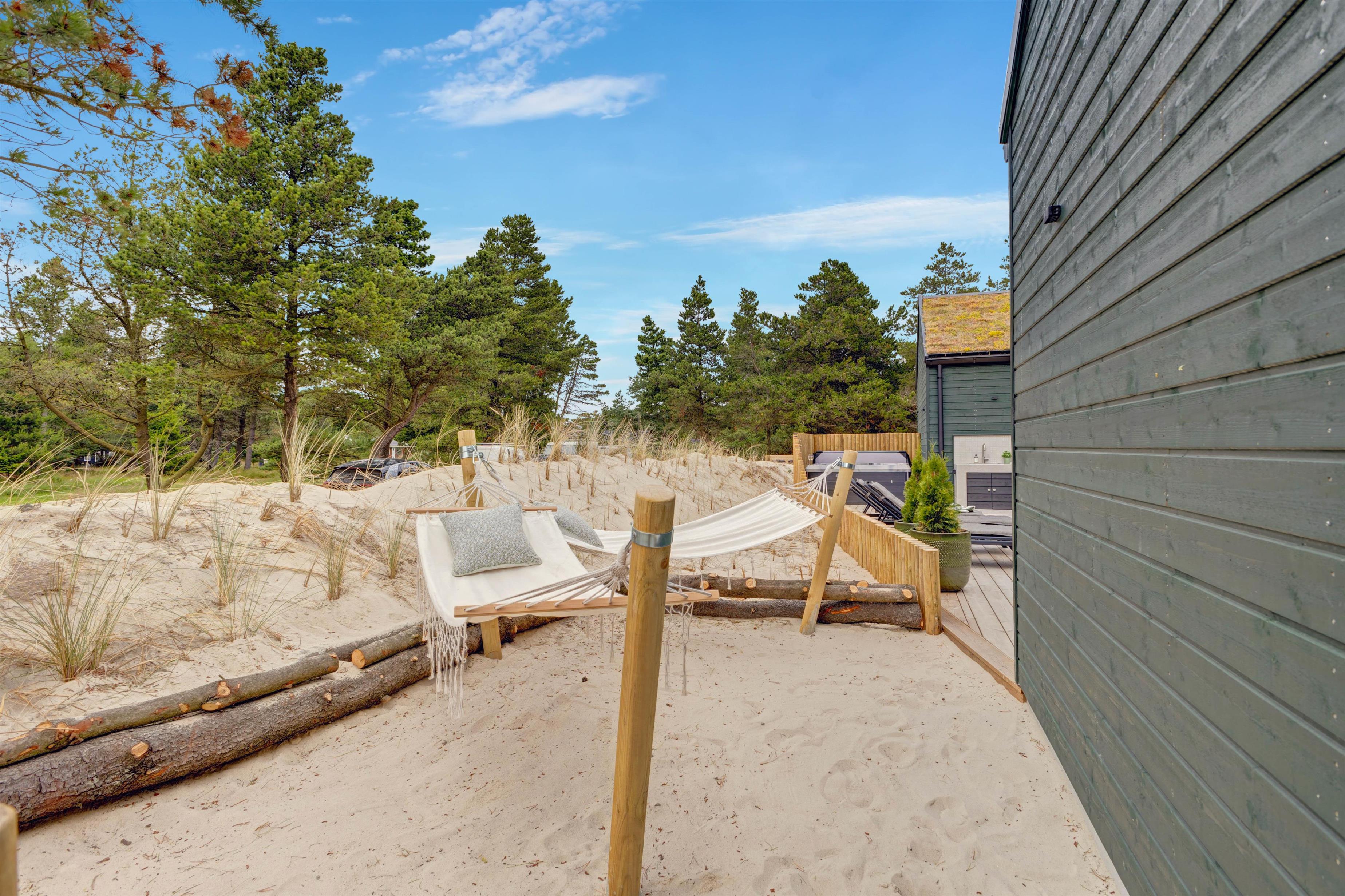 Located at Søren Gades Mark 16A, this fantastic luxury pool house accommodates up to 12 people and 2 dogs! Newly built in 2024, this stylishly furnished holiday home in Blåvand offers exceptional amenities including an indoor pool, outdoor hot tub, outdoor sauna, 3 bathrooms and a games area with pool table and table tennis. The holiday home also features a fireplace, efficient heat pump and an electric car charging point. Look forward to a truly tastefully decorated and luxurious holiday home on Denmark's west coast with 6 bedrooms!