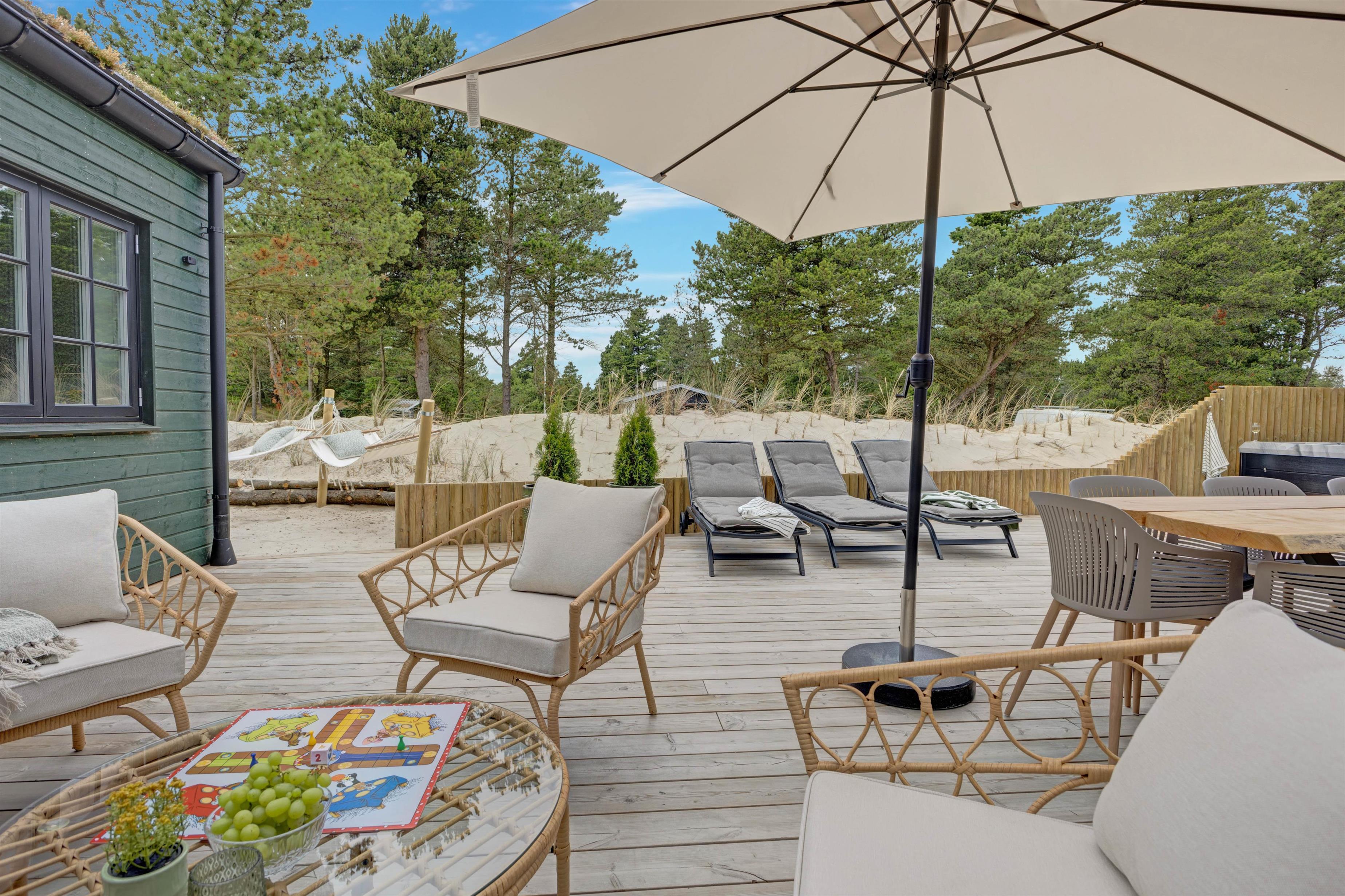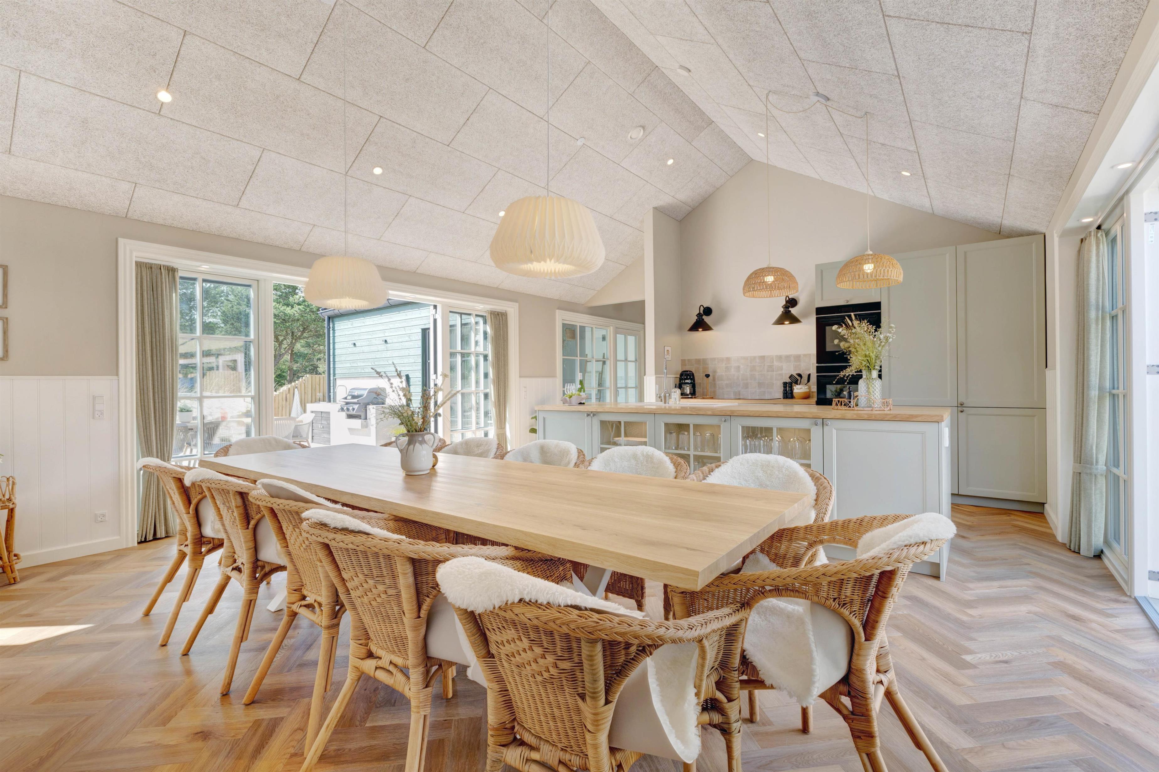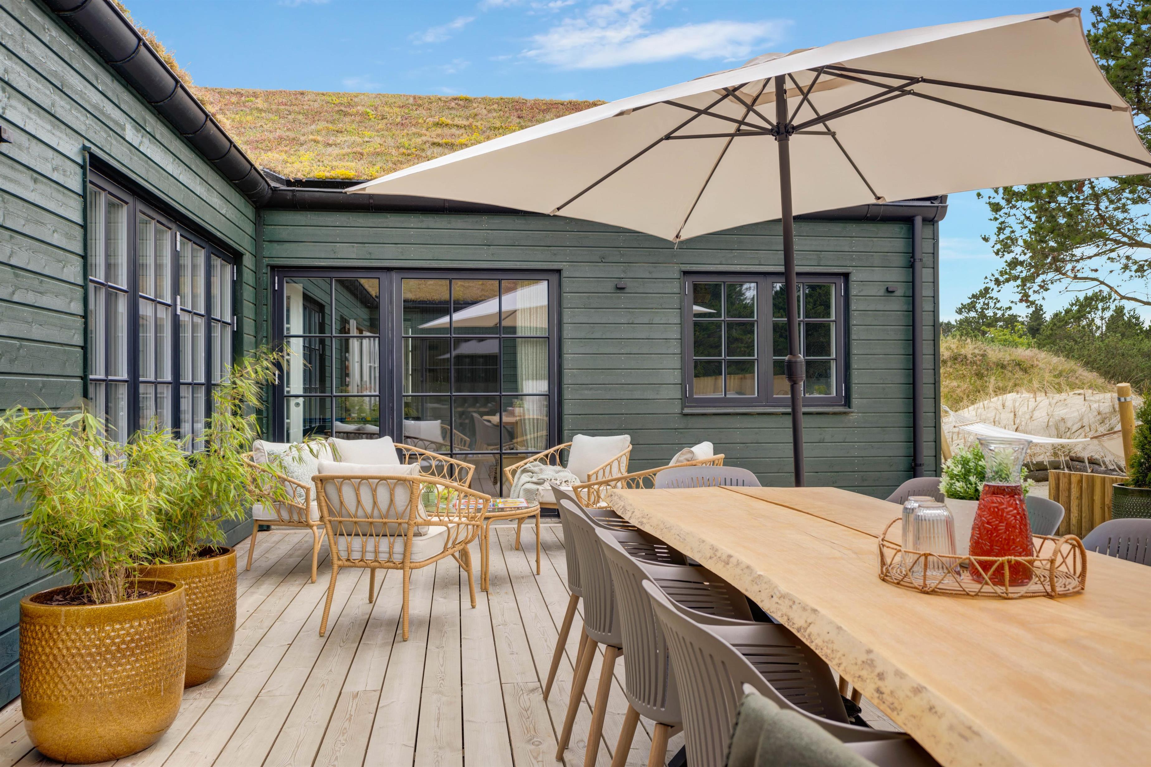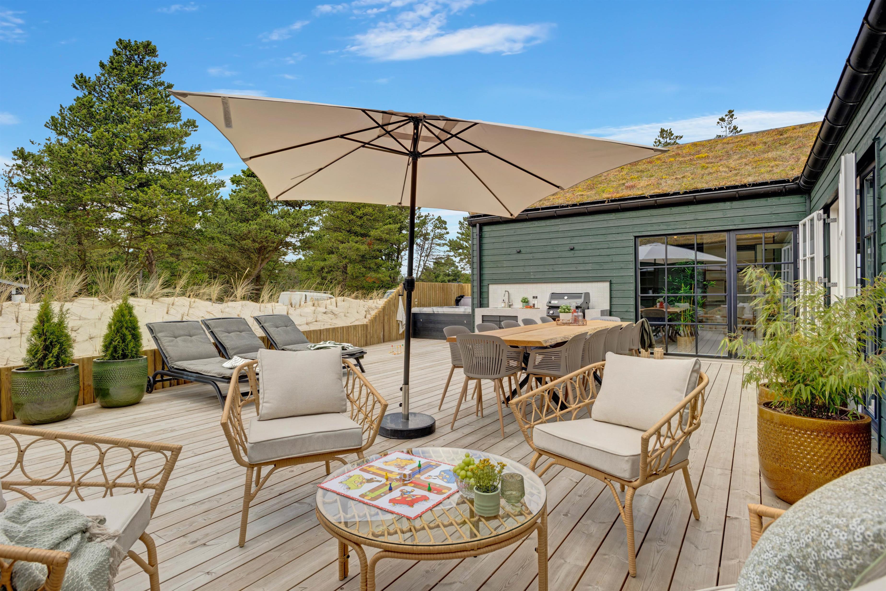 The holiday home offers 225 square metres of living space for up to 12 people. The holiday home welcomes up to 2 dogs, making it perfect for families with children, parents or best friends to spend wonderfully relaxing days with their four-legged friends at the popular Danish North Sea resort of Blåvand. The enclosed terrace is an added bonus - ideal for families with young children and dogs.