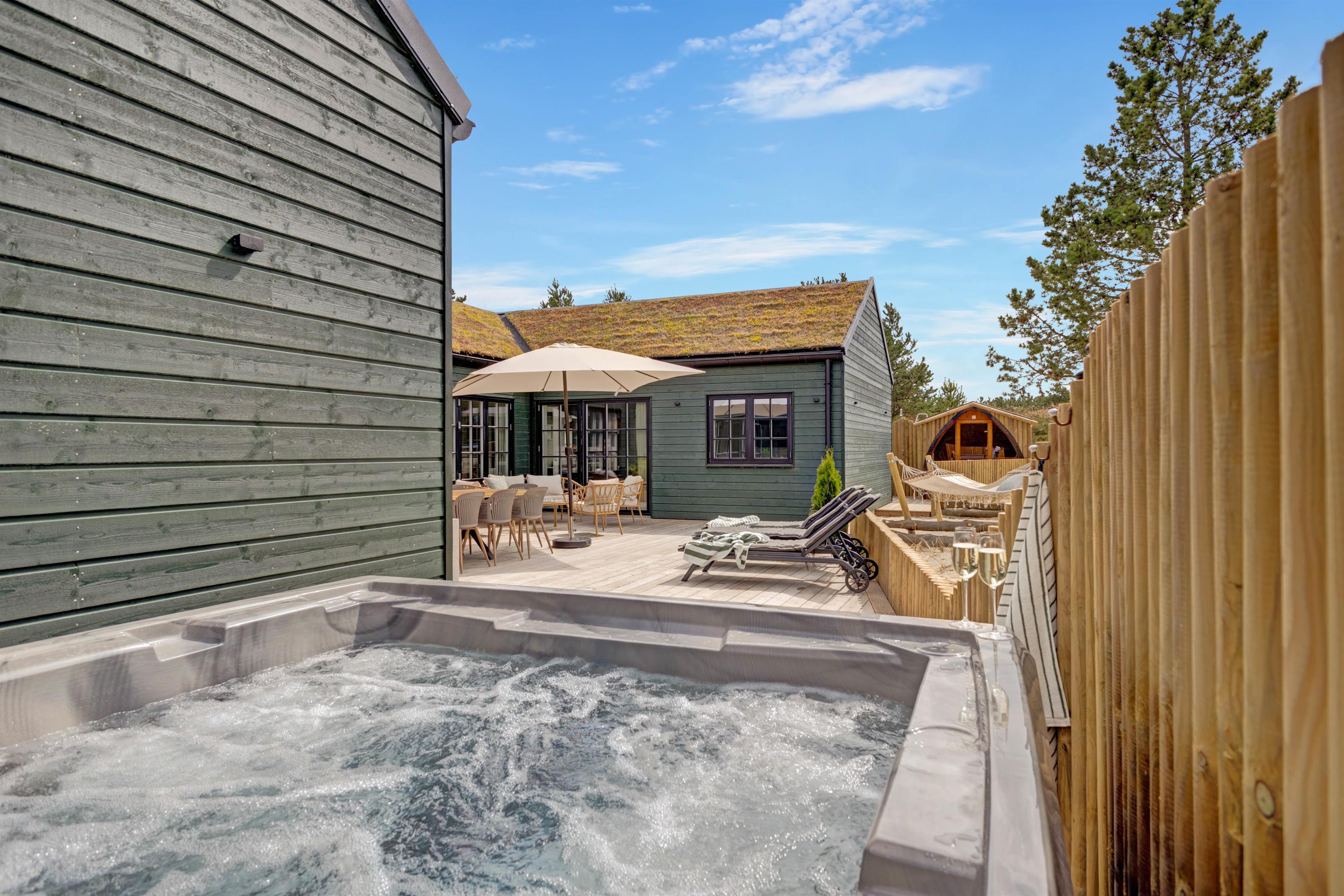 Pure relaxation at Søren Gades Mark 16A; Outdoor sauna, hot tub, pool table & table tennis