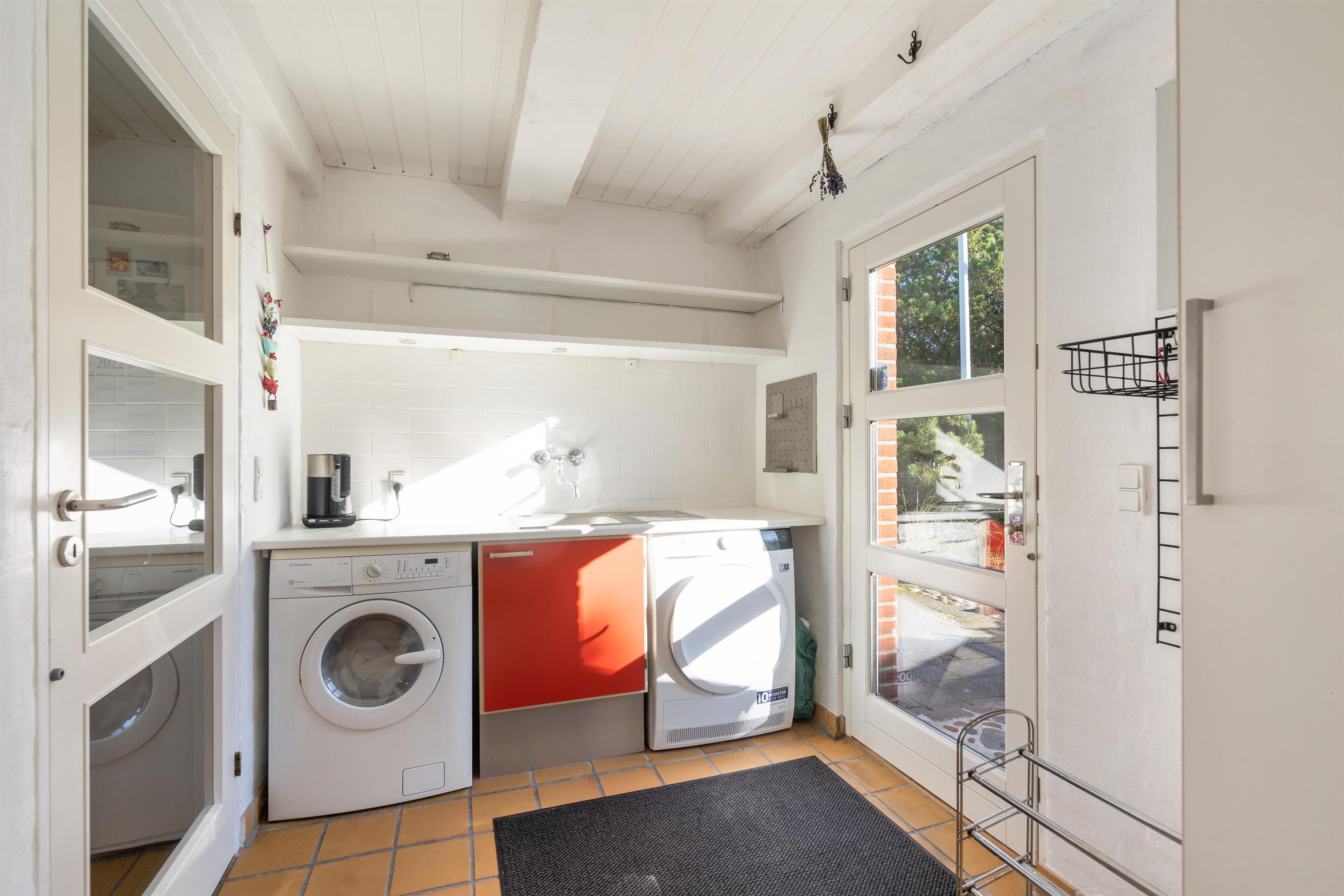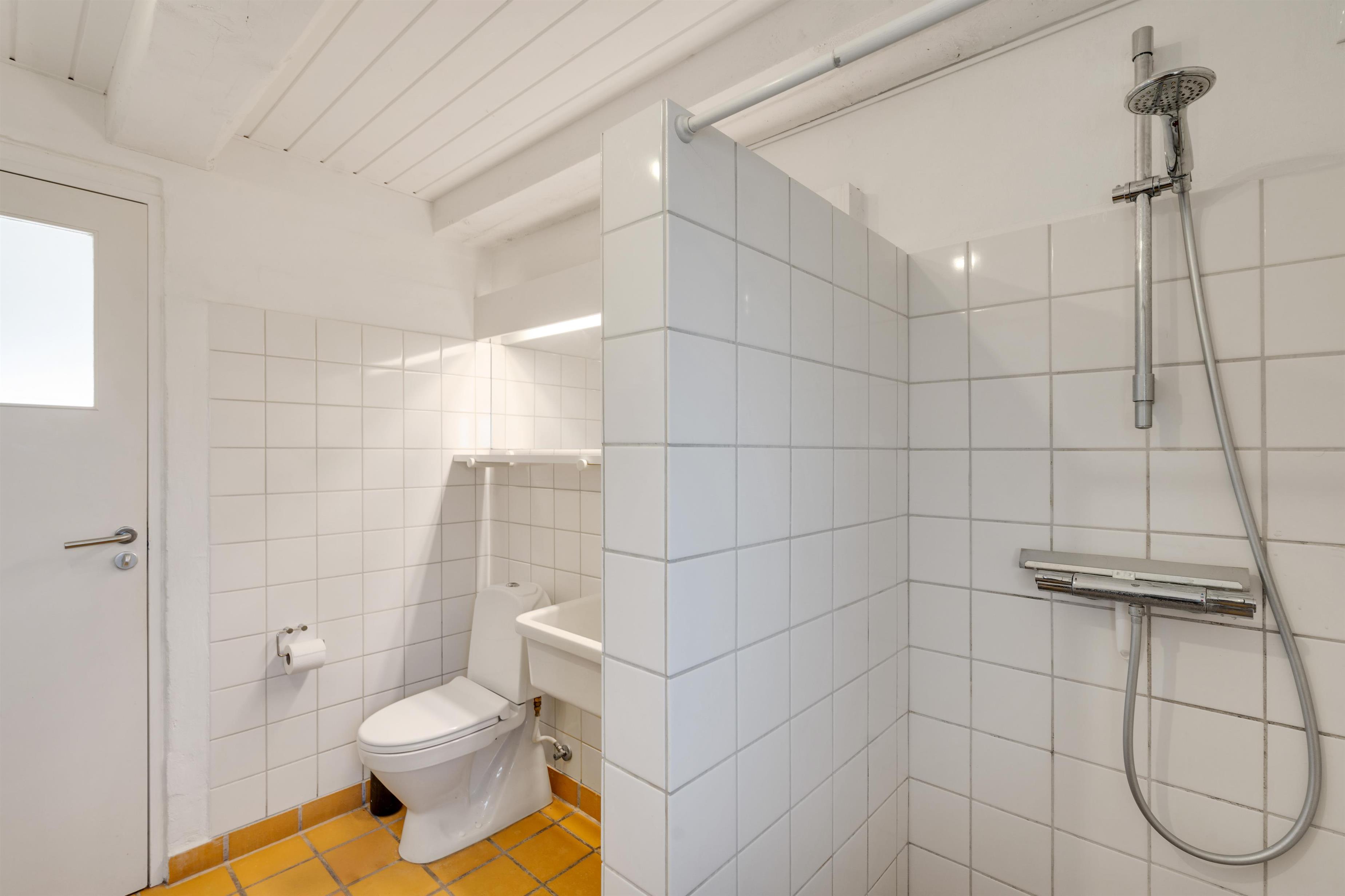 The first floor features two bedrooms: one with a double bed and single bed, the other with two single beds. The sloping ceilings and exposed beams create a particularly cosy atmosphere. You're sure to sleep well, lulled by the gentle beam of the Blåvand lighthouse.
