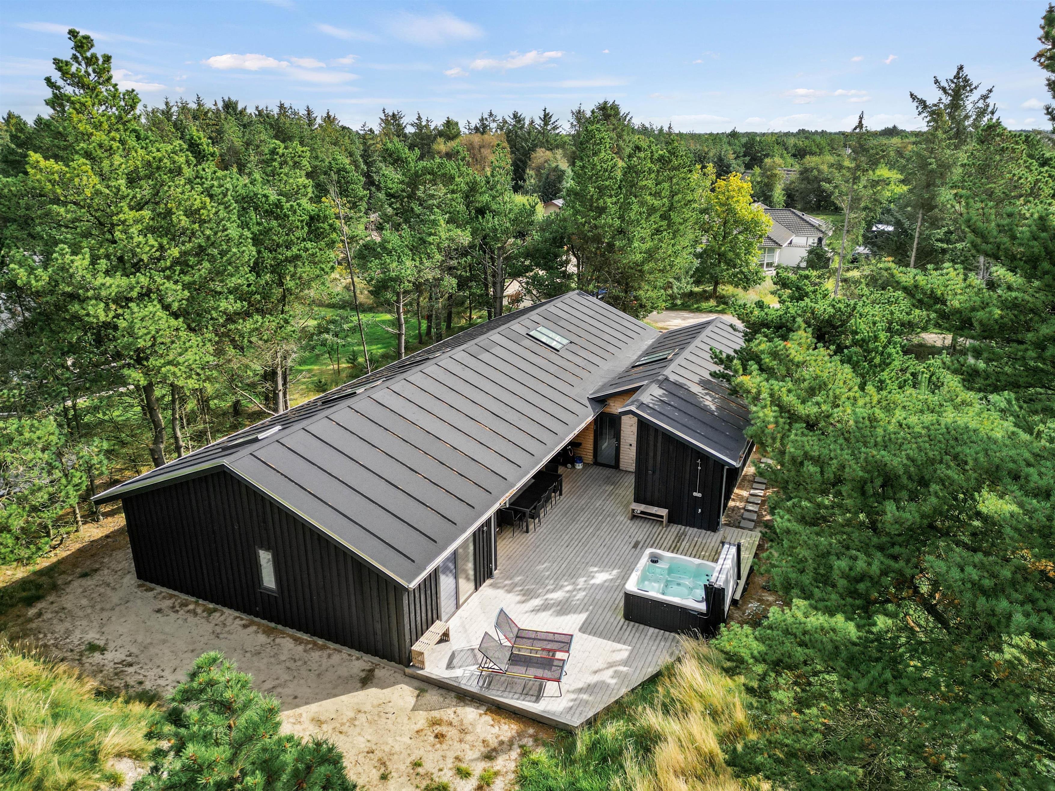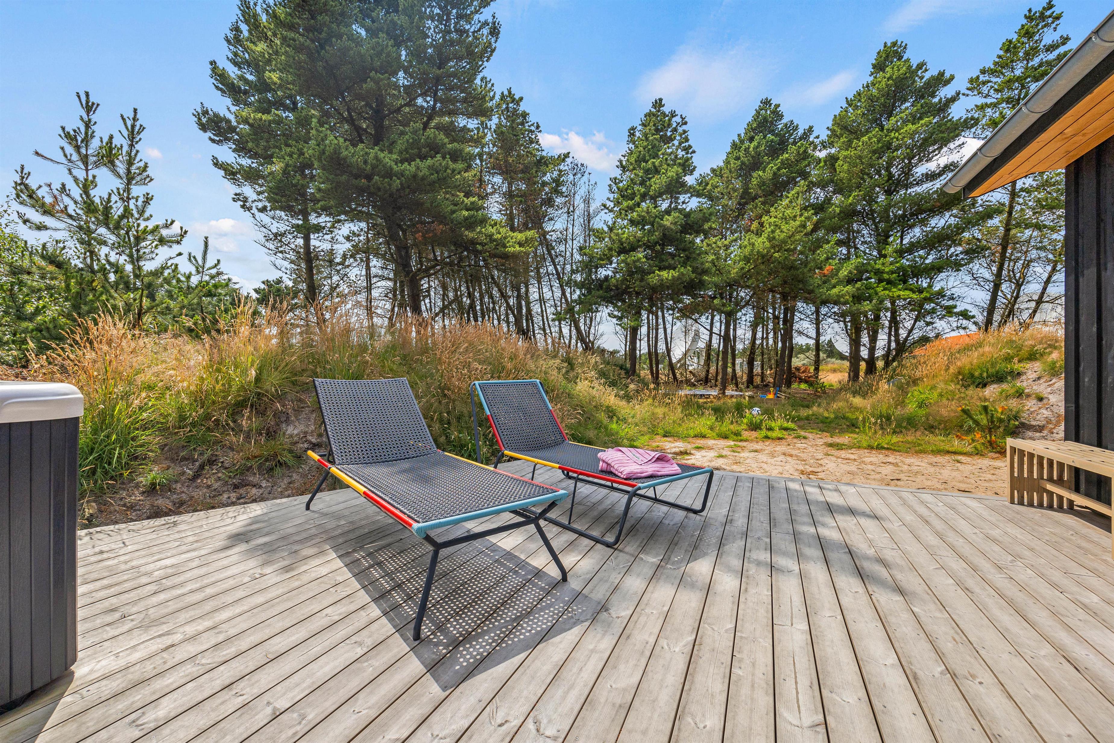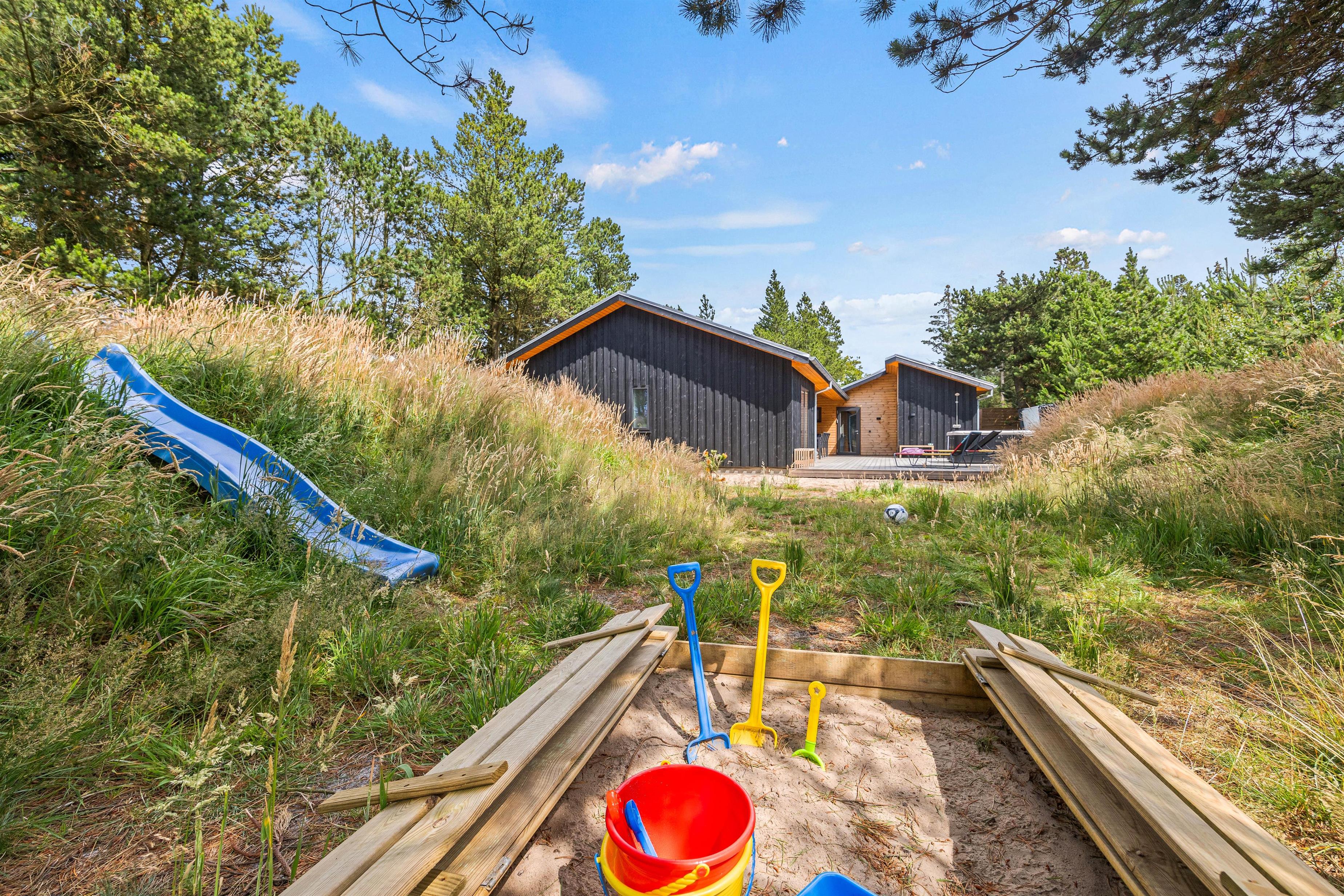 Located at Peter Malersvej 25 in Blåvand, this modern activity-focused holiday home offers a luxurious break in fantastic surroundings. Built in 2023, it provides everything you could wish for. Accommodating 10 people and one dog, it's ideal for two families with children. The outdoor area is superb, with children sure to enjoy hours of fun on the trampoline, swing set, and in the sandpit.