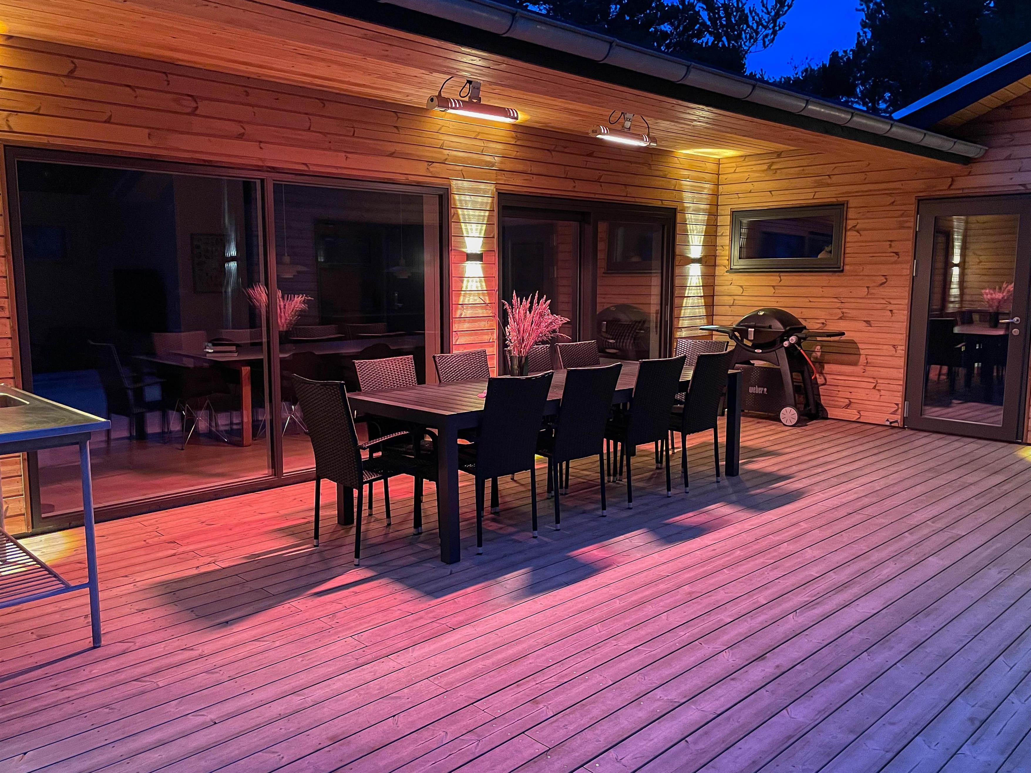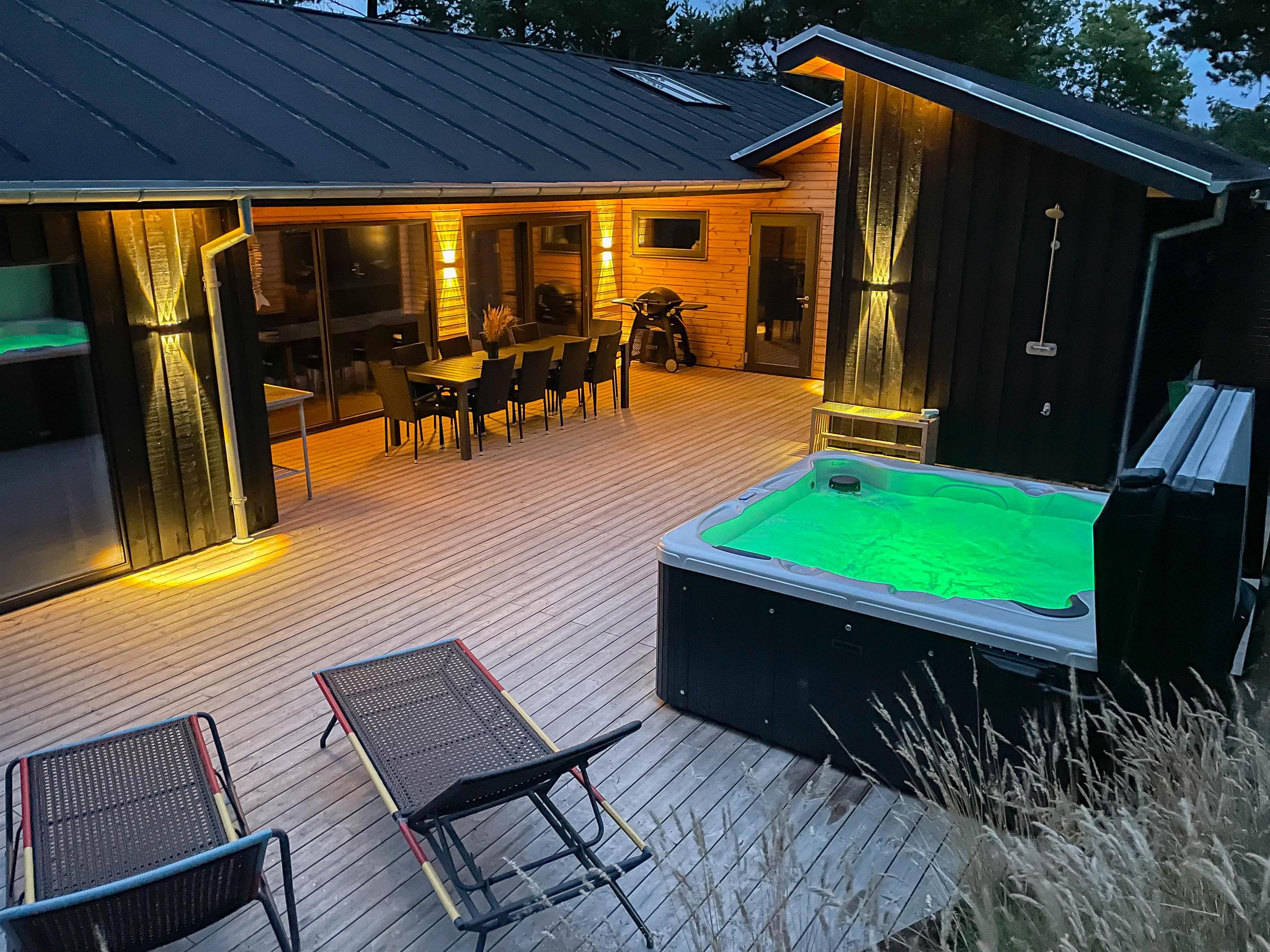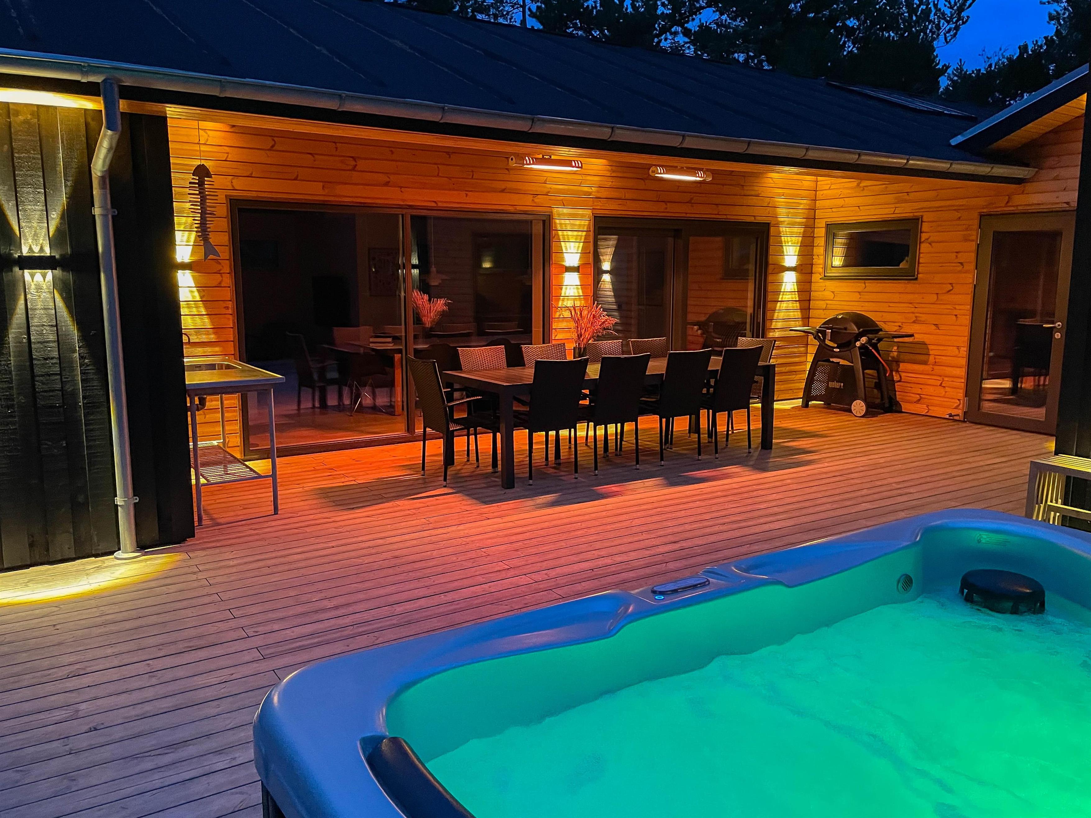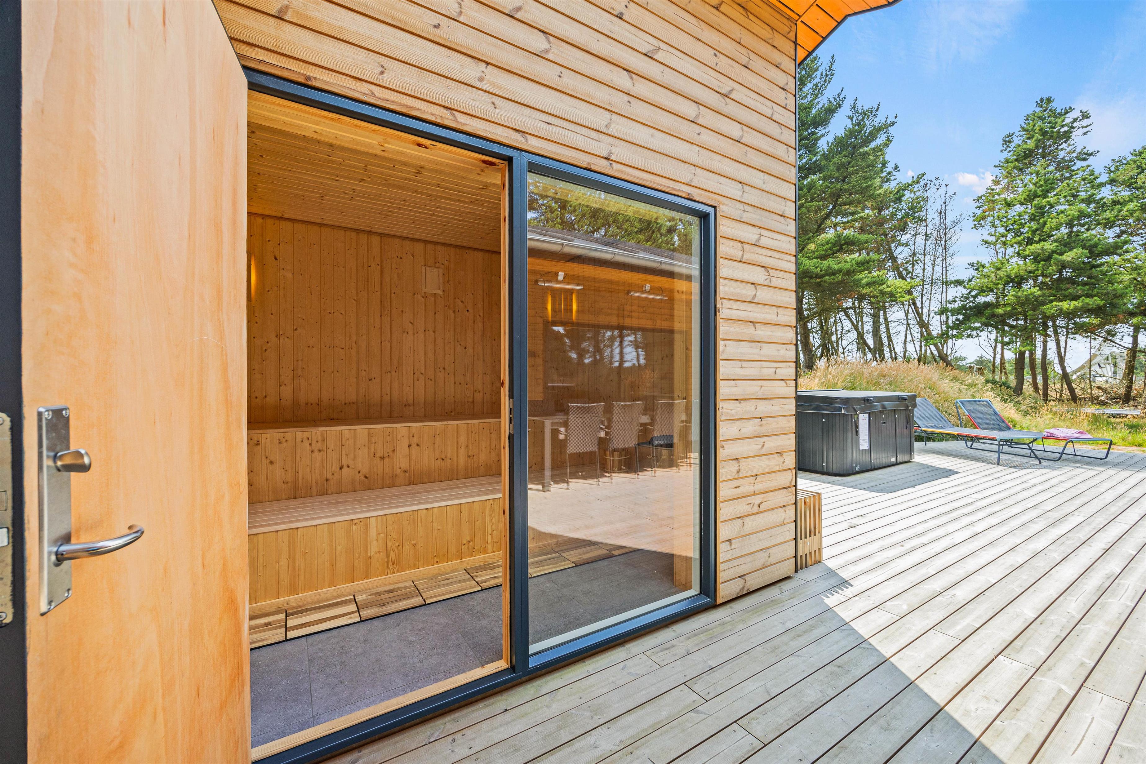 The family room and pool room lead onto the holiday home's terrace, which is partially covered. Outside, you'll find an outdoor hot tub perfect for stargazing, plus an outdoor sauna and shower - particularly convenient after a refreshing dip in the North Sea, just 500 yards (800 metres) away. The outdoor shower is available from 1st April to 31st October.