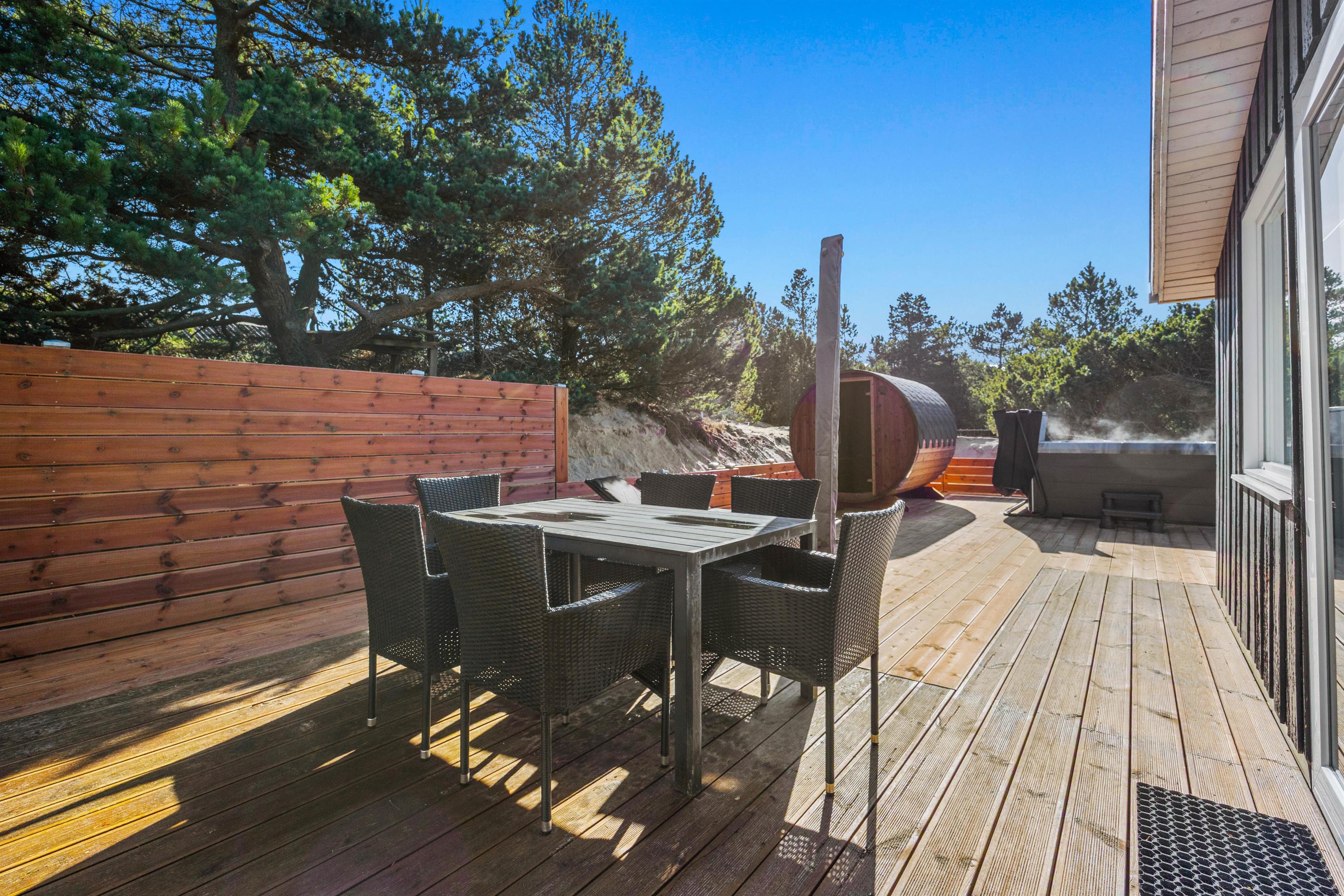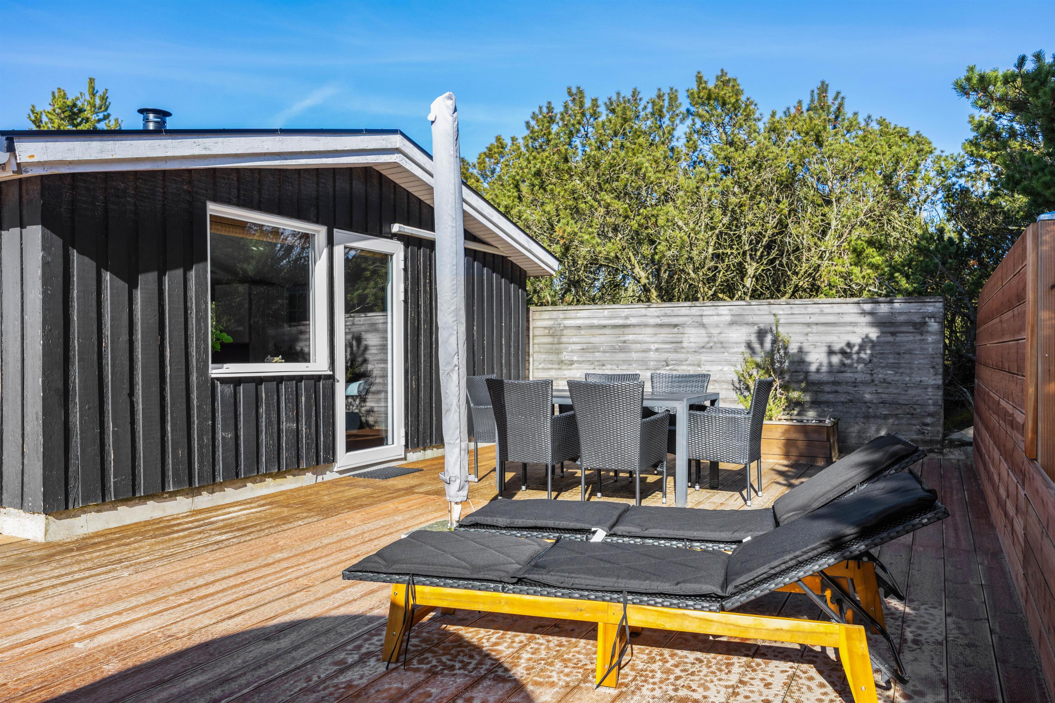 The holiday home in Blåvand is set on an impressive 3,000 m² natural plot, inviting exploration and relaxation. On the open terrace or the sheltered area, you can enjoy the sun and spend leisurely hours outdoors. Children can play on the swing or in the sandbox while you enjoy peace and quiet on the garden furniture, and you can finish the day with delicious meals from the house’s gas grill.
