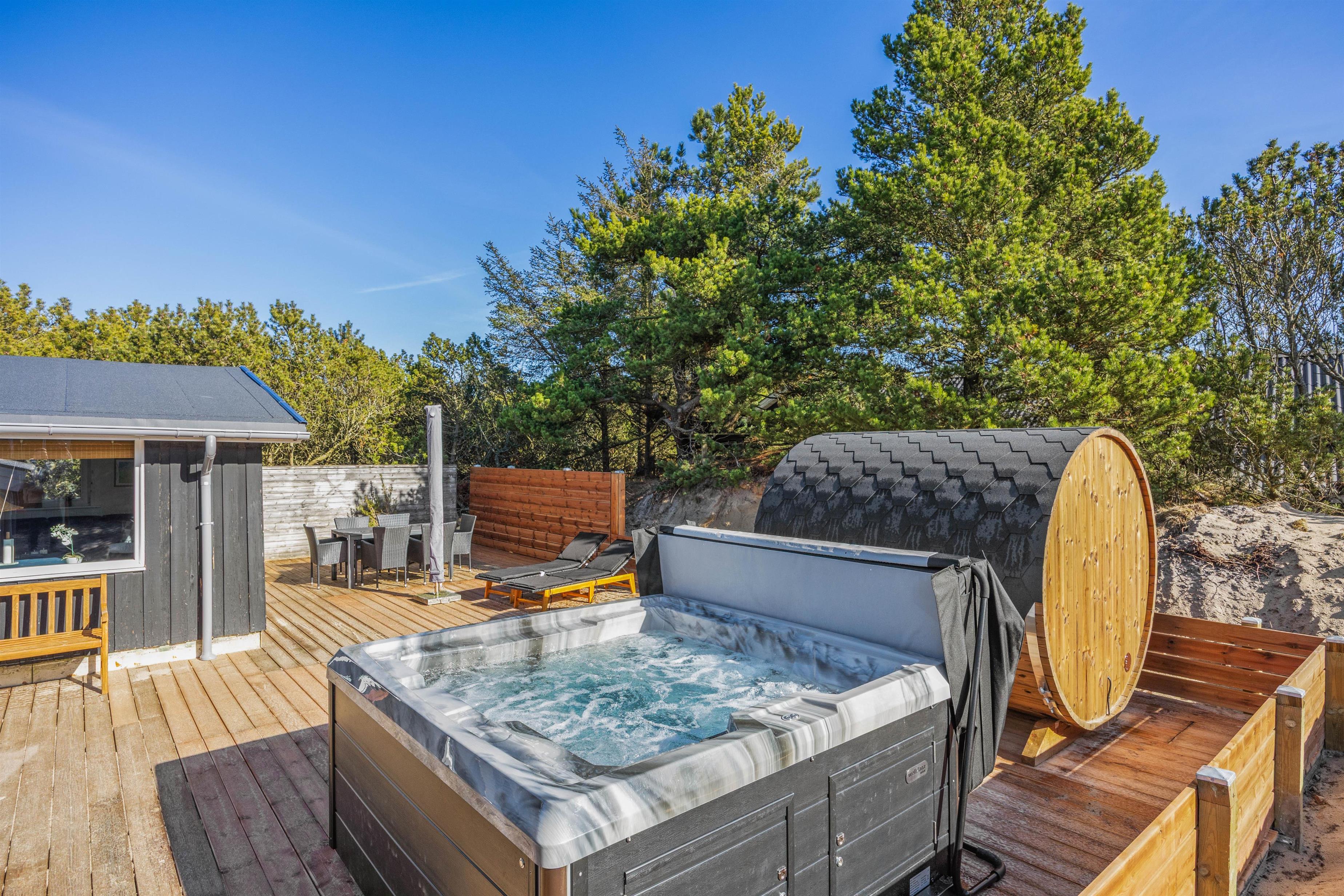 A special highlight is the outdoor hot tub and barrel-shaped sauna, offering a true wellness experience right at your doorstep. Here, you can warm up, relax, and leave everyday life behind.