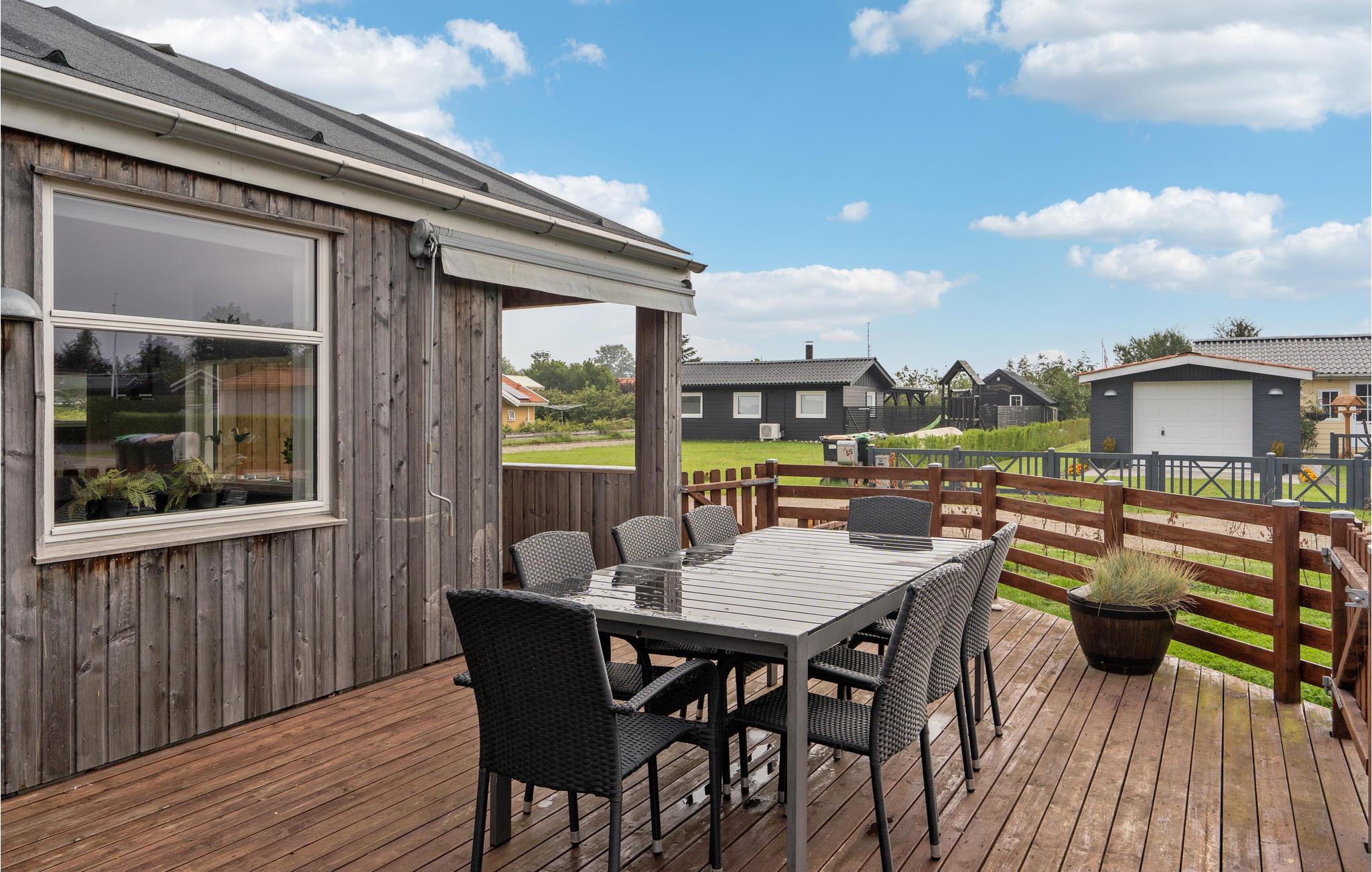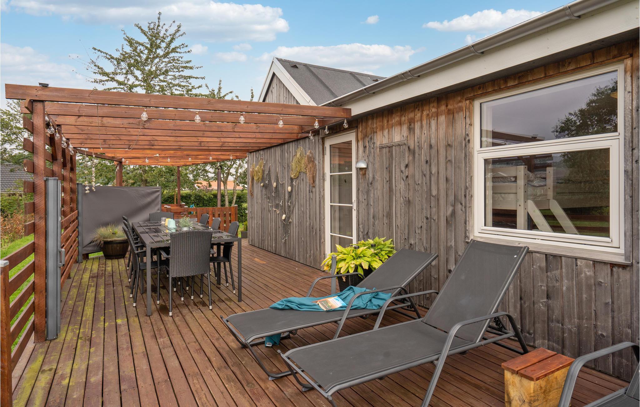 Ein sehr schönes Haus mit jeder Menge Wellness und Aktivitäten für Urlauber, die das Leben genießen. Das Ferienhaus bietet 10 Personen Platz in vier Schlafzimmern und einem Alkoven. Es ist von einer großen Terrasse umgeben, wo Sie sich aufhalten und die herrlichen Sommertage genießen können. Es gibt eine schattenspendende Markise, falls Sie es brauchen, und in der Badetonne hat das Wetter gar keine Bedeutung, hier sitzen Sie in 40 °C warmem Wasser und können einfach genießen. Im Freien aktiv sein können Sie auf dem großen Grundstück mit Spielgeräten wie Trampolin, Schaukel und Sandkasten. Im Inneren ist das Haus hell und offen eingerichtet, mit großem Wohnzimmer und Küche, die miteinander verbunden sind. Hier gibt es auch Platz für Aktivitäten mit Kicker. Der schöne Sandstrand von Diernæs ist zu Fuß vom Haus zu erreichen, dort können Sie in das saubere Wasser eintauchen. Nicht weit davon liegt der Slivsø, Süderjütlands drittgrößter See. Dort leben heute ca. 180 Vogelarten, u.a. Eisvogel und Seeadler. Perfekt für Angler: der See beheimatet Hechte, Barsche und Forellen. Diernæs Strand ist ein sehr familienfreundliches Gebiet mit ruhigem Wasser hinaus zum Kleinen Belt. Haderslev ganz in der Nähe bietet eine charmante Altstadt mit einer imposanten Domkirche. Weiter südlich erreichen Sie Gråsten Slot, wo sich im Sommer die königliche Familie versammelt.