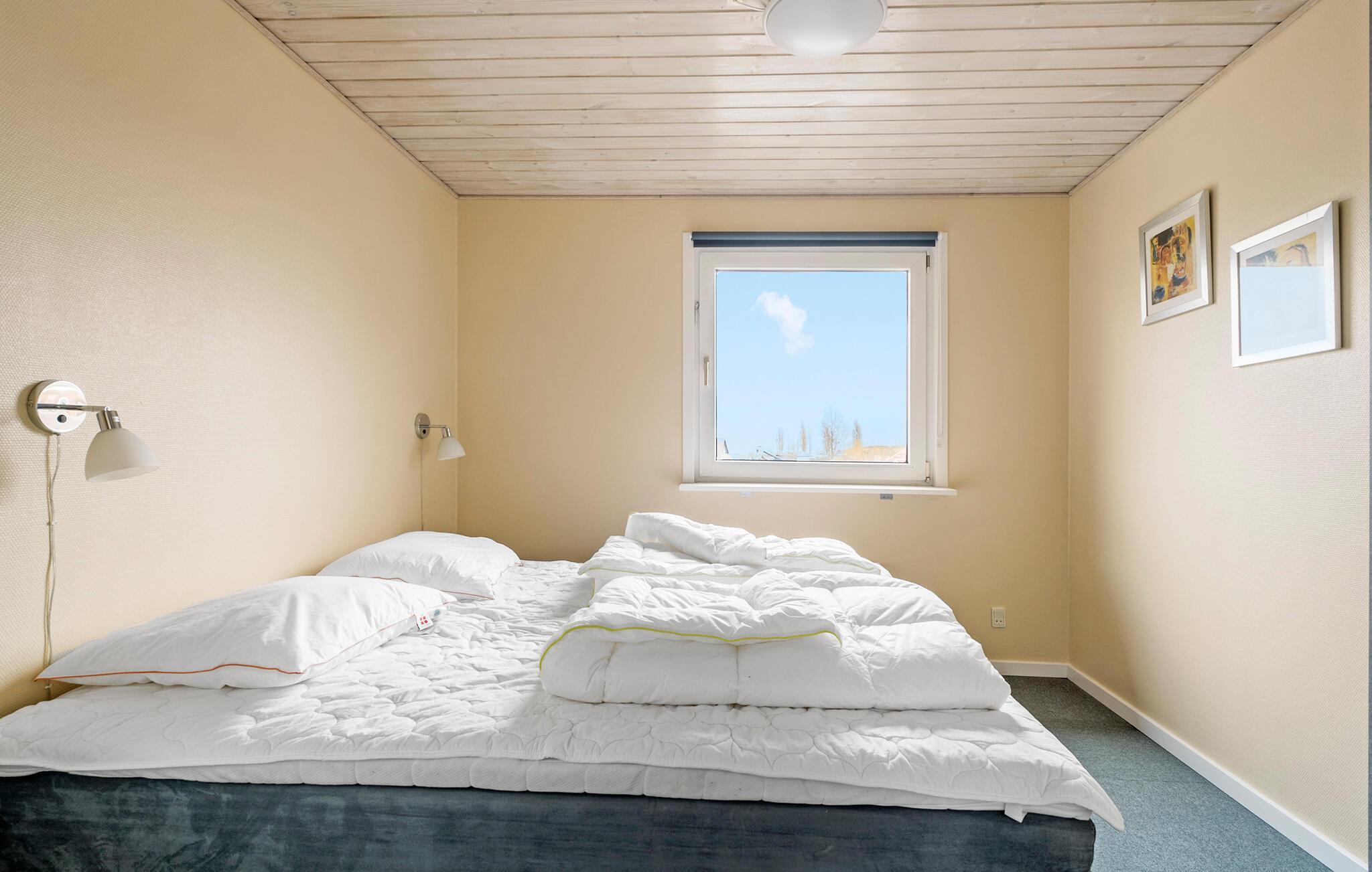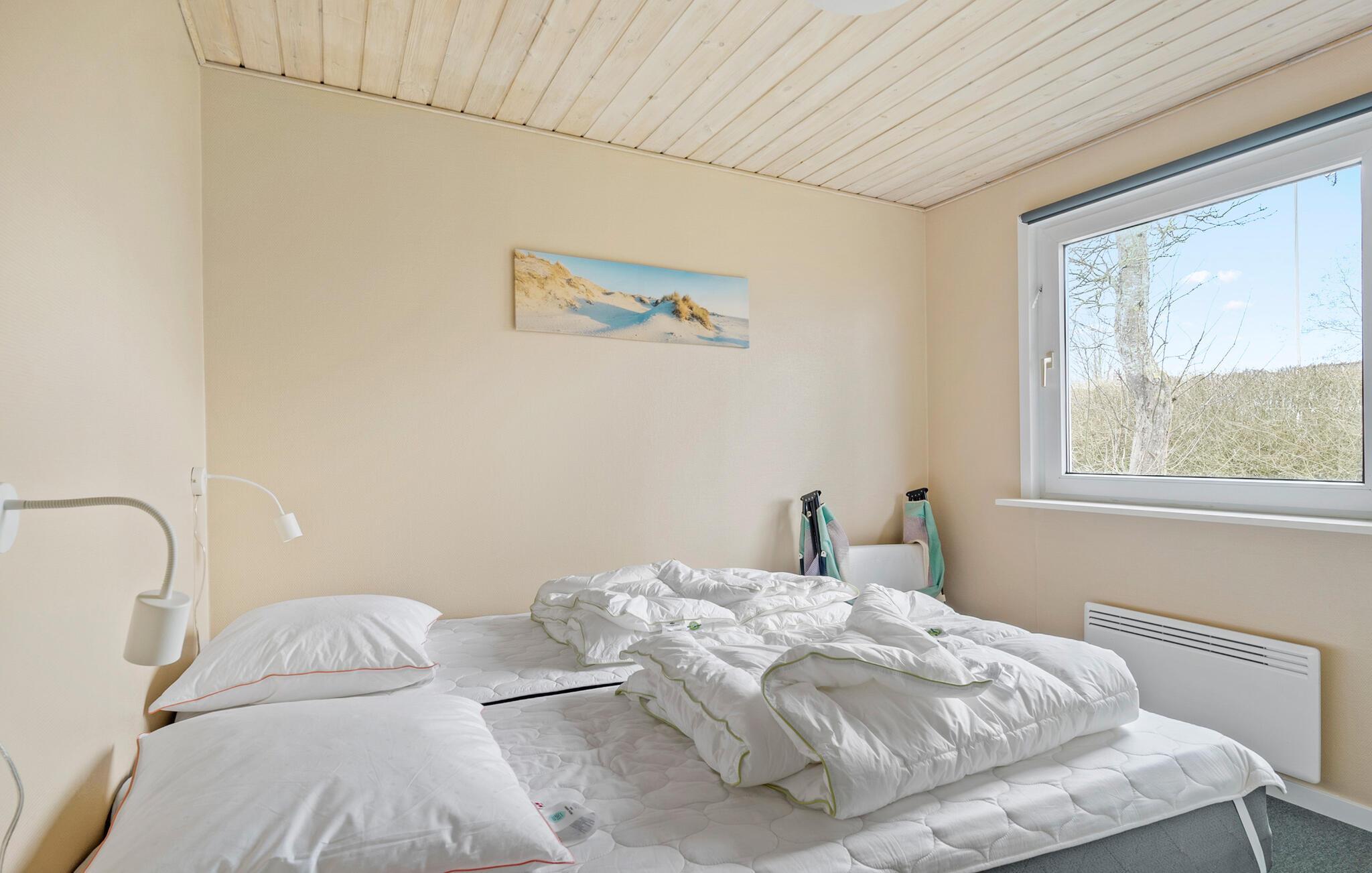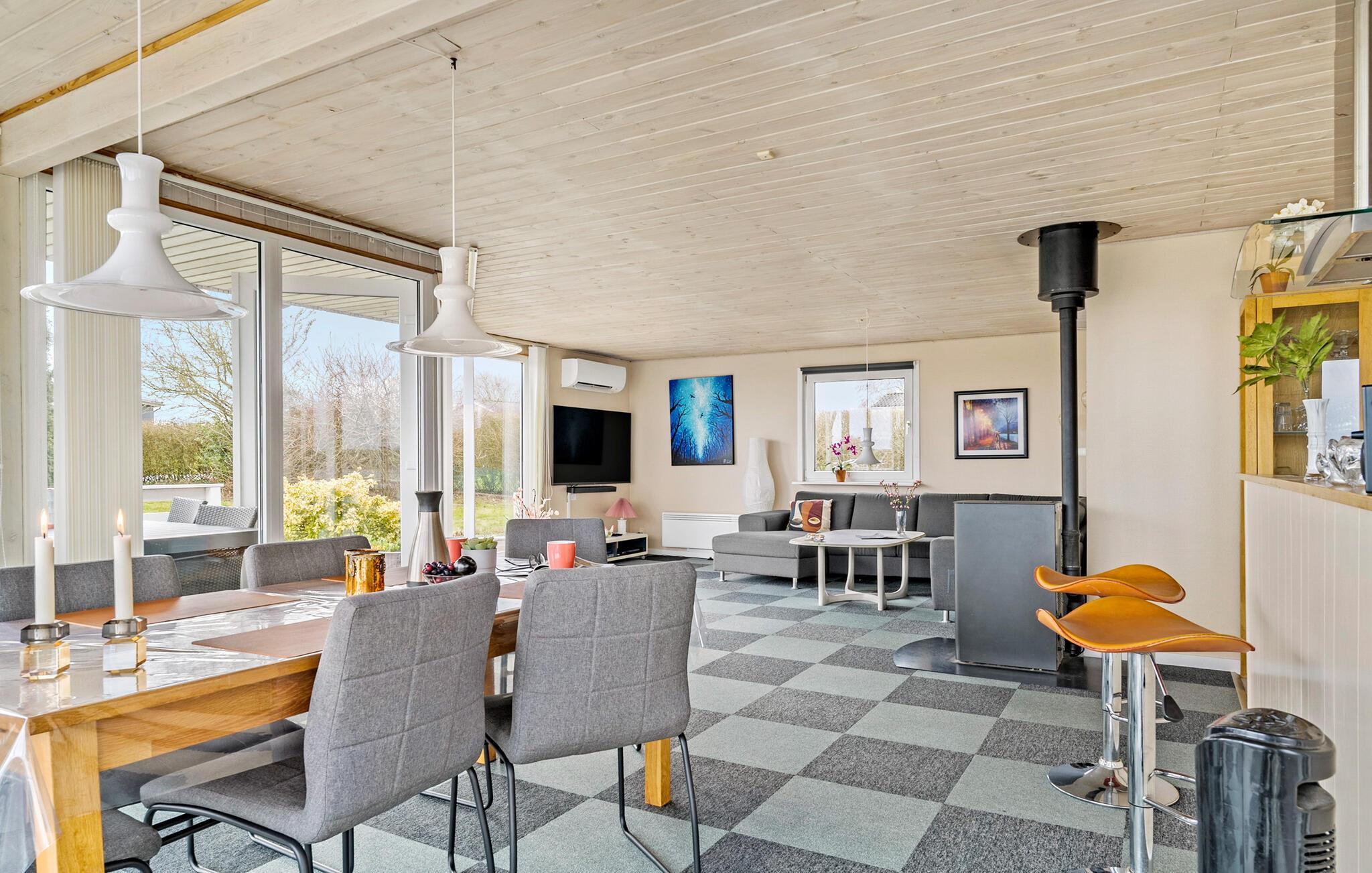 Durch die hohe Lage des Ferienhauses haben Sie eine schöne Aussicht nach Vikær Strand. Genießen Sie die Aussicht von diesem schönen Ferienhaus auf das Wasser vom Inneren und seiner teilweise überdachten Terrasse. Von der Wohnküche kommen Sie direkt auf das Terrassenareal und weiter in den Garten. Im Haus erwarten Sie auch schöne Schlafzimmer und ein großes Badezimmer. Auch im Garten werden Sie sich gut entfalten können. Genießen Sie auch denen einen oder anderen Grillabend. Die Heizung des Hauses ist elektrisch, jedoch die primäre Wärmequelle ist ein Holzpelletsofen im Wohnbereich (Pellets können im Haus gekauft werden). Die Garage ist verschlossen und steht Ihnen nicht zur Verfügung. Nicht weit vom Ort liegt der große See Slivsø, ein beliebter Sammelplatz für allerlei Vogelarten von Eisvogel bis Seeadler.