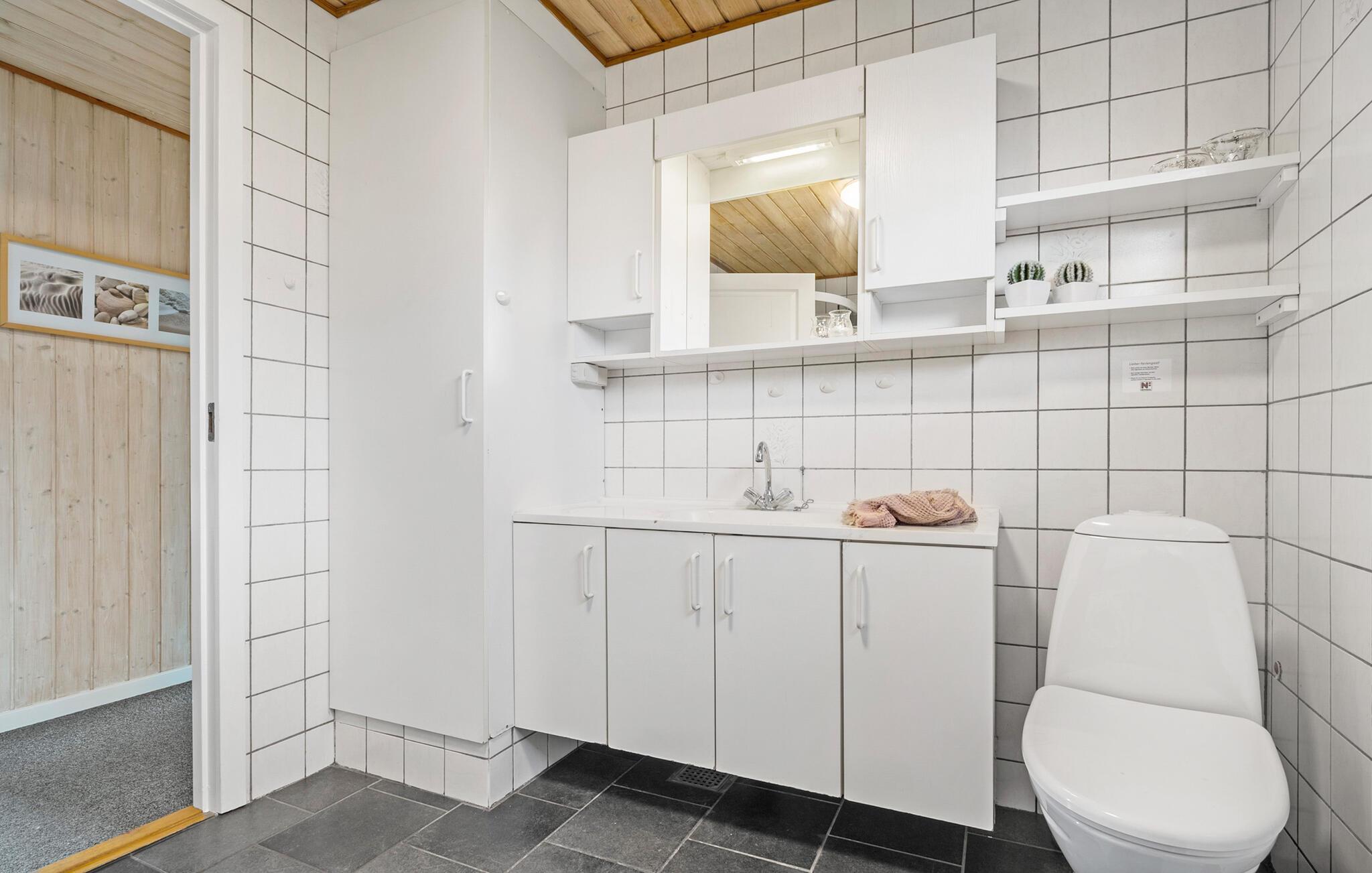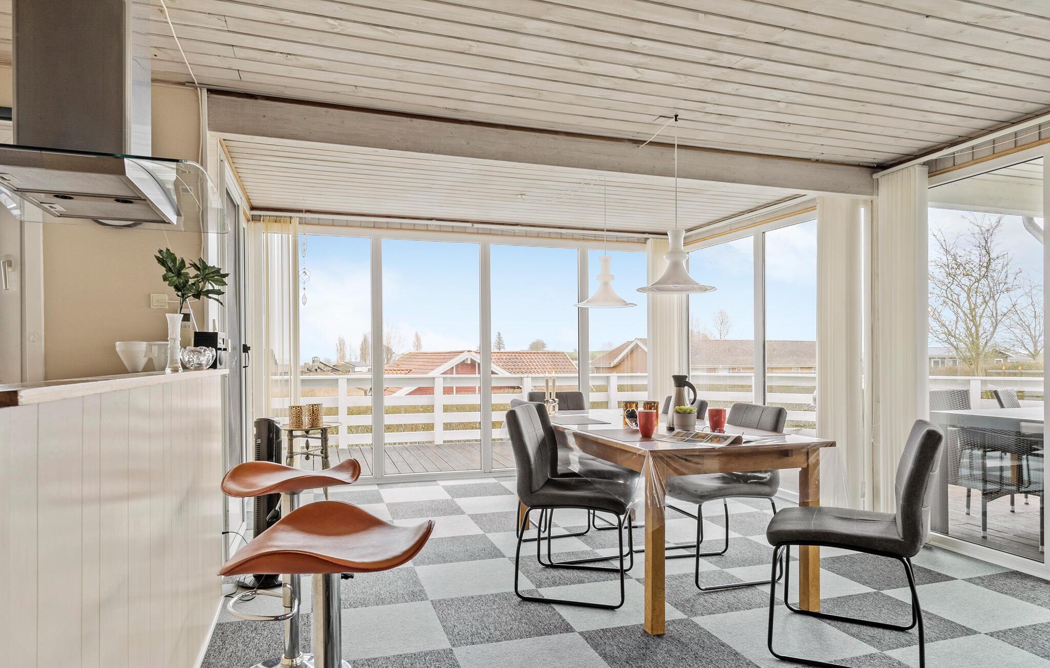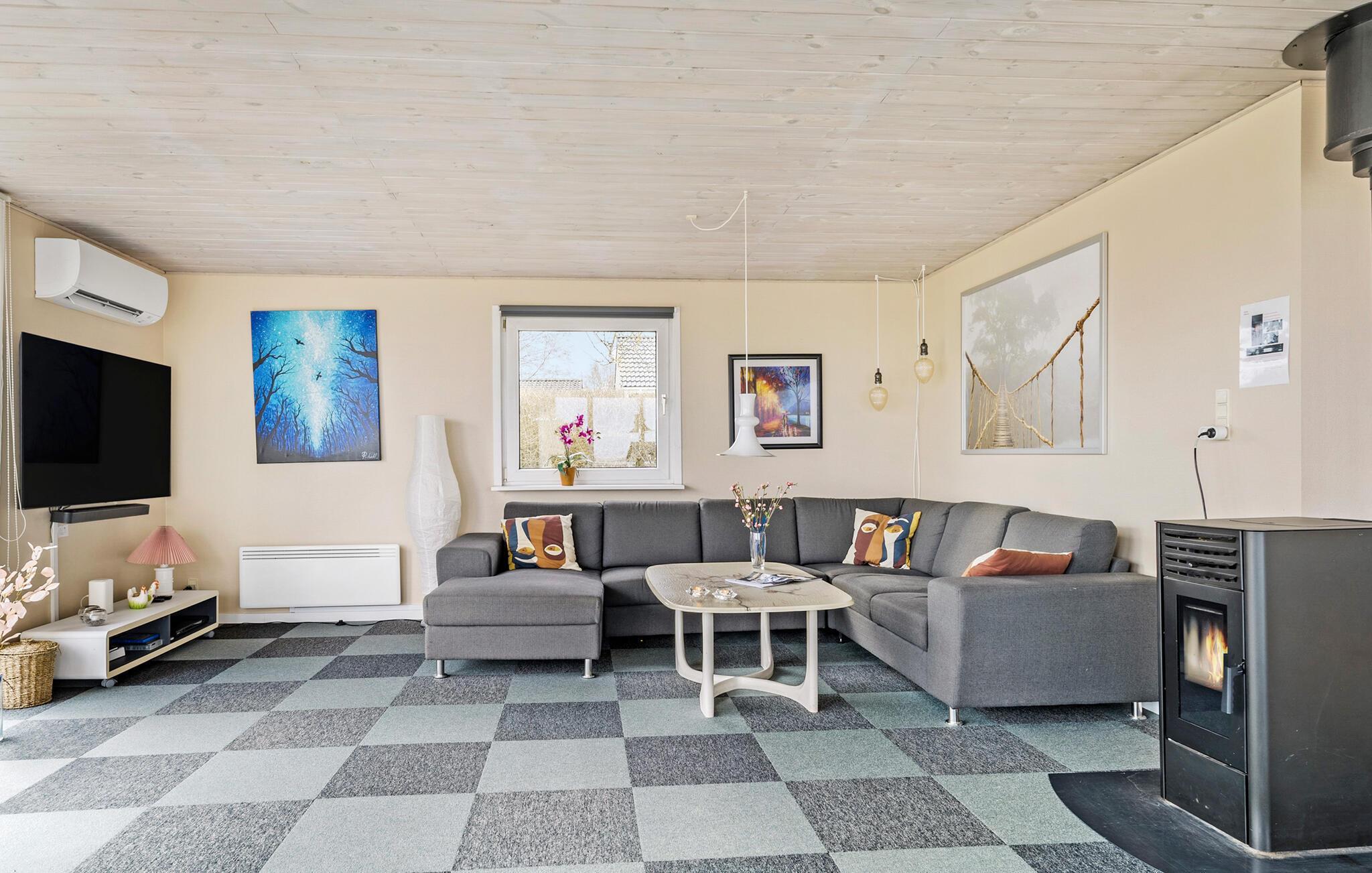 Durch die hohe Lage des Ferienhauses haben Sie eine schöne Aussicht nach Vikær Strand. Genießen Sie die Aussicht von diesem schönen Ferienhaus auf das Wasser vom Inneren und seiner teilweise überdachten Terrasse. Von der Wohnküche kommen Sie direkt auf das Terrassenareal und weiter in den Garten. Im Haus erwarten Sie auch schöne Schlafzimmer und ein großes Badezimmer. Auch im Garten werden Sie sich gut entfalten können. Genießen Sie auch denen einen oder anderen Grillabend. Die Heizung des Hauses ist elektrisch, jedoch die primäre Wärmequelle ist ein Holzpelletsofen im Wohnbereich (Pellets können im Haus gekauft werden). Die Garage ist verschlossen und steht Ihnen nicht zur Verfügung. Nicht weit vom Ort liegt der große See Slivsø, ein beliebter Sammelplatz für allerlei Vogelarten von Eisvogel bis Seeadler.