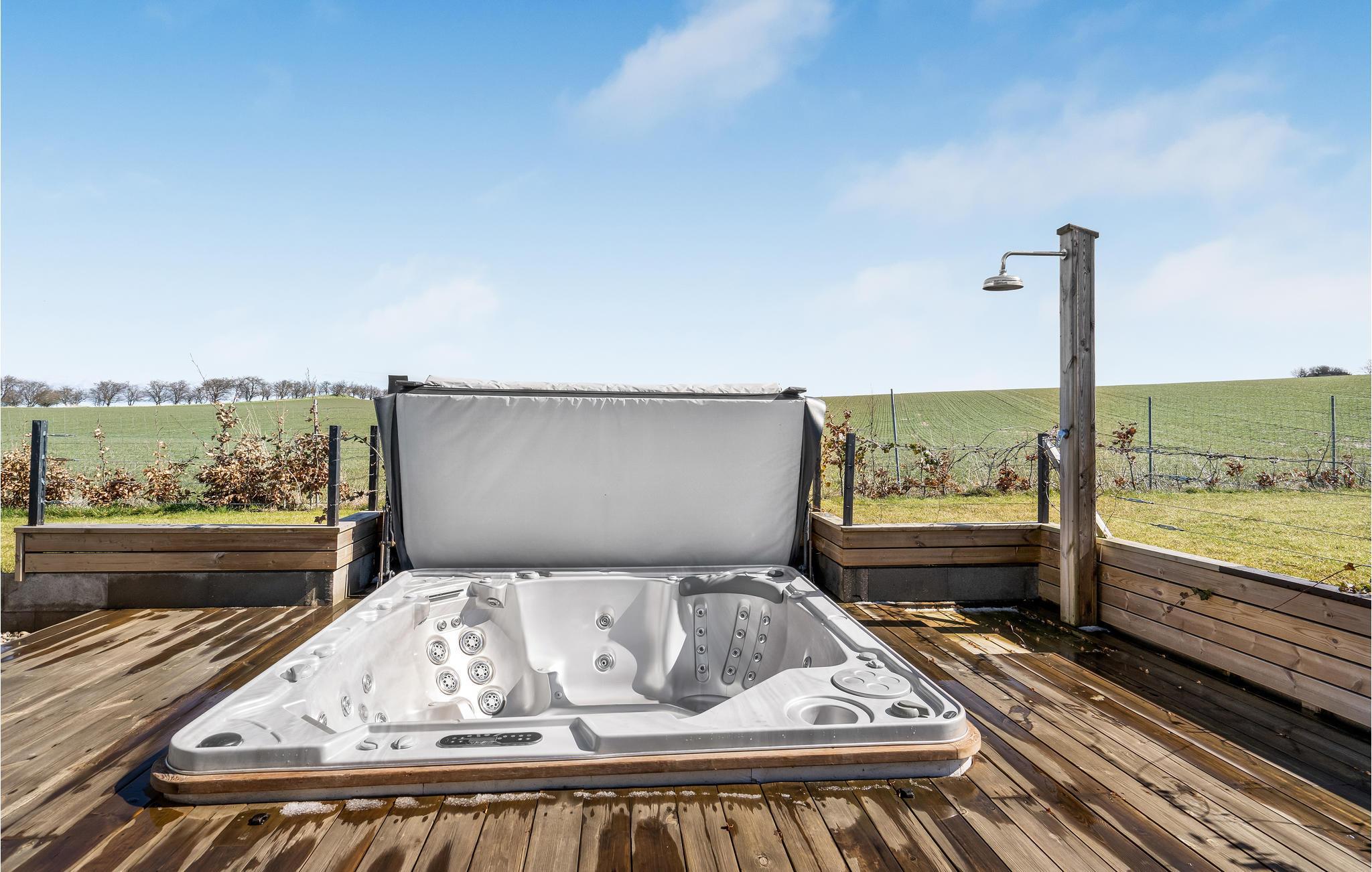 Ein einzigartiger Außenbereich mit einer großen Holzterrasse von 140 Quadratmetern sowie einem Outdoor-Spa für 8 Personen erwartet Sie - Darüber hinaus können Sie auch das Spa im Haus nutzen. Orte zum Wohlfühlen und Entspannen gibt es hier also reichlich! Von der Unterkunft haben Sie fantastische Ausblicke auf Felder und Natur, wo Sie öfters Rehe entdecken können.