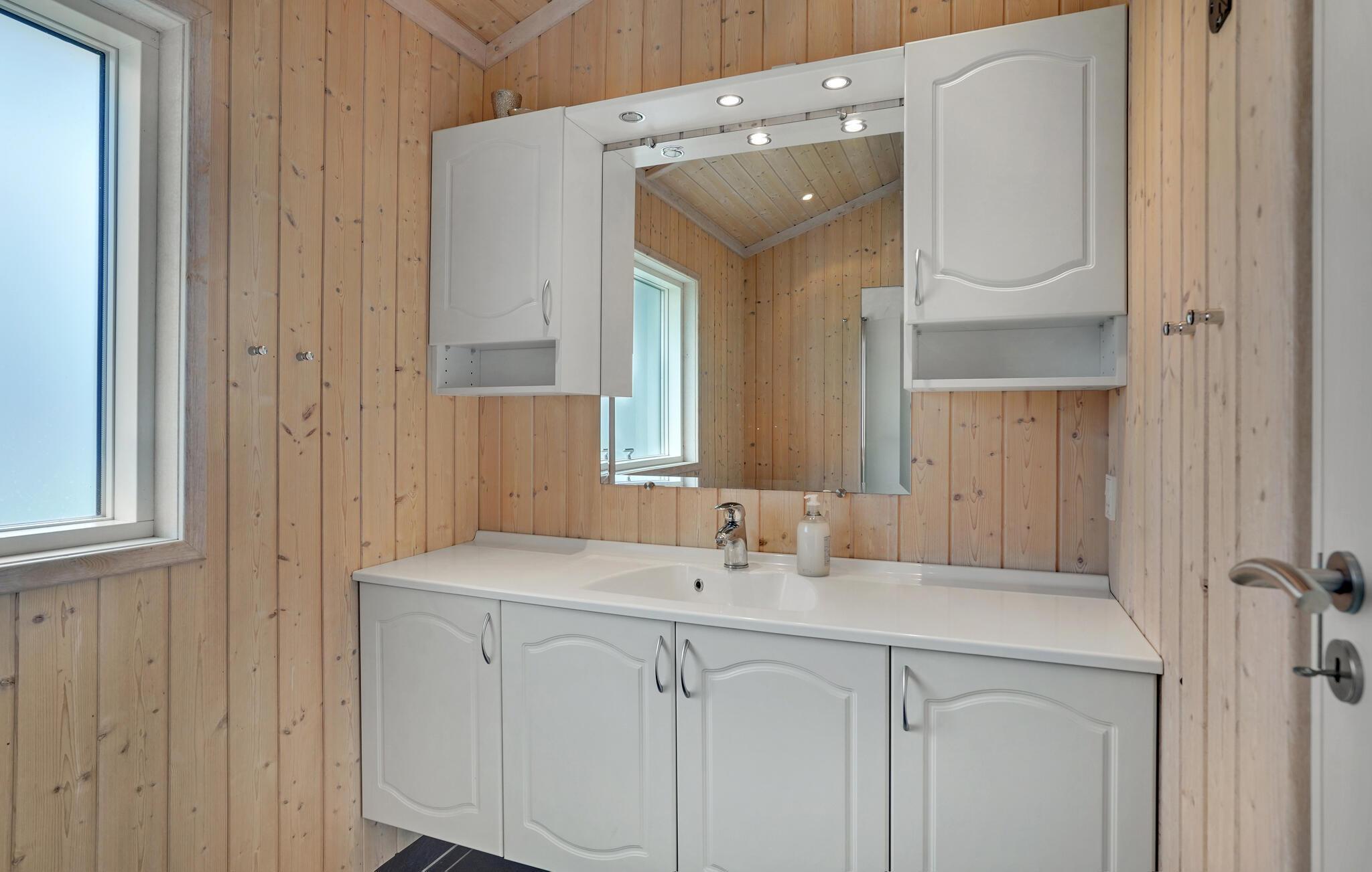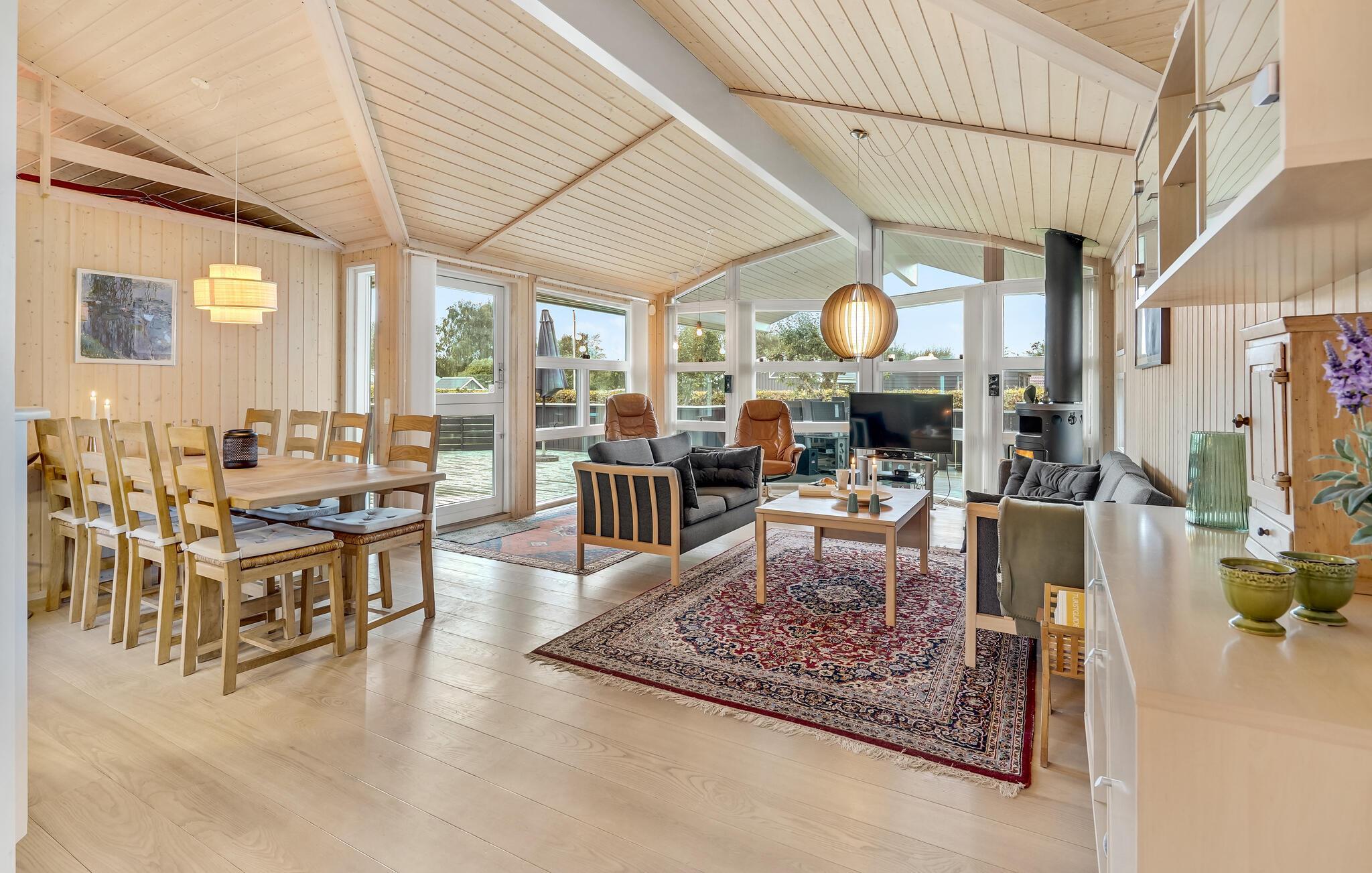 Am Drøsselbjerg Strand lädt Sie dieses schöne Ferienhaus zum Erholungsurlaub ein. Hier können Sie sich ganz auf Ihre Großfamilie konzentrieren und gemütliche Familienzeit im geräumigen Wohnraum verbringen. Sie große Fensterfront erhellt den Raum dabei in natürliches Licht, während der Kamin eine wohltuende Wärme verteilt. Von hier kommen Sie auf die größere, von zwei, Terrassen. Der ideale Platz, um sich in die Sonne zu legen oder Ihre Urlaubsmahlzeiten einzunehmen.