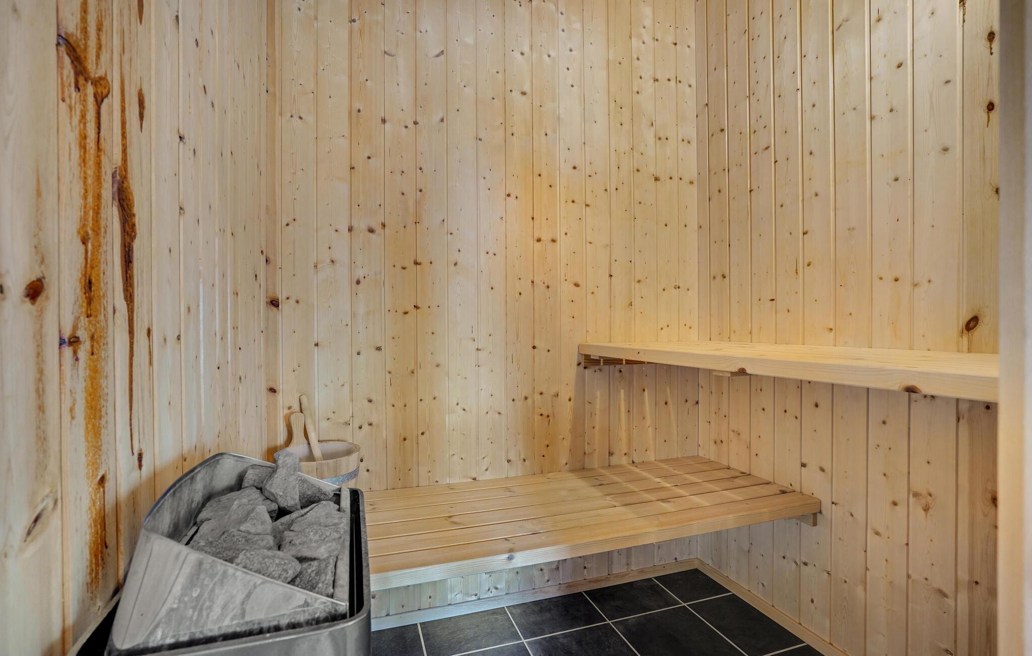 Willkommen in diesem geräumigen Ferienhaus mit Sauna in Strandnähe.