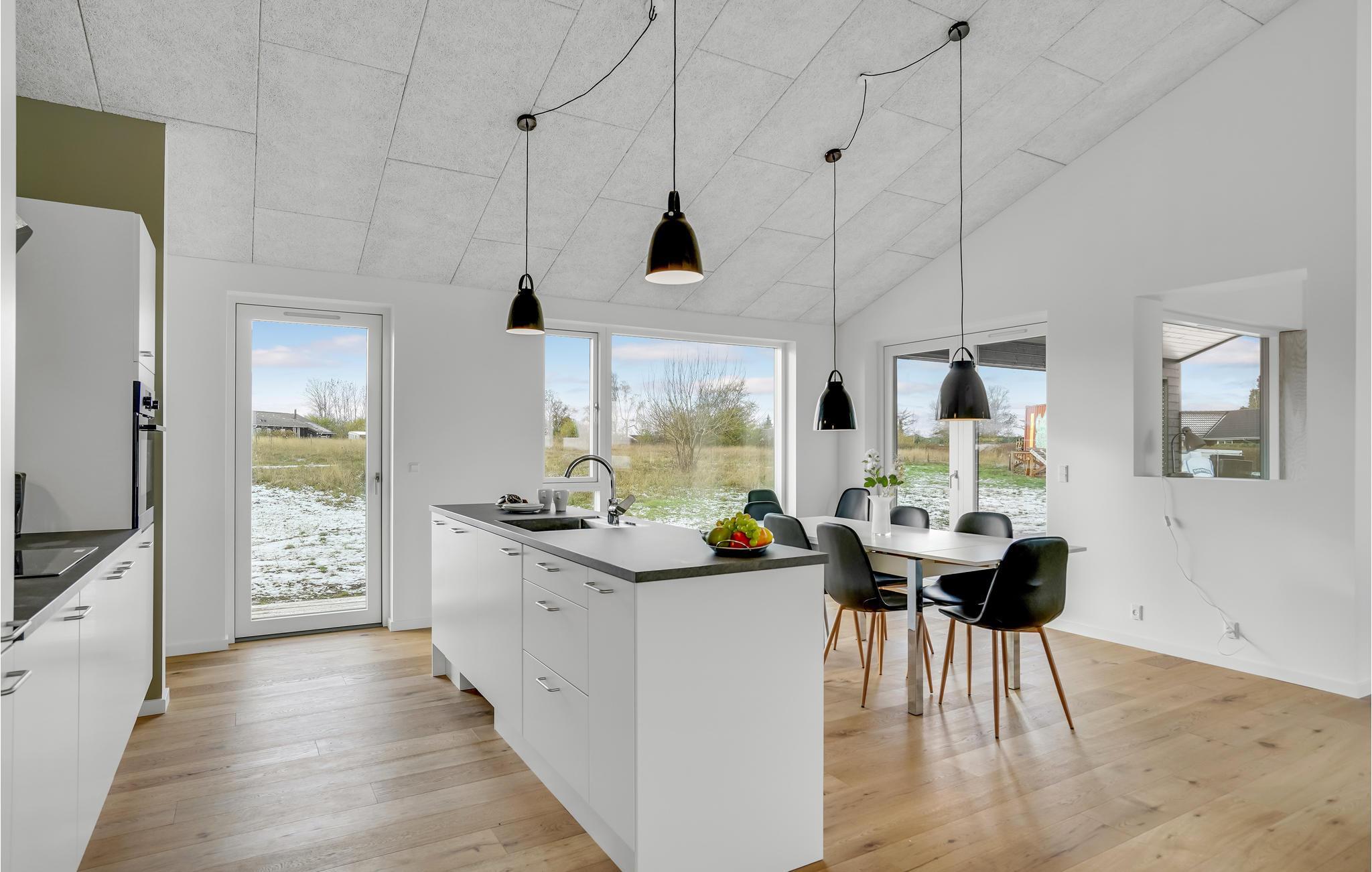 Entfliehen Sie Ihrem hektischen Alltag und genießen das schlichte und lichtdurchflutete Ambiente. Entspannen Sie sich auf den Sitzsäcken im Wohnzimmer und nehmen sich die Zeit ein Buch auf dem Sofa zu lesen und mit Ihrem Blick über die Nachbarschaft zu schweifen. Kommen Sie in der modernen Küche mit Insel zusammen, kochen zusammen leckere Gericht und lassen die Abende mit Brettspielen am Esstisch ausklingen.