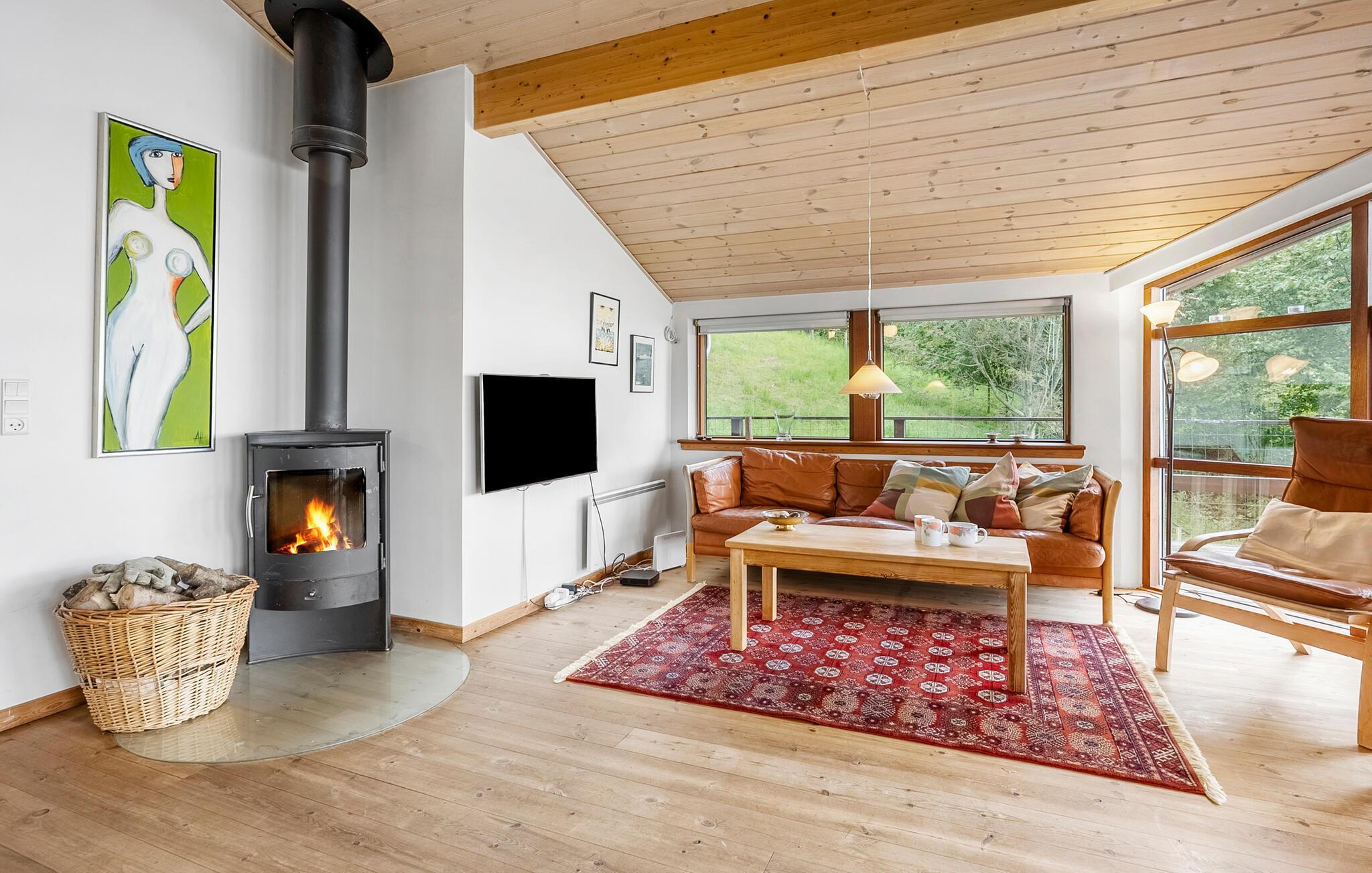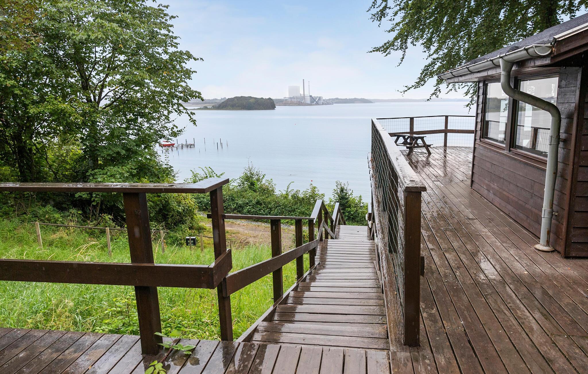 Hoch platziertes Ferienhaus mit einer schönen Aussicht auf den Fjord bei Kolding und den Kleinen Belt. Sie wohnen nur 20 m vom Strand. Vom schönen Naturgrundstück des Hauses haben Sie an mehreren Stellen eine schöne Aussicht, über das Hanggrundstück verlaufen Treppen. Im Inneren des Hauses finden Sei eine praktische Wohnküche, auch mit fesselnder Aussicht. Die Schlafgelegenheiten verteilen sich auf ein gutes Schlafzimmer mit Doppelbett, einen über eine Treppe erreichbaren Hems mit Doppelbett und den Annex mit Schlafcouch. Ein richtig schönes Ferienhaus in einem friedlichen Gebiet mit guten Angelstellen und in der Nähe von den Sehenswürdigkeiten Koldings.
