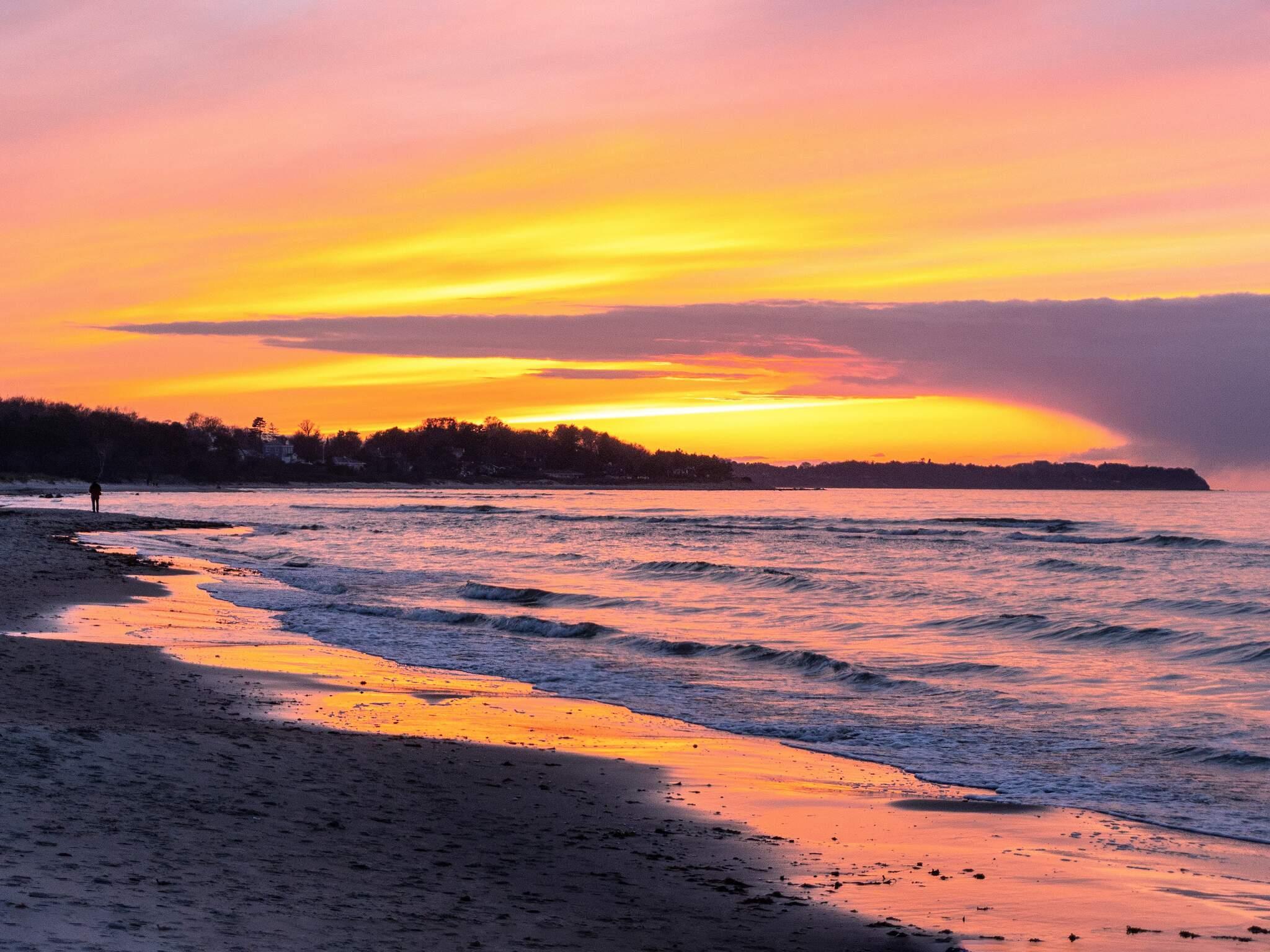 Innen gemütliches Wohn-/Esszimmer mit WLAN und Fernseher ohne Senderempfang, dafür mit Chromecast zum Streamen eigener TV-Anbieter. Für kühlere Tage stehen ein Holzofen sowie eine energieeffiziente Luft-Luft-Wärmepumpe zur Verfügung. Separate Küche mit Cerankochfeld, Dunstabzugshaube, Kühl-/Gefrierschrank, Kaffeemaschine und Geschirrspüler. Außerdem zwei Schlafzimmer im Haus, beide mit jeweils einem Doppelbett. Badezimmer mit Dusche/WC und angenehmer Fußbodenheizung. Waschmaschine im praktischen Hauswirtschaftsraum mit Zugang von außen.